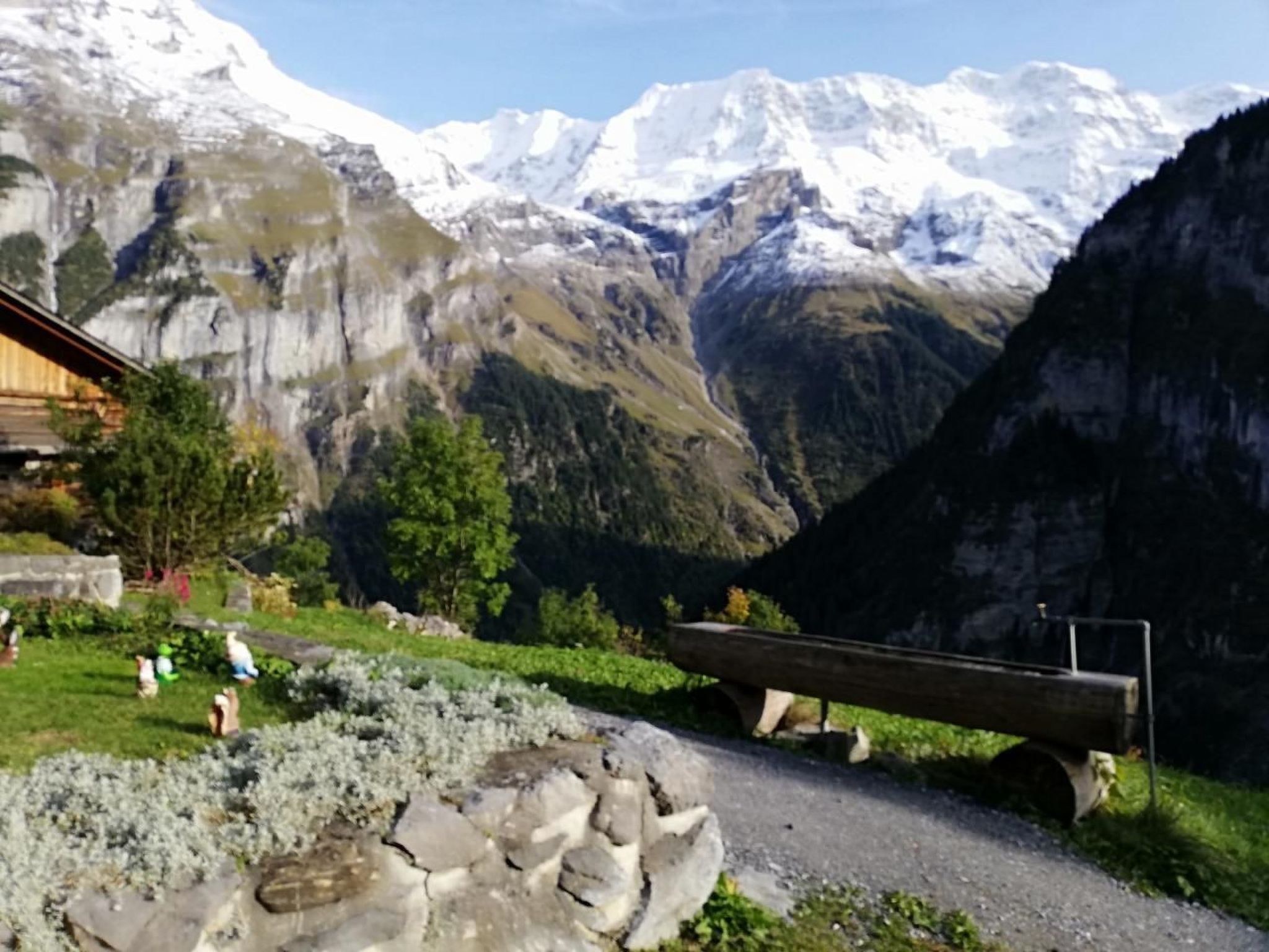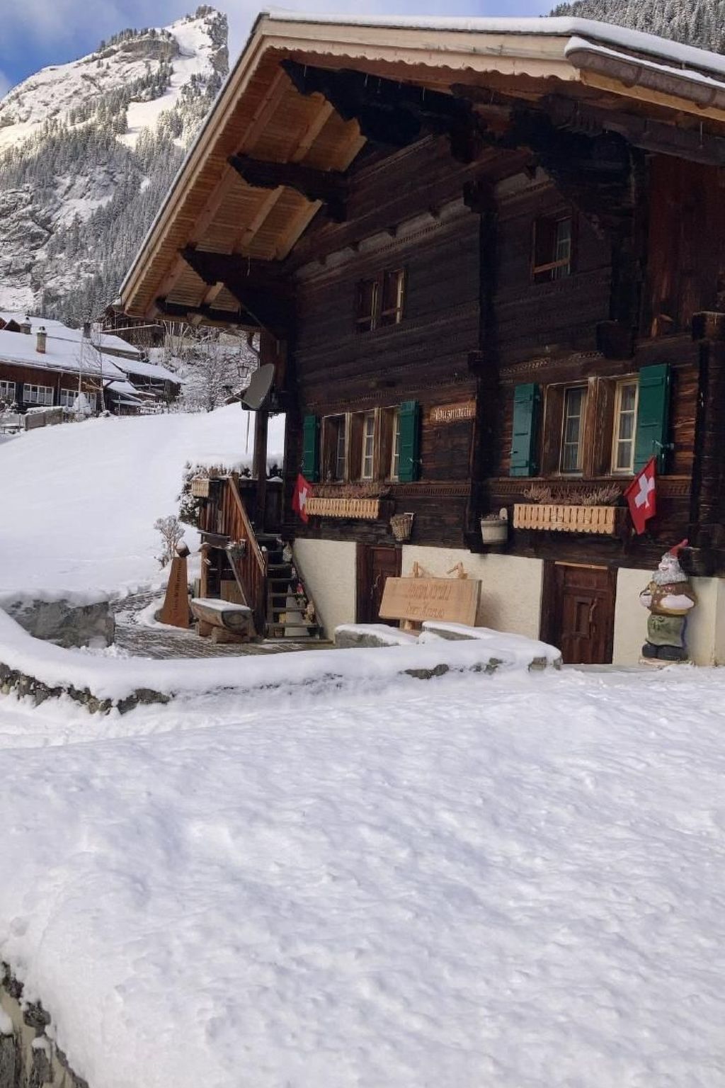 Enjoy a holiday in the car-free mountain village, in a sunny and quiet location, in the middle of an imposing mountain massif in the oldest house in the village. "Wherever you go, remember God, you will not be disgraced or spotted. Da man zahlt 1658" is written in the house motto. Cosy, rustic rooms restored under homeland security. Whether for two or up to 6 people, the whole house is at your disposal. On the ground floor there is a kitchen, bathroom, living room and 1 bedroom and 2 further bedrooms are on the upper floor. A cot and high chair are available for the youngest guests. Special feature, the sitting stove from 1917 in the living room. During the renovation in April 2021, carpets were replaced with parquet flooring, the roof and thus the house were newly insulated and the wood-burning stove was replaced. The house is now heated by a pellet boiler.New beds and bedside tables have been in use in the upper bedrooms since the 2022 summer season. The lighting has been modernised throughout the hotel. Mirrors have been installed in the bedrooms at the request of female guests. The outdoor area with garden fireplace or the sheltered arbour invite you to linger. The newly positioned outdoor seating area in front of the house with a large table offers a wonderful view of the mountains: Mönch, Jungfrau, Breithorn, Tschingelhorn, Spitzhorn, Grosshorn, Gespaltenhorn and Büttlassen and Sefinenfurke, which provides the connection to the Kiental.From winter season '24, the handrail in the stairway will ensure greater safety in the house. The original Gimmelwald garden bar invites you to enjoy an aperitif or a nightcap.Gimmelwald is not accessible by car. Park it in Stechelberg and float into your holiday with the Schilthorn cable car.... From December 24, the direct connection to Mürren will be in operation, relieving the section to Gimmelwald. We can still be reached every half hour and with better quality thanks to shorter queues, less crowding and more space. As a result, Gimmelwald more than lives up to its reputation as a quiet mountain village: PEACE AND NATURE COMBINED! Arrive - feel "at home", be - enjoy. Or from Gimmelwald there are many outdoor activities such as hiking, mountain tours, biking and skiing.Other sports and leisure activities: Playground at the Schilthorn cable car station 0.4 kmMini golf, outdoor pool in LauterbrunnenExcursion possibilities: Schilthorn, Allmenhubel, Winteregg, Jungfraujoch, Wengen, Grindelwald, First, Pfingstegg, Männlichen, Schynige Platte, Harder, Niederhorn, Brienzer Rothorn, Lakes Thun and BrienzOther living room equipment (living room1): Radio, TV, W-Lan accessOther bedroom furnishings (bedroom1): Double bed with 2 mattressesSports facilities in the area: Mountaineering, Ice skating, Hunting, Climbing, Mountain biking, Paragliding, Cycling tours, Rafting, Riding arena/equestrian facilities, Tobogganing, Alpine skiing, Cross-country skiing, Sports centre, Squash, TennisVillage description: Mountain village at 1400m with approx. 80 inhabitants -8 farms - 5 craft businesses -12 clubs/organisations. Accessible by cable car from Stechelberg.
