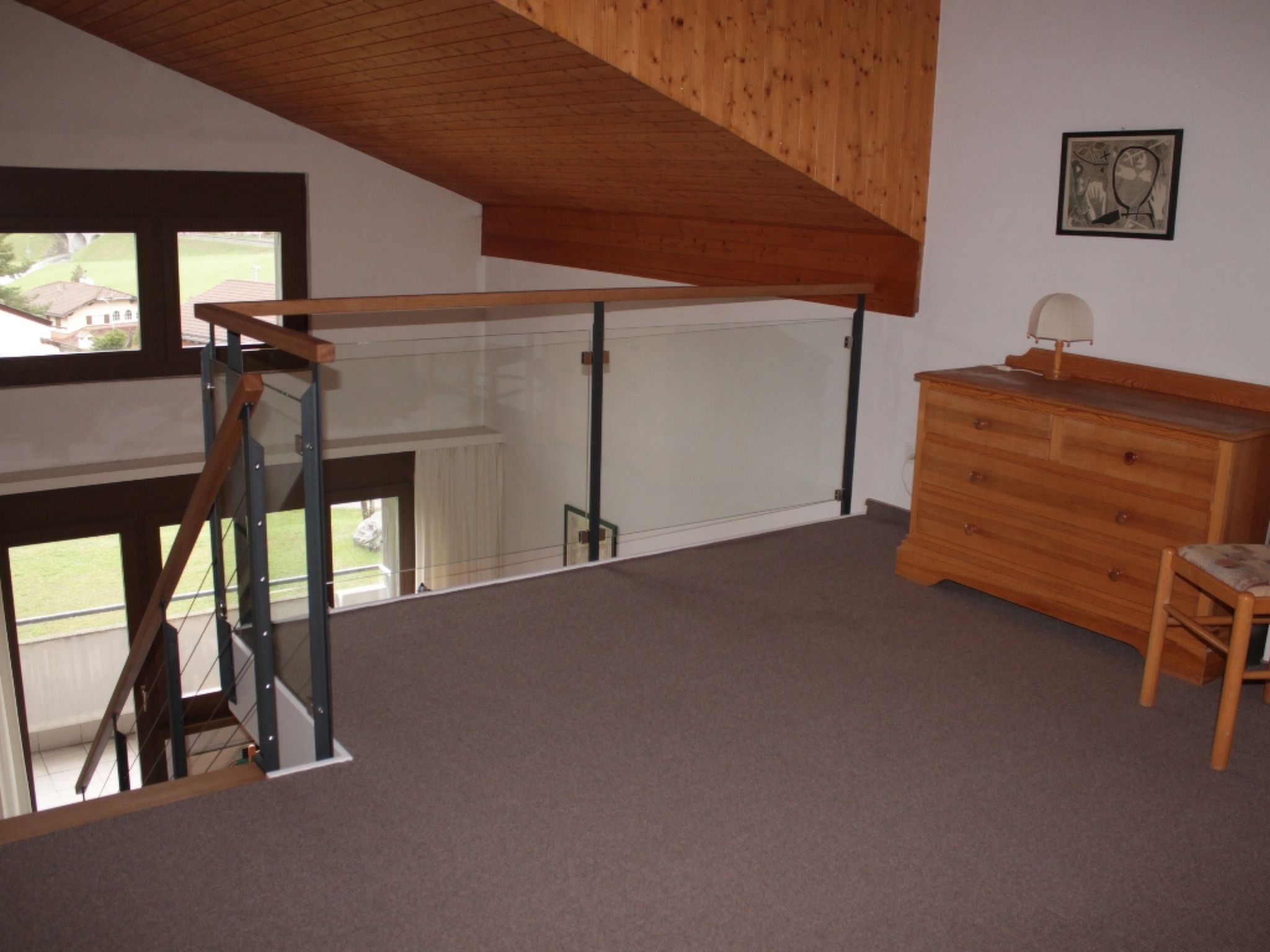87 m2. Ulteriori informazioni da parte del fornitore: 4-room apartment on 2 floors, partly renovated in 2019. WI-FI available. Basement (wheelchair accessible): Living room with dining area and stairs to the upper floor, flat screen TV (Swisscom TV) and radio, separate, open kitchen with dishwasher, double bedroom, bathroom (bath / WC / bidet). From the living room and bedroom access to large south-west facing balcony with wide panoramic views. First floor: Open gallery with 2 folding beds, bath (tub, toilet), children's room with 2 single beds and access to a small balcony. Kitchen-, bed- and bathlinen available and included. Flooring: vinyl, textile and tiles