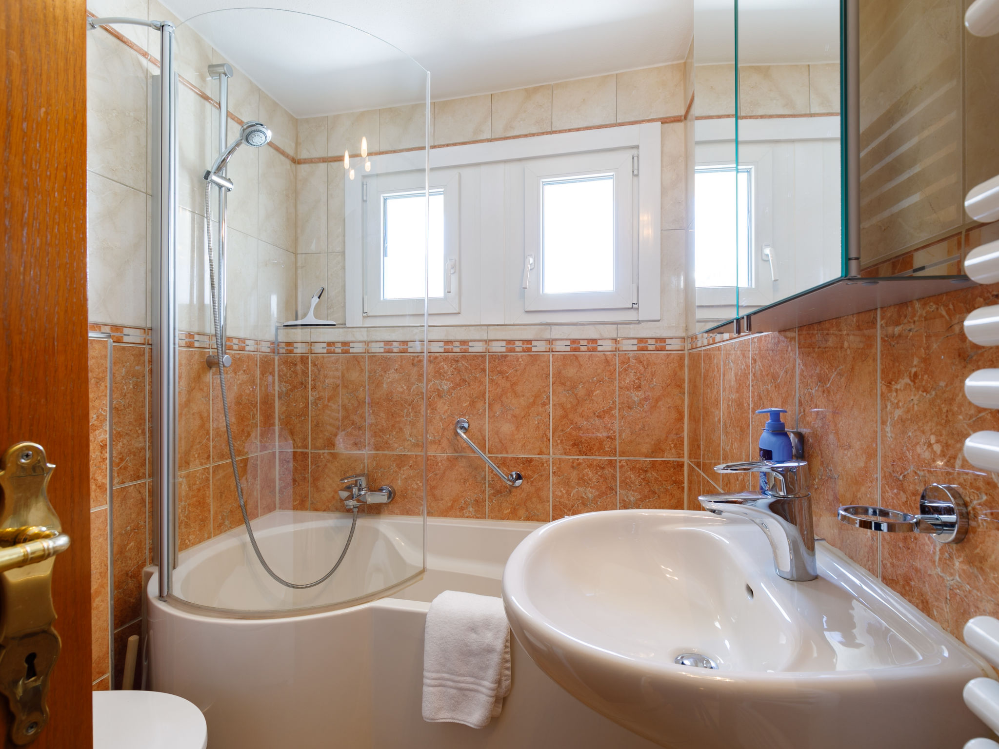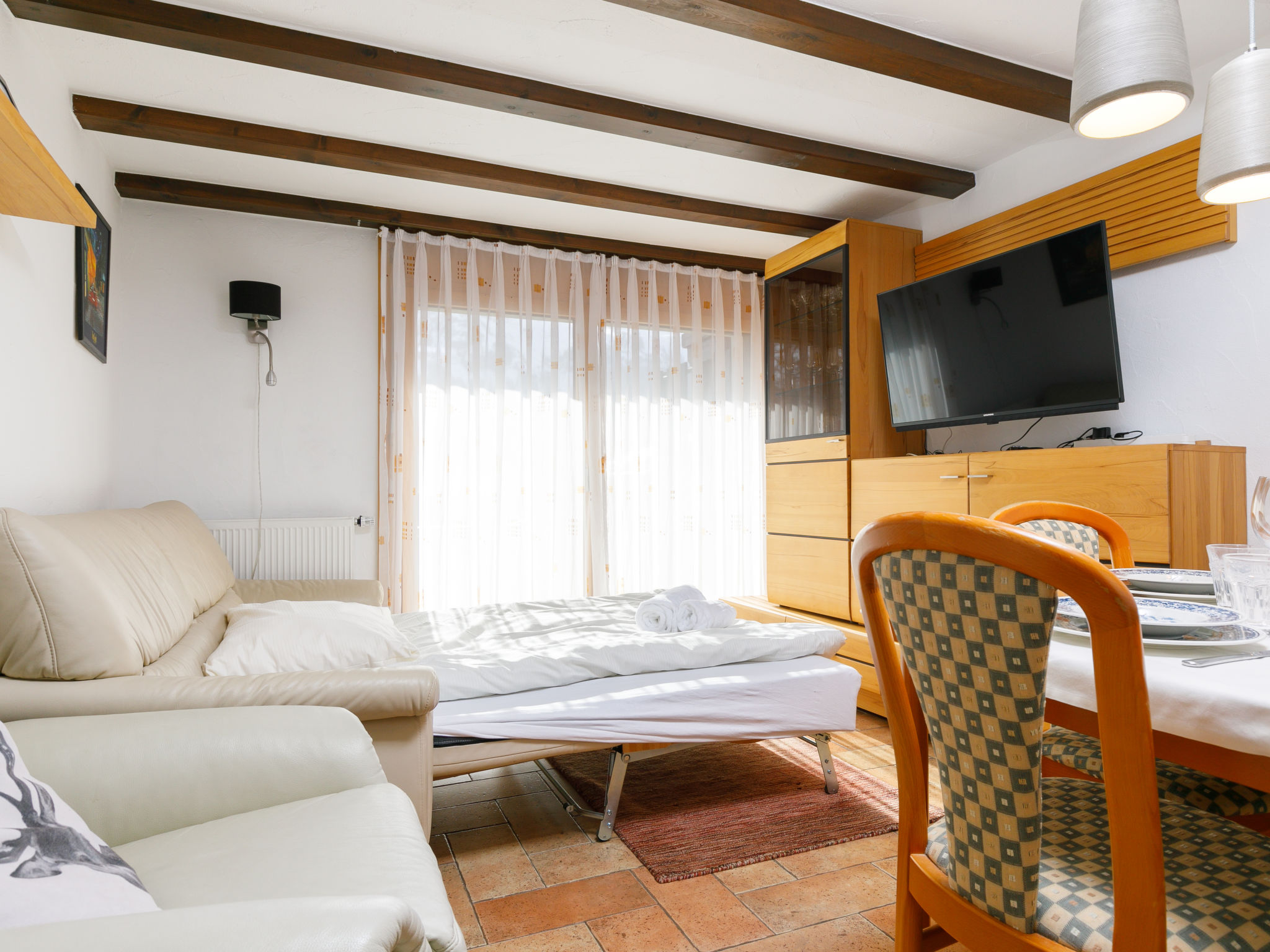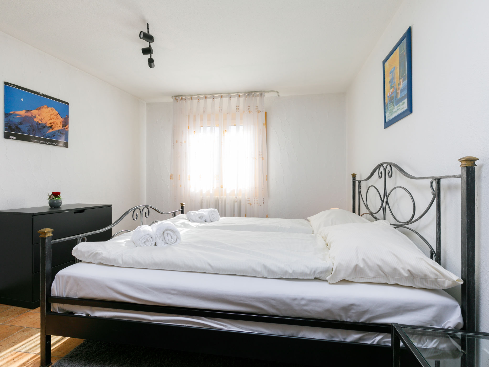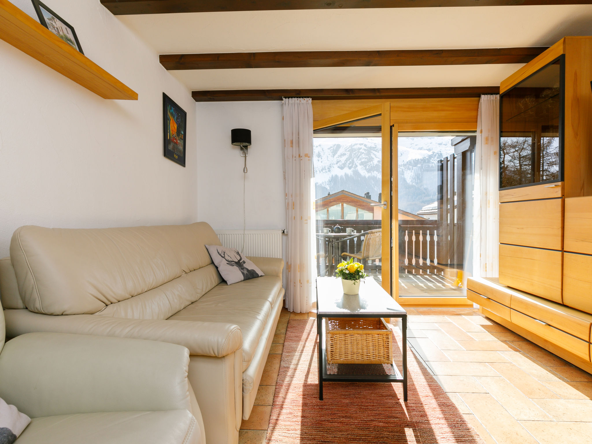 "Apt.31", apt. di 2 locali 48 m2. Arredamento confortevole e accogliente: soggiorno/sala da pranzo con 1 divano letto e TV (via cavo) (schermo piatto). Uscita sul balcone. 1 camera con 1 letto doppio. Piccola cucina (4 punti cottura, forno, lavastoviglie). Vasca/WC. Riscaldamento elettrico. Balcone. Mobili da balcone. Vista sulle montagne e sulla località. A disposizione: lavatrice. Garage nr. 31, altezza 200 cm, larghezza 288 cm. Prego notare: appartamento per non fumatori. Balcone che da sulla strada principale.