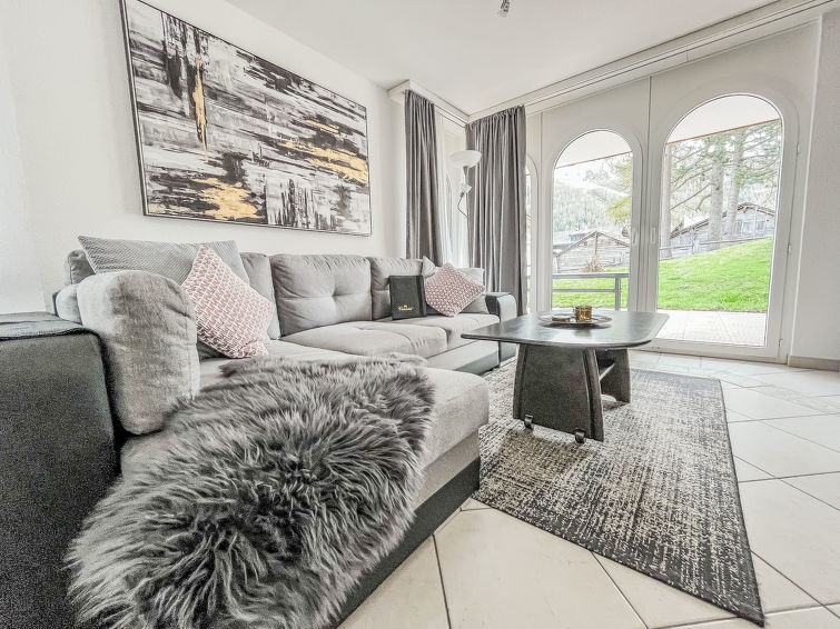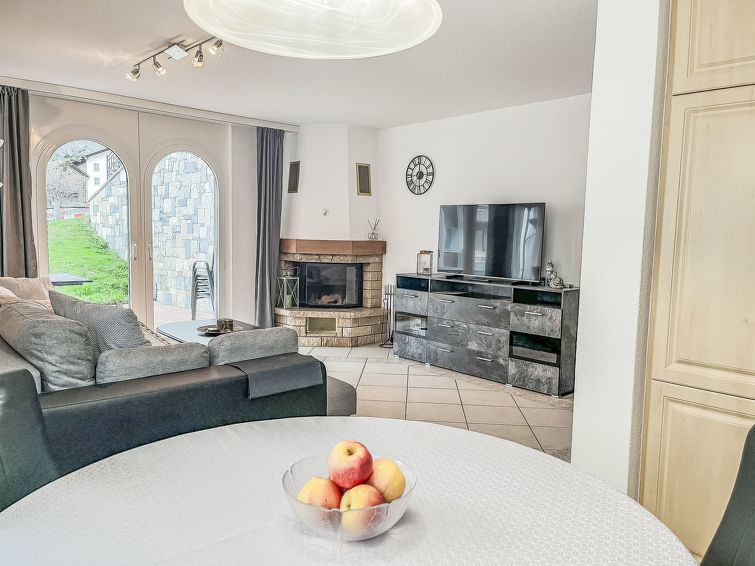 "Apartment Gämsi", apt. di 2 locali 55 m2, al piano seminterrato. Luminoso, arredamento gradevole e di buon gusto: soggiorno/sala da pranzo con stufa svedese, tavolo da pranzo e TV (via cavo). Uscita sulla terrazza. 1 camera matrimoniale con 1 letto doppio (160 cm, lunghezza 200 cm). Cucina aperta (lavastoviglie, 4 piastre cottura in vetroceramica, tostapane, bollitore elettrico, macchina da caffè elettrica, set per fondue (formaggio)). Vasca/WC. Terrazza. Mobili da terrazza. Vista sulle montagne. A disposizione: asciugacapelli. Internet (wifi, gratis). Prego notare: appartamento per non fumatori.