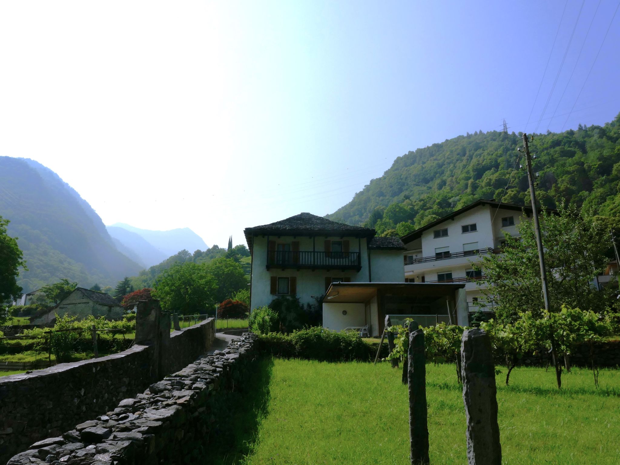 Grono 15 km da Bellinzona: Casa singola "Casa Calanca", 336 m s.l.m., semplice, confortevole su 2 piani, indipendente, circondata da prati. Nel quartiere Val Mesolcina, posizione soleggiata, elevata, a 1.2 km dal bosco, a 900 m dal fiume, immerso nel verde. Per uso privato: giardino (non recintato) con prato e alberi. Mobili da giardino. Nella casa: biciclette. Accesso fino alla casa. Negozio alimentare 570 m, supermercato 1 km, ristorante 320 m, 10 minuti a piedi dal centro, fermata bus "Grono Paese bus 214" 250 m, stazione ferroviaria "Bellinzona" 15 km. Sentieri per passeggiate vicino alla casa 10 m, piste da sci 32 km, pista per slitte 32 km, pista di fondo 32 km, pattinaggio 32 km. Attrazioni nelle vicinanze: Torre Florenzana, Museo Moesano, Castelli Bellinzona, Mercato (sabato), La Golena Pascolet, Castello Norantola, Massi Cuppellari, Mulattiera di Verdabbio, Parco Val Calanca. Rinomate località sciistiche: San Bernardino 32 km. Laghi famosi: Lago di Cama, Lago d'Isola, Lagh Calvavesc, Lago Stabi, Lagh Doss. Sentieri escursionistici: Val Calanca, Val Cama, Val Leggia, Cima dello Stagn, Cascata Grono.