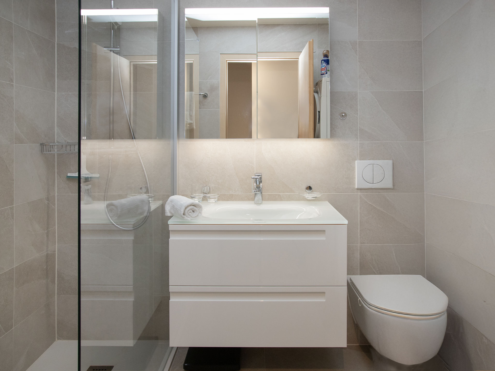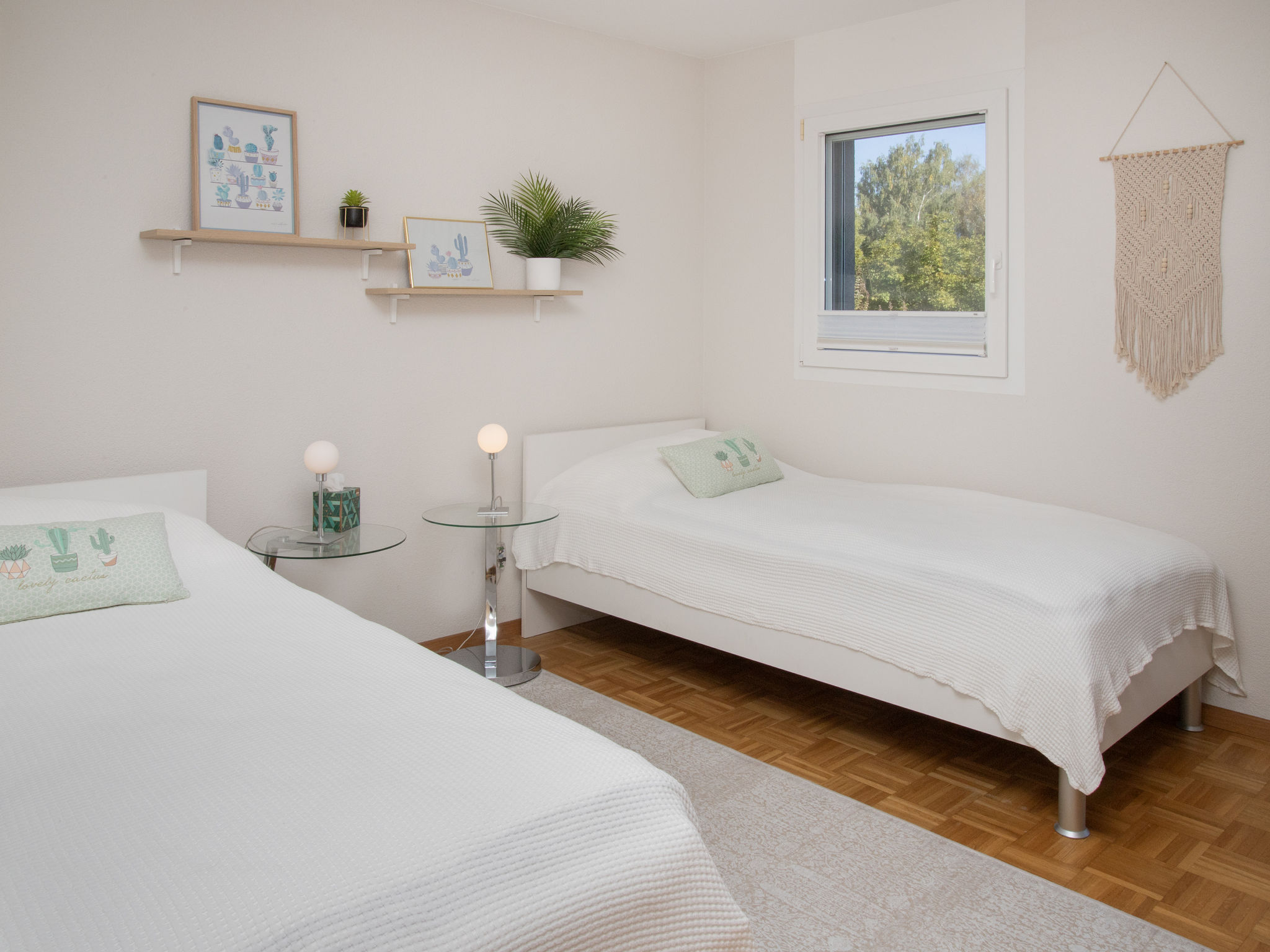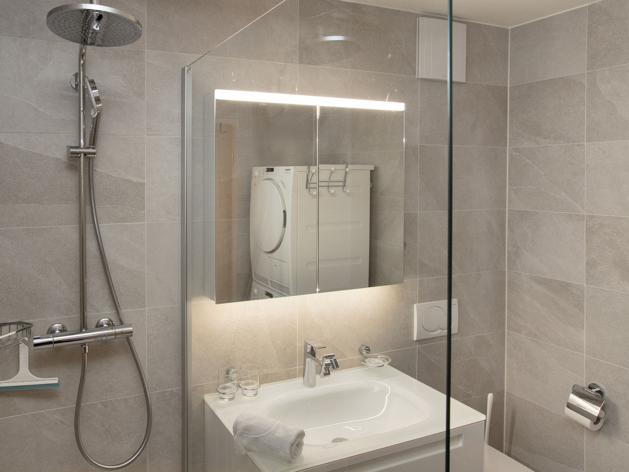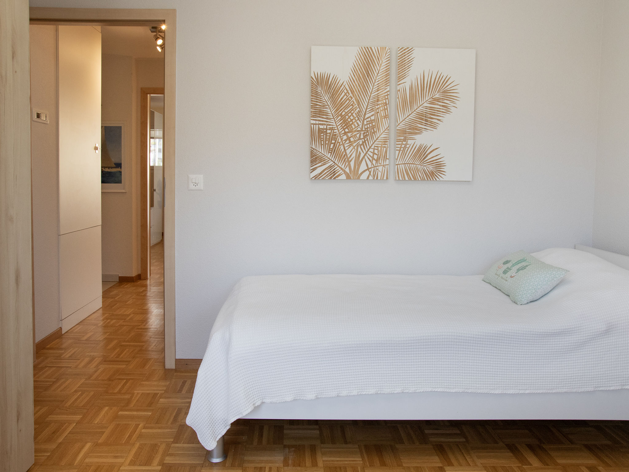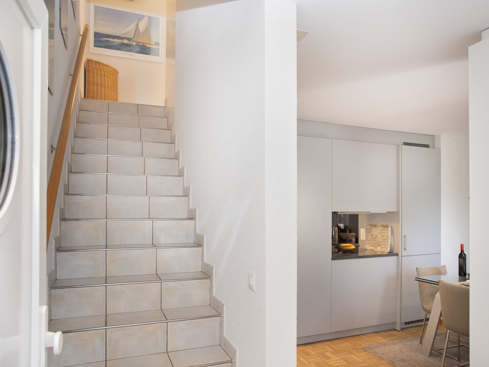 "Tasman S12/R", apt. di 3 locali 89 m2, al pianterreno. Arredamento confortevole e di buon gusto: soggiorno/sala da pranzo con TV (via cavo). Uscita sul balcone. Cucina aperta (forno, lavastoviglie, 4 piastre cottura in vetroceramica, tostapane, bollitore elettrico, forno a microonde, congelatore, macchina da caffè elettrica, capsule per la macchina da caffè (Nespresso), set per raclette, set per fondue (formaggio)). WC separato. Piano superiore: con 1 letto doppio (2 x 90 cm, lunghezza 200 cm). 1 camera con 2 letti (90 cm, lunghezza 200 cm). Doccia/WC. Balcone. Mobili da balcone. Bella vista sulle montagne, sul paesaggio e sul canale. A disposizione: lavatrice, asciugatrice. Internet (wifi, gratis). Parcheggio nr. 136. Prego notare: appartamento per non fumatori.