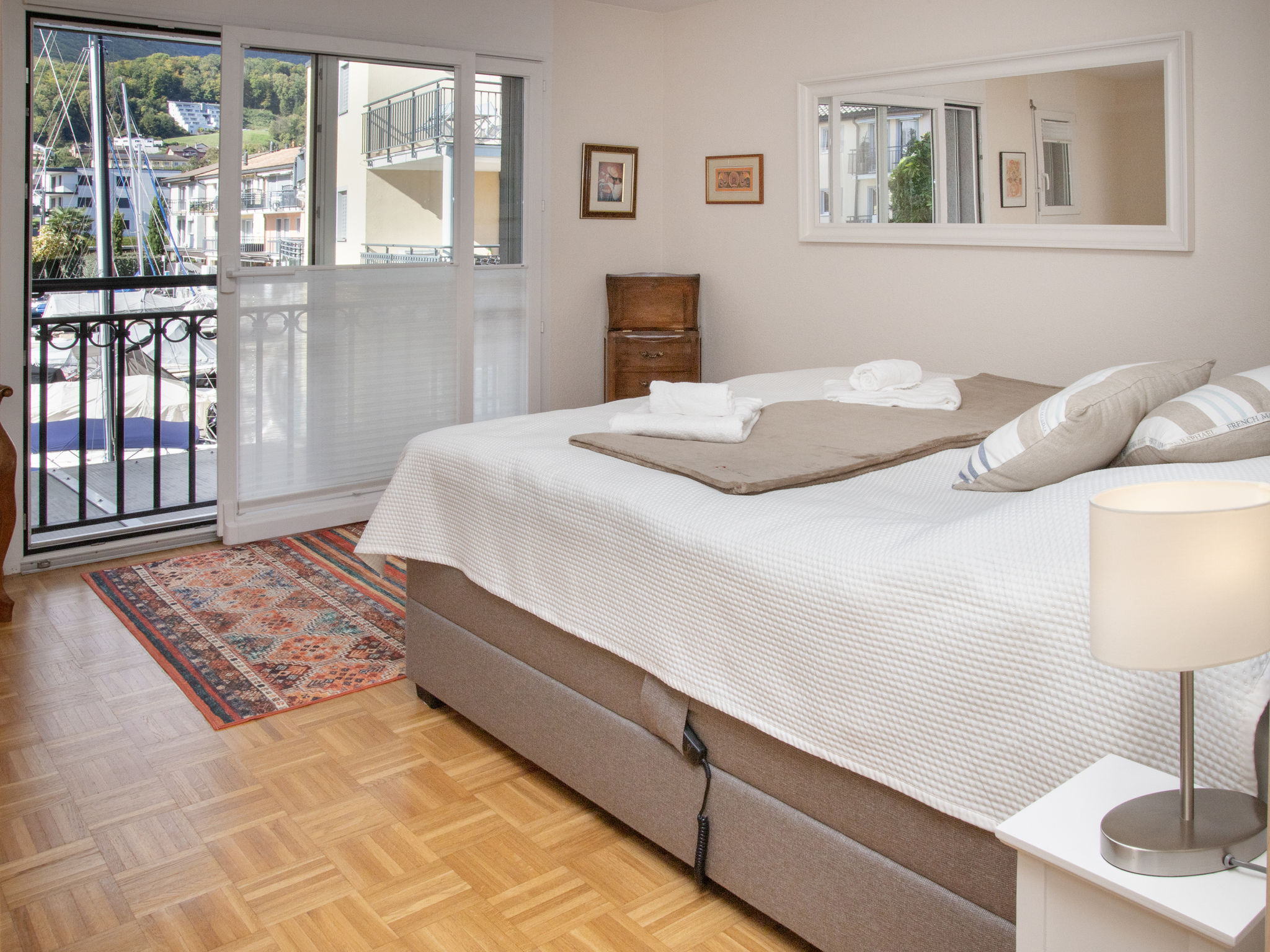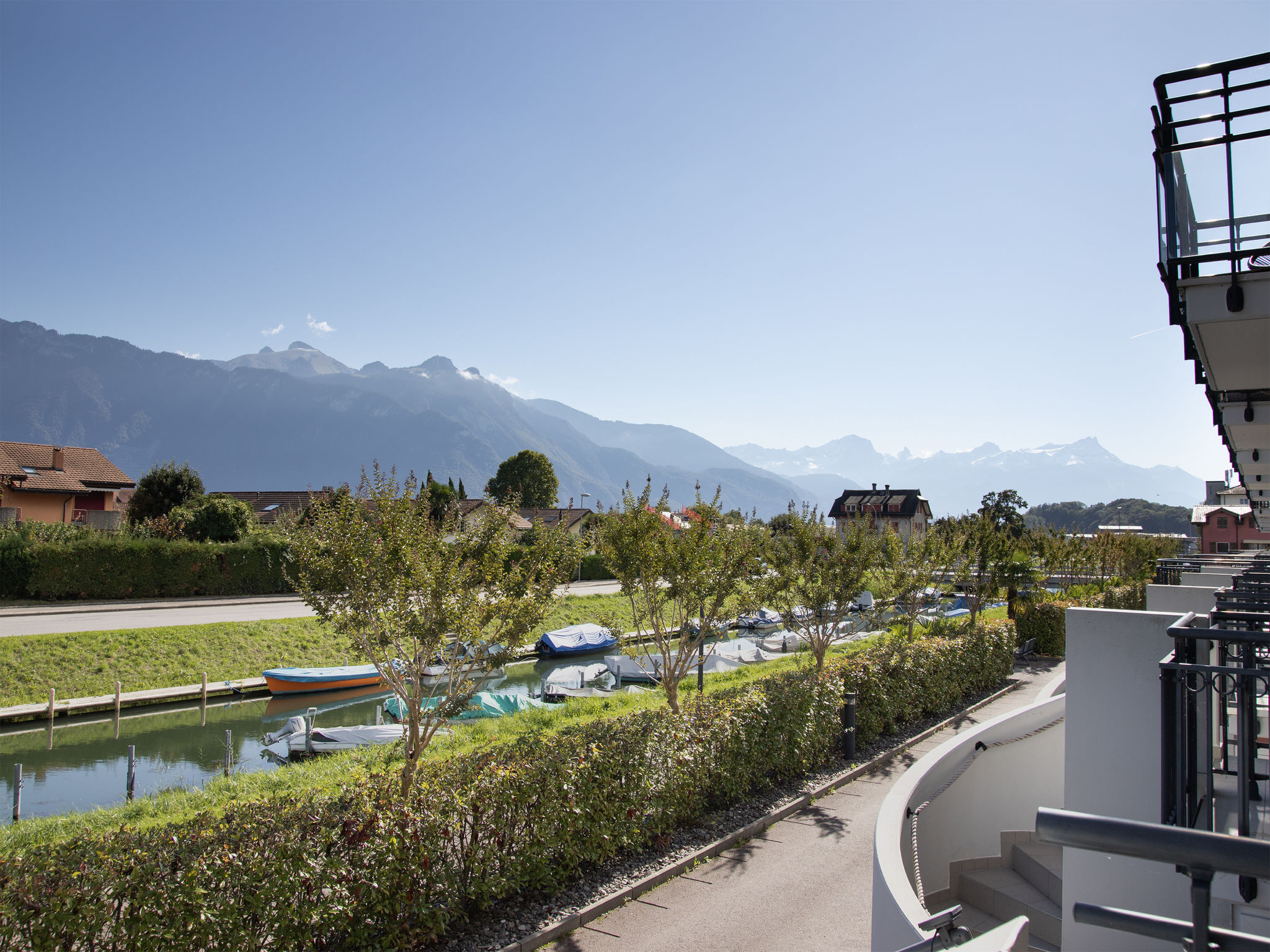 Complesso turistico "Residenz Marina", grande. In periferia, a 300 m dal centro di Le Bouveret, posizione tranquilla, soleggiata, a 200 m dal lago, a 50 m dal canale. Nella casa: riscaldamento centralizzato. Negozio, negozio alimentare 800 m, ristorante, panetteria 500 m, noleggio biciclette 190 m, fermata bus "Bouveret village" 1.2 km, stazione ferroviaria "Le Bouveret" 300 m, spiaggia ciottolosa 200 m, piscina 300 m, piscina coperta 7.2 km, piscina termale 30 km, stabilimento balneare 300 m, lago balneabile "Léman" 300 m. Porto turistico 200 m, campo da golf (18 buche) 15 km, scuola di surf 200 m, tennis, mini golf 12 km, sentieri per passeggiate vicino alla casa 300 m, funivia 15 km, piste da sci 18 km, scuola di sci 18 km, scuola di sci per bambini 35 km, pista per slitte 29 km, pista di fondo 35 km, pattinaggio 18 km. Attrazioni nelle vicinanze: Parc Aventure 17 km, Château Chillon / Fort de Chillon, Swiss Vapeur Parc 100 m, Aqua Parc 500 m. Rinomate località sciistiche: Les Portes du Soleil 18 km, Villars 35 km, Leysin 31 km. Laghi famosi: Lac Léman. Sentieri escursionistici: Portes du Soleil. La consegna chiavi è presso l‘agenzia Interhome a Bouveret. I vicini non gradiscono la confusione. Si raccomanda una buona condotta.
