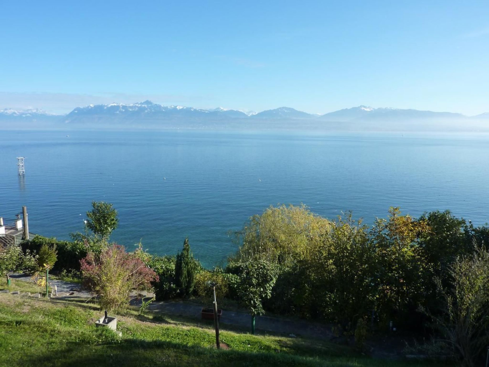 Cosy 3-room flat in a renovated chalet on the shores of Lake Geneva. Ideal for a couple or family. Large garden with direct access to the lake. Private pontoon, kayak, SUP and Vélos available. Internet, TV and telephone. Bed linen and towels provided. Private car park for one or two cars. Quiet locationThe owner lives on site in a second building.The medieval village of St-Prex is picturesque, the village has many infrastructures (shops, restaurants, doctor, dentist, train, bus, boats, ....), ideally located on Lake Geneva (20 min from Lausanne, 40 min from Geneva).The accommodation is spread over two floors: