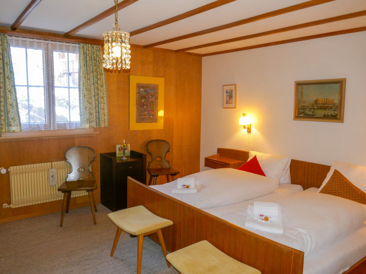 Apt. di 3 locali 60 m2 al 1. piano, esposizione sud. Arredamento accogliente: soggiorno/sala da pranzo con TV (via cavo) (schermo piatto), radio. Uscita sul balcone, esposizione sud e esposizione ovest. 1 camera con 2 letti (90 cm, lunghezza 200 cm). 1 camera con 1 letto (90 cm, lunghezza 200 cm), 1 x 1 letti a castello (90 cm, lunghezza 200 cm). Cucina (forno, lavastoviglie, 4 piastre cottura in vetroceramica, forno a microonde, macchina da caffè elettrica, capsule per la macchina da caffè (Nespresso) extra, set per raclette, set per fondue (formaggio)). Doccia/WC. Grande balcone 10 m2. Magnifica vista sulle montagne, sulla valle e Eiger. A disposizione: asciugacapelli. Internet (wifi, gratis). Parcheggio nr. 5, ganz rechts. Prego notare: appartamento per non fumatori.