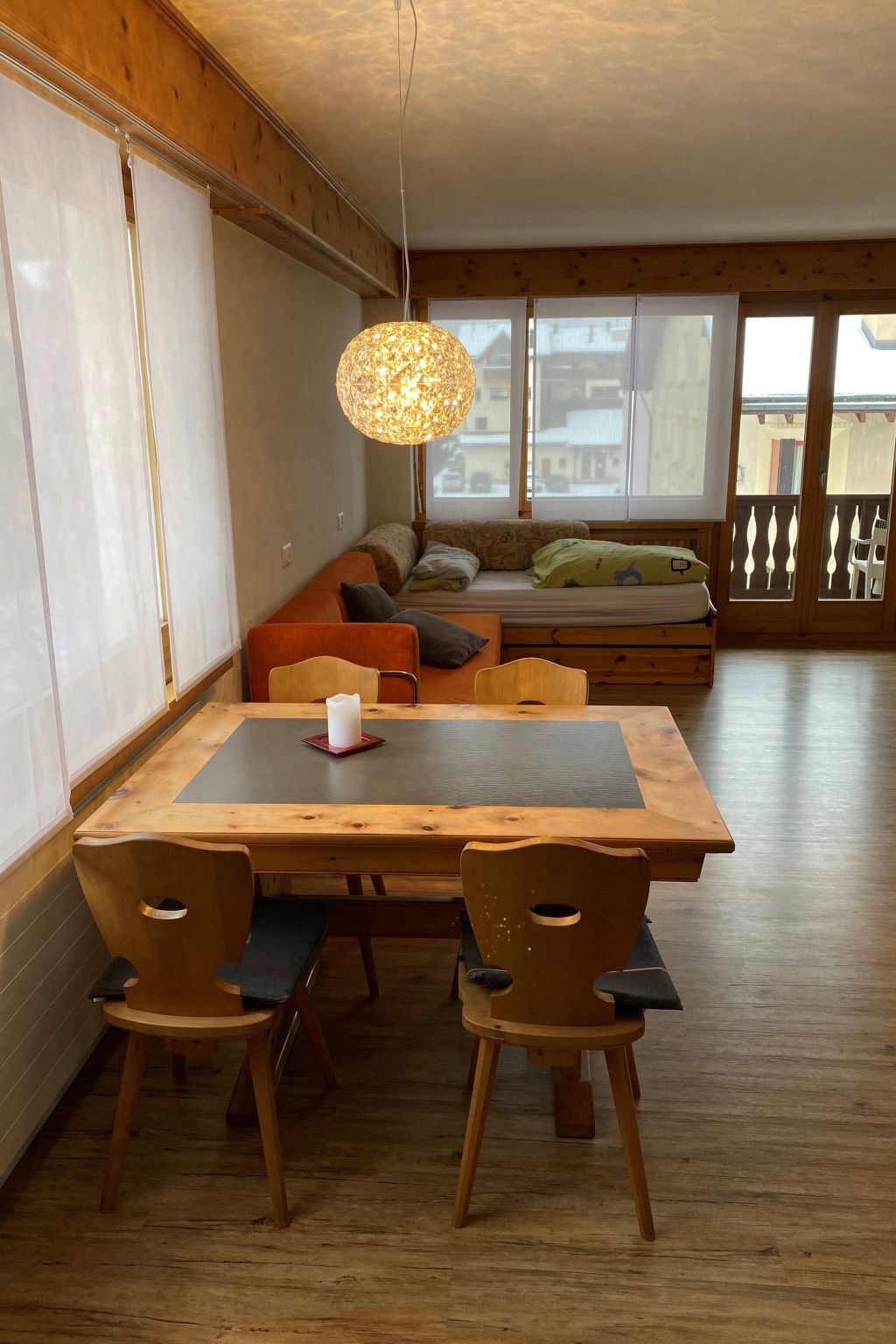 Discover our charming hideaway for your next break: a cosy 2-room flat in the heart of Pontresina, located on the 3rd floor of a quiet residential building with convenient lift access. The 50 square metre flat is furnished with great attention to detail and is the ideal retreat for hikers, skiers, cross-country skiers and those seeking relaxation. Whether you want to explore the surrounding nature or simply take a deep breath - here you will find the perfect starting point for an unforgettable experience in the high Alps.The interior of our flat leaves nothing to be desired. The kitchen is equipped with a cooker, fridge including a small freezer compartment, oven, kettle and a coffee machine with capsules, ideal for cosy breakfast moments. A raclette oven and a fondue set are available for cosy evenings. The living room has a sofa bed, which offers two additional beds, a TV, WiFi and a wooden chest of drawers for plenty of storage space. The bedroom is furnished with a marvellous double bed made of Swiss stone pine, bedside tables with lamps and a spacious wardrobe. In the bathroom you will find a bathtub with shower function, a hairdryer and heated towel rails for warm, dry towels.The outdoor area boasts an inviting balcony, furnished with a table and two chairs, which invites you to relax with a coffee or a glass of wine. A reserved car park provides convenience on arrival and departure. You also have access to a communal laundry room, which makes your stay comfortable even on longer holidays.The area surrounding Pontresina is a paradise for nature lovers, sports enthusiasts and culture vultures. Just 5 minutes on foot and you are on idyllic hiking trails, cross-country ski runs or in the enchanting forest. In just 10 minutes you can reach a variety of shops, restaurants and the bus stop for further explorations. The Upper Engadine offers 580 kilometres of hiking trails and 400 kilometres of mountain bike trails, providing a breathtaking backdrop for your adventures. In winter, the region offers 350 kilometres of pistes for skiers and snowboarders and 220 km of groomed cross-country ski trails.Let yourself be enchanted by the majesty of Pontresina and enjoy an incomparable stay in our flat. Here you will not only find attractive furnishings and a marvellous outdoor area, but also a location in the heart of nature that will serve both your relaxation and your activities. Welcome to the Engadin - the ideal place for those seeking relaxation, families and sports enthusiasts.