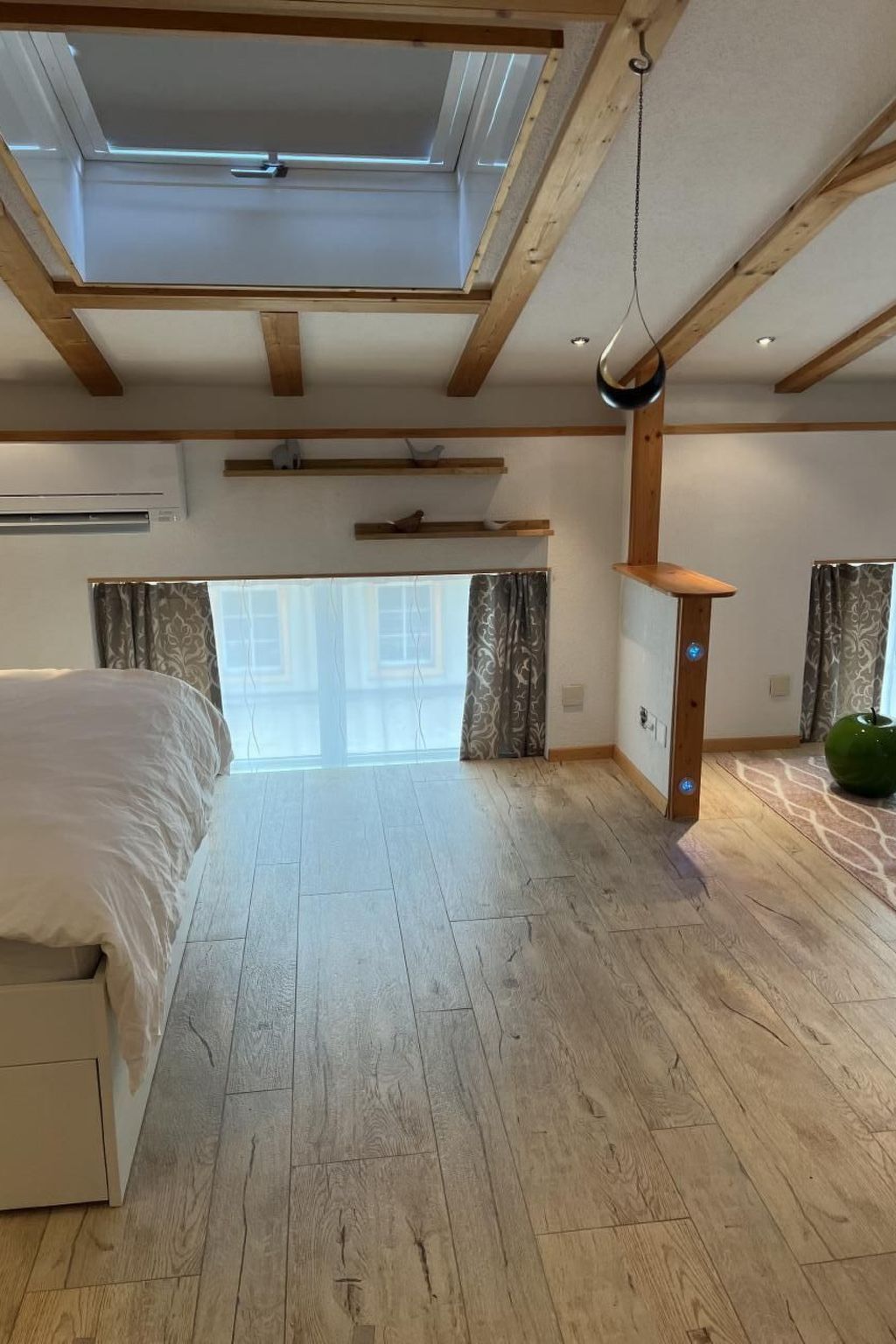 Massimo 2 animali/cani consentiti. This stunning Loft Appartement is 280m2 big. You can reach the appartement ATRIUM-X- by car within 13 minutes from Airport-ZH and 20 minutes from the house until Zürich itself. This Loft has everything to make you feel confortable and is fully equipped. It's got 8 parking lots direct at the House, there's an elevator that takes you up to the first Floor wich is 200m2 big and where you will find the following;Entrée, a huge kitchen, Billiard & Dining table, a big fireplace, Piano, Toilette and Urinal, Washroom and a Balkony. The second floor up the stairs you will find 2 Bedrooms fully equipped as well with finest beds of high standard. Each bedroom has an integrated bathroom with shower, bath, toilette and Lavabo. On the same floor there's is also a spa area with sauna. By taking the elevator from the first floor you will reach the 3rd floor where there's a wintergarden (very cosy in Winter to BBQ) and also a terrace 90m2 big with a stunning view into the green. The Loft is so close to Zurich but yet lays in a rural environement, close to forests with a river next to the house and lots of opportunities to go walking with beautiful places here and there.
