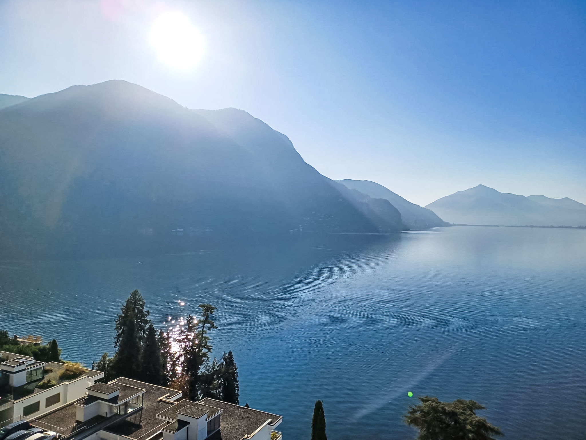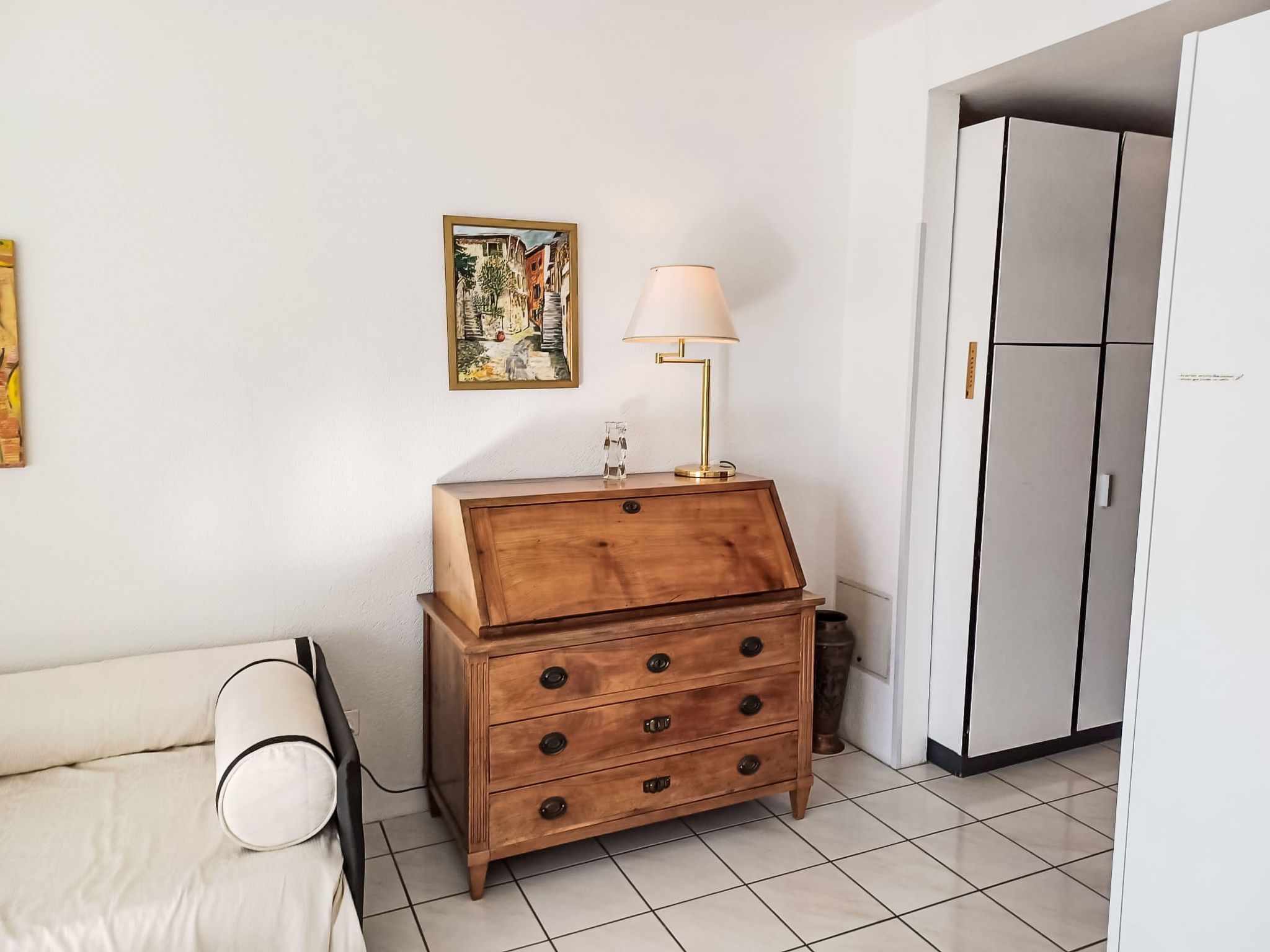 "Vista Lago" monolocale 35 m2 al 6. piano, esposizione sud. Spazioso e luminoso, arredamento confortevole e moderno: soggiorno/camera aperto con finestra panoramica con 1 letto doppio ad armadio (2 x 90 cm, lunghezza 200 cm), tavolo da pranzo e TV (satellite) (schermo piatto). Uscita sulla terrazza. Piccola cucina (4 punti cottura, forno, lavastoviglie). Doccia/WC. Terrazza 8 m2 in parte coperta, esposizione sud. Mobili da terrazza. Magnifica vista panoramica sul lago, sulle montagne, sul paesaggio e sulla località. A disposizione: seggiolone, lettino per bimbi fino 2 anni (extra). Internet (wifi, gratis). Parcheggio nr. 20 (coperto), altezza 290 cm, larghezza 230 cm. Prego notare: appartamento per non fumatori. Tv solo in DE, EN, ES. NL-00009004