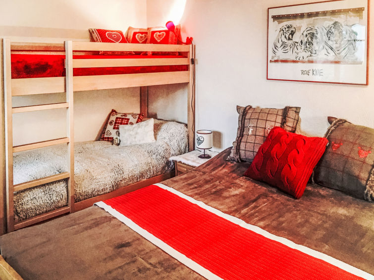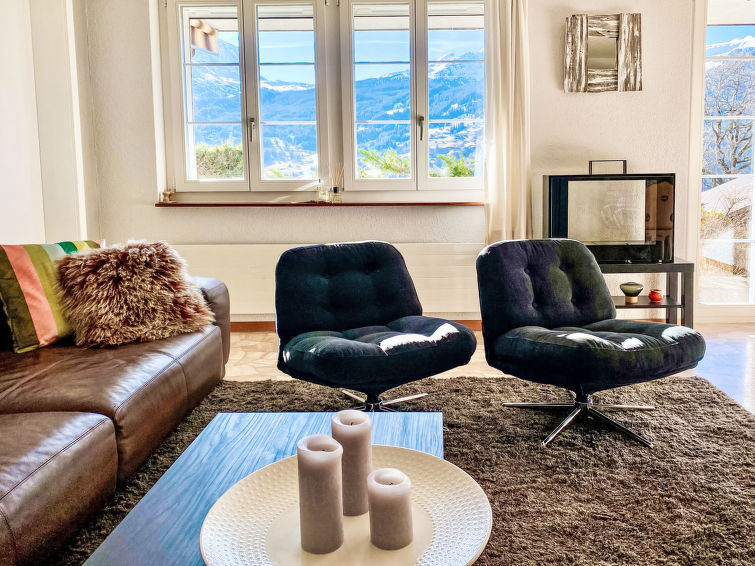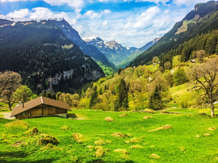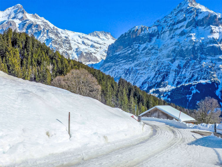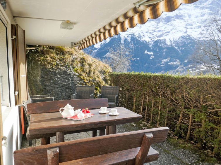 Apt. di 2 locali 53 m2, al pianterreno, esposizione sud. Oggetto adatto a 2 adulti + 2 bambini. Luminoso, arredamento confortevole e accogliente: soggiorno/sala da pranzo aperto con tavolo da pranzo, TV (via cavo), schermo piatto e raccolta di dvd a disposizione. Uscita sulla terrazza, esposizione sud. 1 camera con 1 letto (160 cm, lunghezza 200 cm), 1 x 2 letti a castello (90 cm, lunghezza 190 cm). Piccola cucina (3 punti cottura, forno, lavastoviglie, tostapane, bollitore elettrico, forno a microonde, macchina da caffè elettrica, capsule per la macchina da caffè (Nespresso) extra, set per raclette, set per fondue (formaggio)). Vasca/WC. Terrazza 15 m2, esposizione sud. Mobili da terrazza. Magnifica vista sulle montagne, sul paesaggio e Eiger. A disposizione: lavatrice, asciugacapelli. Internet (wifi, gratis). Parcheggio (1 Auto), garage nr. 42D. Prego notare: adatto alle famiglie. Appartamento per non fumatori. Massimo 1 animale/cane consentito. Ingresso privato, estintore.