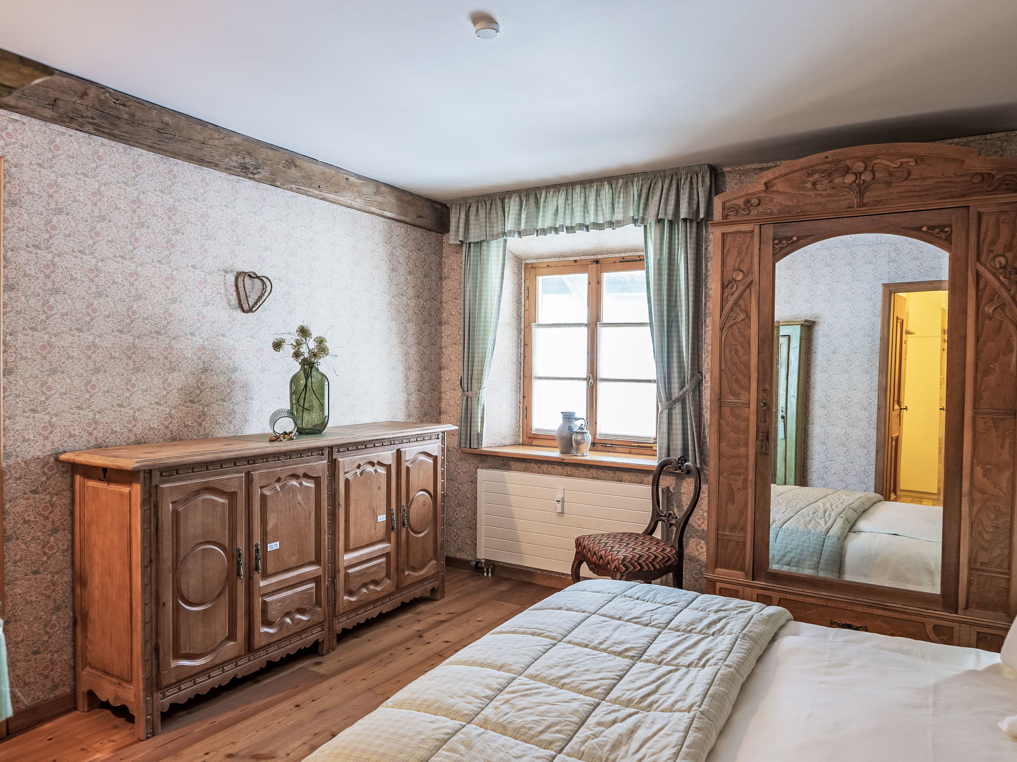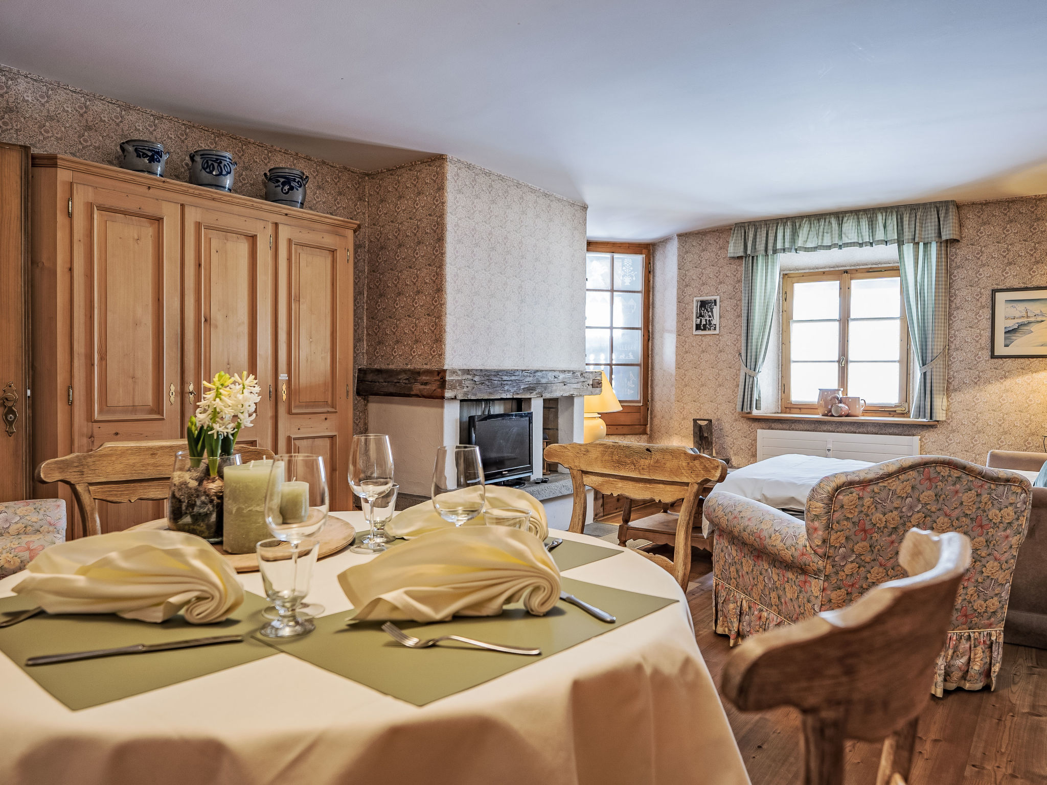 "Chesa Olgiati 2", apt. di 2 locali 45 m2 al 2. piano. Arredamento rustico e accogliente: soggiorno/sala da pranzo aperto con 1 divano letto (140 cm, lunghezza 190 cm), TV (schermo piatto). Uscita sul balcone. 1 camera matrimoniale con 1 letto doppio (1 x 160 cm, lunghezza 190 cm), doccia/WC. Cucina (4 punti cottura, forno, lavastoviglie, tostapane, bollitore elettrico, congelatore, macchina da caffè elettrica, capsule per la macchina da caffè (Nespresso) extra, set per raclette, set per fondue (formaggio)). Riscaldamento. Piccolo balcone 2 m2. Mobili da balcone. Parziale vista sulle montagne e sulla località. A disposizione: asciugacapelli. Internet (wifi, gratis). Garage nr. Giovetto nella proprietà, altezza 197 cm, larghezza 230 cm. Prego notare: appartamento per non fumatori, casa per non fumatori. No ascensore.