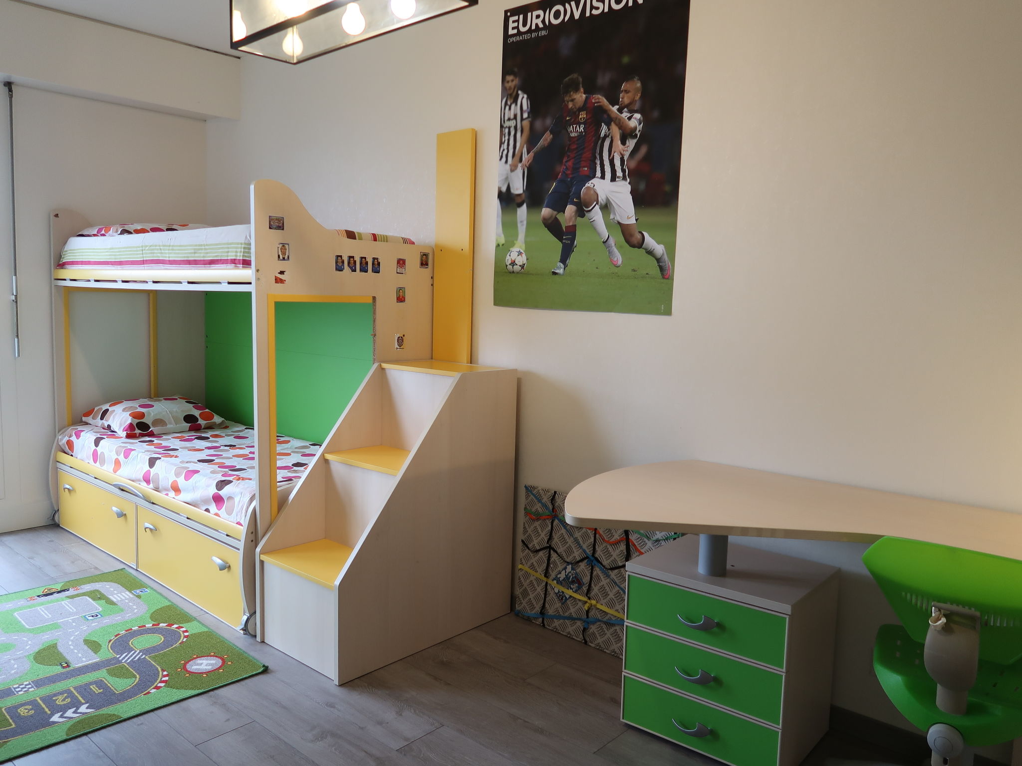 "Résidence Ciomal", apt. di 4 locali al 6. piano. Oggetto adatto a 4 adulti + 2 bambini. Arredamento confortevole e accogliente: soggiorno/sala da pranzo grande con TV e tapparelle elettriche. Uscita sul balcone. 1 camera per bambini con 1 x 2 letti a castello (80 cm, lunghezza 180 cm). Uscita sul balcone. 1 camera con 1 letto doppio (160 cm, lunghezza 200 cm), doccia/WC. 1 camera con 1 letto (80 cm, lunghezza 190 cm), 1 divano letto (90 cm, lunghezza 200 cm). Cucina aperta (lavastoviglie, 4 piastre cottura in vetroceramica, tostapane, bollitore elettrico, forno a microonde, congelatore, macchina da caffè elettrica). Vasca/WC, doccia/WC. Balcone, piccolo balcone. Mobili da balcone. Splendida vista panoramica sul lago, sulle montagne e sul paesaggio. A disposizione: lavatrice, ferro da stiro, asciugacapelli. Internet (wifi). Garage nella proprietà. Prego notare: appartamento per non fumatori.