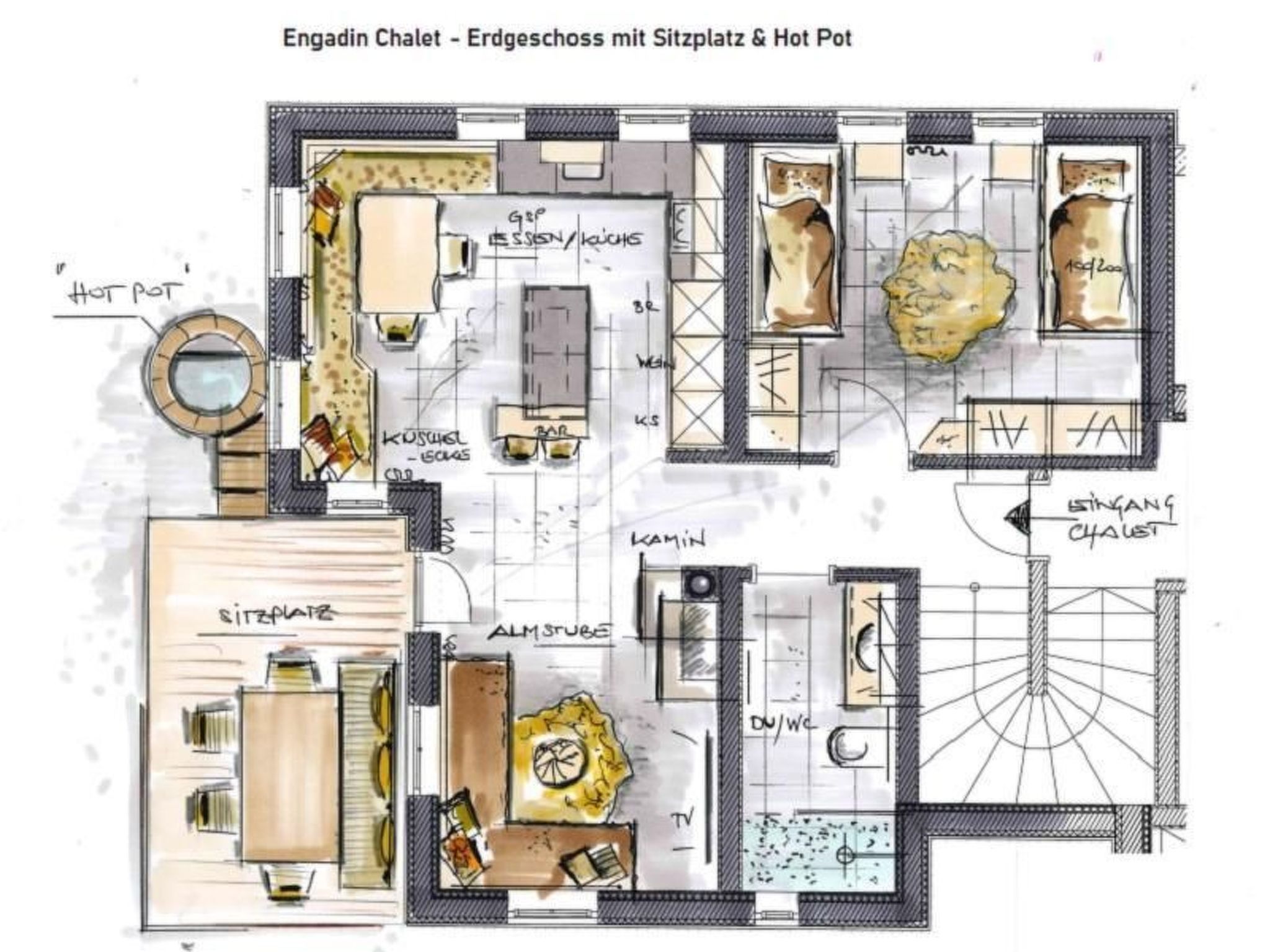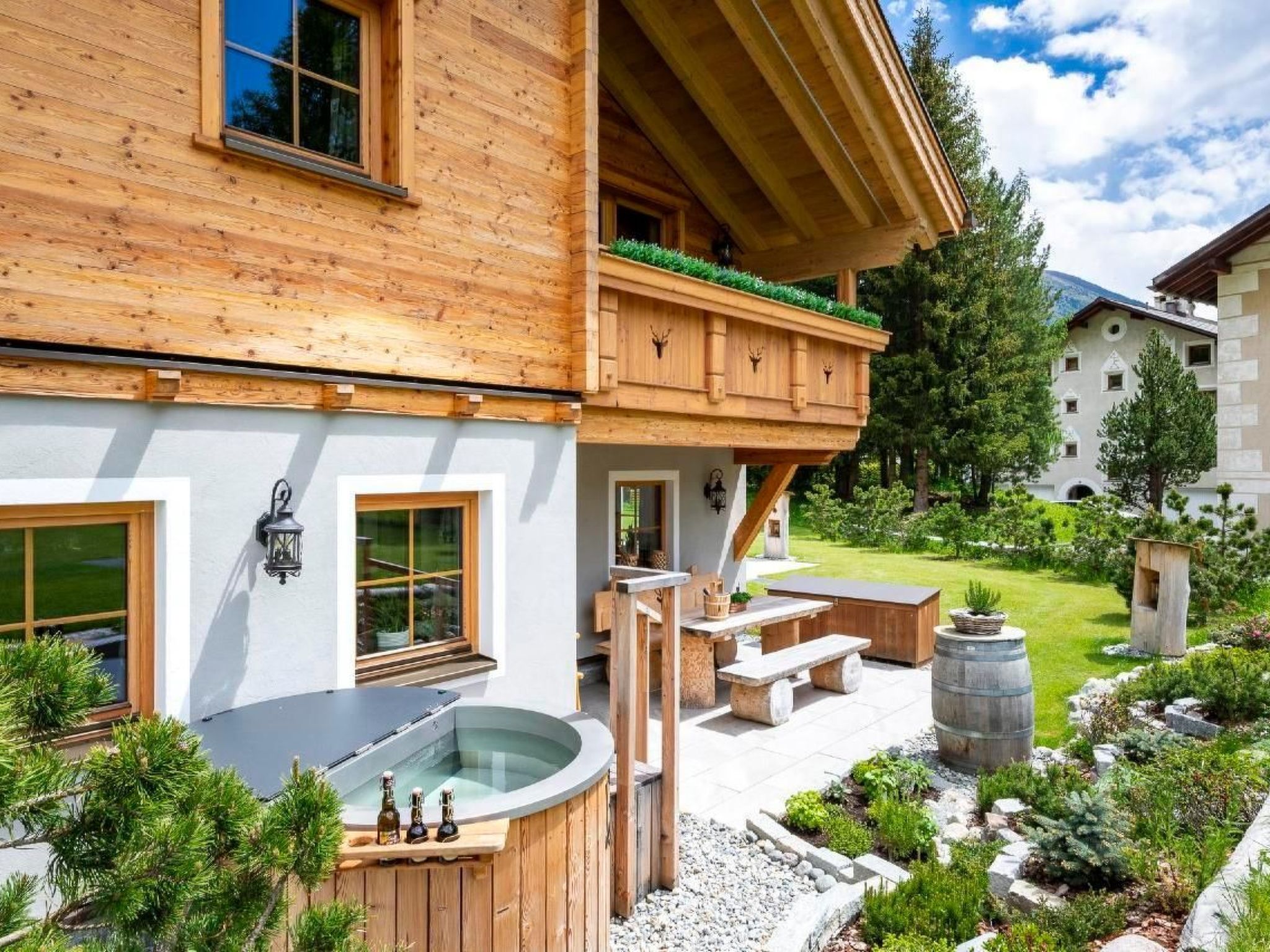 Spend unforgettable days in the new Engadin Chalet, your private luxury mountain retreat in the heart of the Engadin. At an altitude of 1,717 metres, surrounded by the breathtaking backdrop of the Bernina massif and close to the famous St. Moritz, our chalet offers an exclusive combination of alpine luxury, warm-hearted tradition and plenty of privacy. Enjoy the comfort of our private spa area with sauna, whirlpool and a heated outdoor hot tub, providing relaxation at all times.Inside, the chalet impresses with its loving furnishings in typical Engadine style, characterised by warmth and flair. High-quality natural materials, solid wood furniture and wooden and stone floors create a cosy atmosphere. The ground floor features a fully equipped, modern kitchen and a spacious open-plan living area with an inviting open fireplace for cosy evenings. The upper floor has two cosy bedrooms, a sunny balcony and a spacious bathroom.The outdoor area of the chalet is an oasis of relaxation. Directly adjoining the sun-drenched living area is a private terrace with indescribable views of the surrounding mountains and Val Bever. The stainless steel hot tub enhances the feeling of luxury and privacy. The direct location on the edge of the village offers direct access to the cross-country ski trails in winter and makes the chalet the ideal starting point for exploring nature.The chalet's location is particularly appealing to sports enthusiasts and those seeking relaxation who want to explore the almost unspoilt nature of the Engadin. The cross-country ski trail right on the doorstep and the proximity to the Marguns/Corviglia ski area offer perfect conditions for winter sports enthusiasts. In summer, countless hiking and cycling trails invite you to explore. Cultural and sporting events in St. Moritz enrich the offer and can be reached within a few minutes' drive.As a local family with deep roots in the region, we look forward to welcoming you to the Engadin Chalet. We are sure that you will experience an incomparable holiday here amidst the picturesque landscape of the Engadin, combined with our alpine luxury and the private atmosphere of the chalet. Discover the fascination of the Engadine with us and enjoy a holiday you won't soon forget.