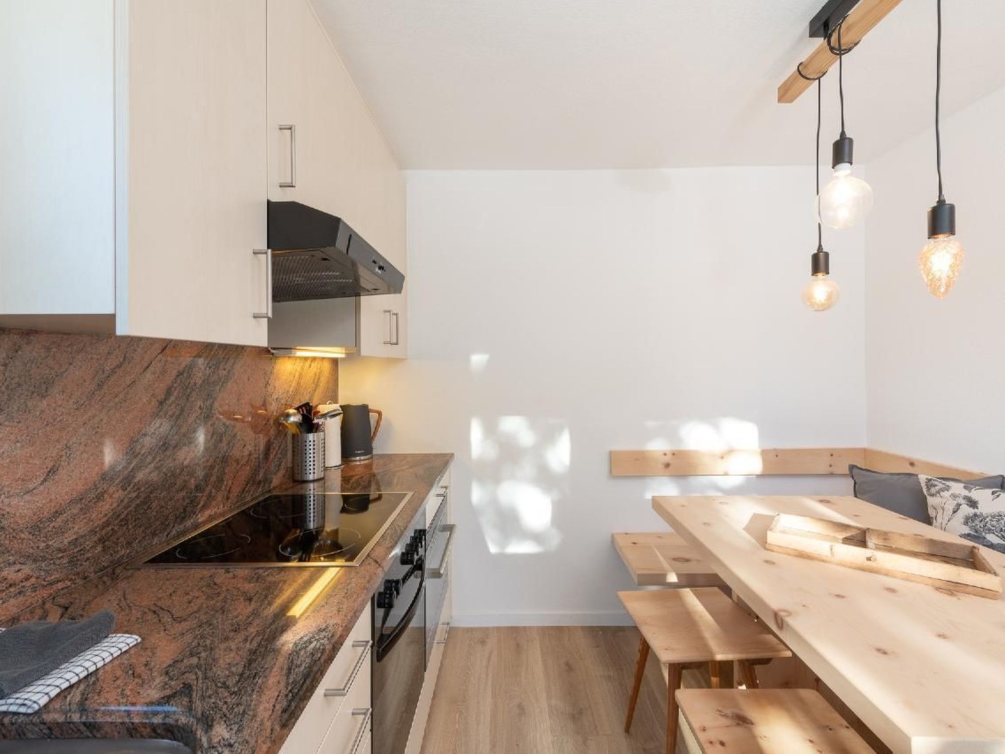 **Discover our Natüra** holiday flat - your cosy 45 m² hideaway, located in a beautiful confectioner's villa. This charming 2-room flat welcomes you with an open-plan cloakroom in the entrance hall and offers a very special living atmosphere thanks to its location on the ground floor with bedroom and living room in the raised basement.Inside, you will find amenities that will make your stay unforgettable. The kitchen, with a beautiful Swiss stone pine dining area, is fully equipped - including a fridge with freezer compartment, oven, dishwasher and a fully automatic coffee machine for whole beans. In the living room, a green sofa, a cosy reading chair and a TV invite you to relax. A cosy wooden floor harmoniously connects all the rooms, complemented by a bathroom with a walk-in rain shower that leaves nothing to be desired.The outdoor area of the Natüra holiday flat boasts a wonderful garden seating area, which is directly accessible from the kitchen. Here you can relax surrounded by nature and enjoy the peaceful atmosphere. Our dreamy garden around the villa also invites you to linger and creates an oasis of peace.Not only the holiday flat itself, but also the surrounding area offers a wide range of leisure activities. Bever, located in the heart of the Engadine, is the perfect starting point for exploring the breathtaking mountain world and the Upper Engadine lake district. Whether hiking, mountain biking, carriage rides into Val Roseg or Val Fex, or skiing and snowboarding fun on 350 kilometres of the finest pistes - the offer is varied. Cultural highlights, such as a visit to the museum or art galleries, round off the programme.**Feel welcome to combine relaxation and adventure perfectly in our Natüra holiday flat. Enjoy the unique flair of the Engadine village of Bever, its tranquillity and nature, and let yourself be enchanted by the many possibilities of this region. We look forward to providing you with unforgettable moments in the heart of the Engadine!