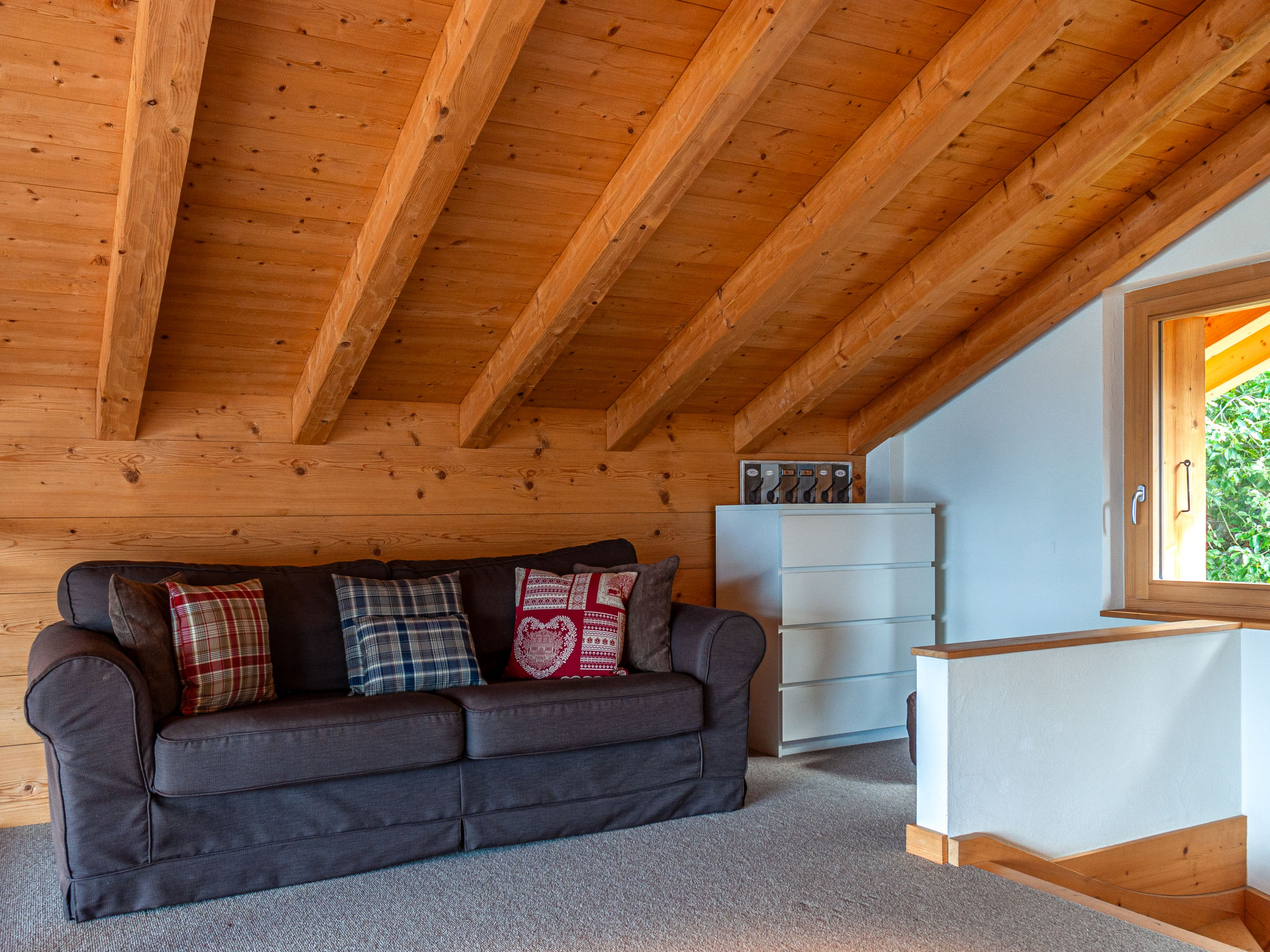 "Chalet Jadi", chalet 5 locali 214 m2 su 3 piani. Arredamento confortevole e di buon gusto: soggiorno/sala da pranzo grande con camino e TV (via cavo). Cucina aperta (forno, lavastoviglie, 5 piastre ad induzione, tostapane, bollitore elettrico, forno a microonde, macchina da caffè elettrica, capsule per la macchina da caffè (nespresso) extra, set per raclette, set per fondue (formaggio)). WC separato. Riscaldamento. Piano inferiore: 1 camera con 1 letto alla francese (160 cm, lunghezza 200 cm). 1 camera con 1 letto alla francese (160 cm, lunghezza 200 cm). 1 camera con 2 letti (90 cm, lunghezza 190 cm). Vasca/WC, doccia, WC separato, lavabo doppio, sauna. Piano superiore: soppalco aperto grande con 1 divano letto (160 cm, lunghezza 200 cm). 1 camera con 2 letti (90 cm, lunghezza 190 cm), lavabo e TV. Balcone, esposizione nord, terrazza, esposizione ovest. Mobili da terrazza, barbecue. Splendida vista panoramica sulle montagne e sulla valle. A disposizione: lavatrice, asciugatrice, seggiolone, lettino per bimbi, asciugacapelli. Internet (wifi, gratis). Parcheggio (2 Auto). Prego notare: casa per non fumatori. Uno o più posti letto adibiti a zona notte si trovano in area aperta o di passaggio (come soppalco, corridoio, alcova e simili).