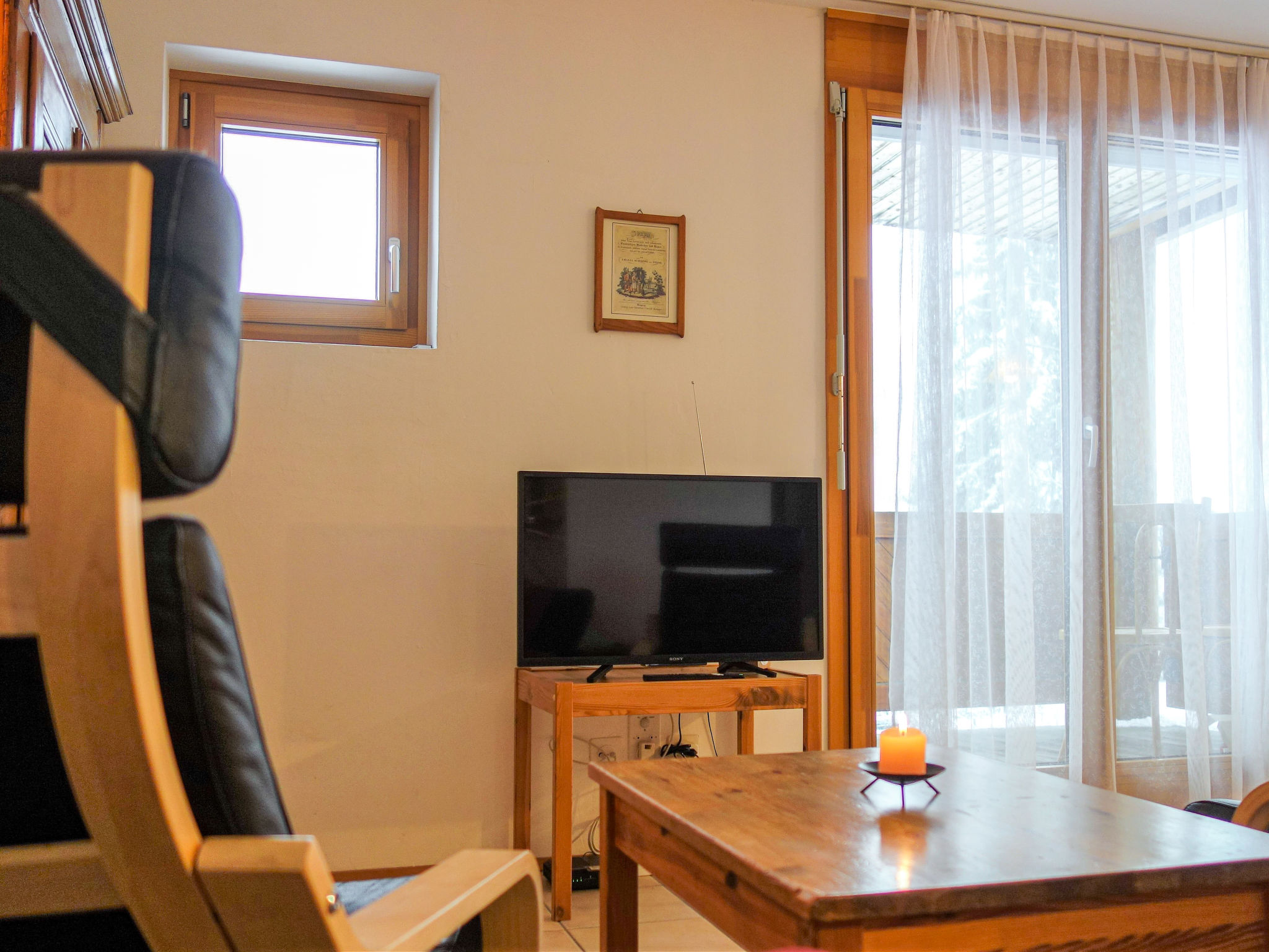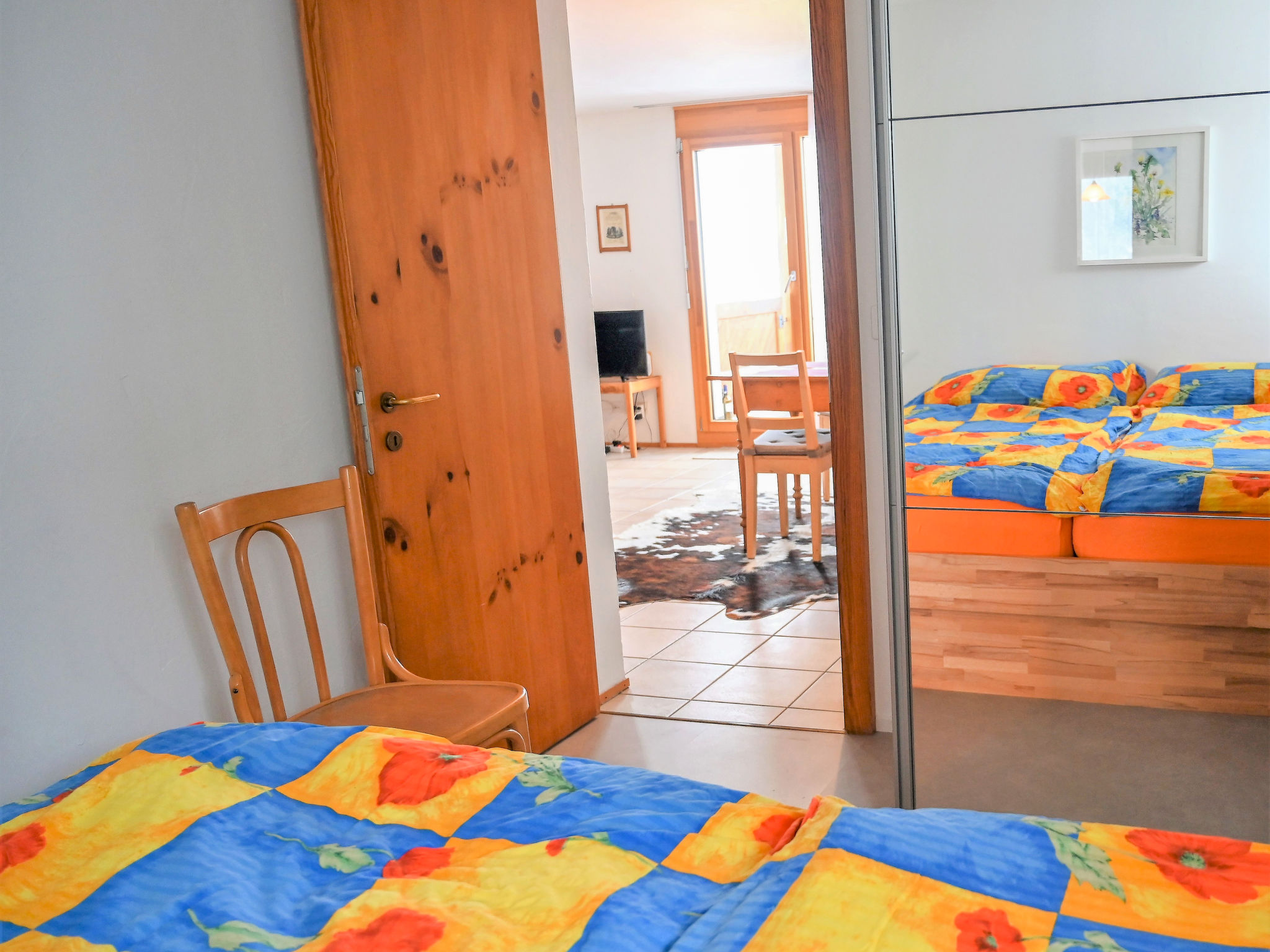 "Girun Eder", apt. di 3 locali 56 m2 al 1. piano. Oggetto adatto a 2 adulti + 3 bambini. Arredamento accogliente: soggiorno/sala da pranzo con 1 divano letto (lunghezza 195 cm), TV (via cavo) (schermo piatto), radio e impianto stereo. Uscita sul balcone. 1 camera con 1 letto doppio. 1 camera con 2 letti. Cucina aperta (forno, 4 piastre cottura in vetroceramica, tostapane, bollitore elettrico, macchina da caffè elettrica, capsule per la macchina da caffè (Nespresso) extra). Vasca/WC. Balcone, esposizione sud. Mobili da balcone. Bella vista sulle montagne, sul paesaggio e sulla località. A disposizione: asciugacapelli. Internet (wifi, gratis). Parcheggio nr. 12. Prego notare: appartamento per non fumatori. Massimo 1 animale/cane consentito.