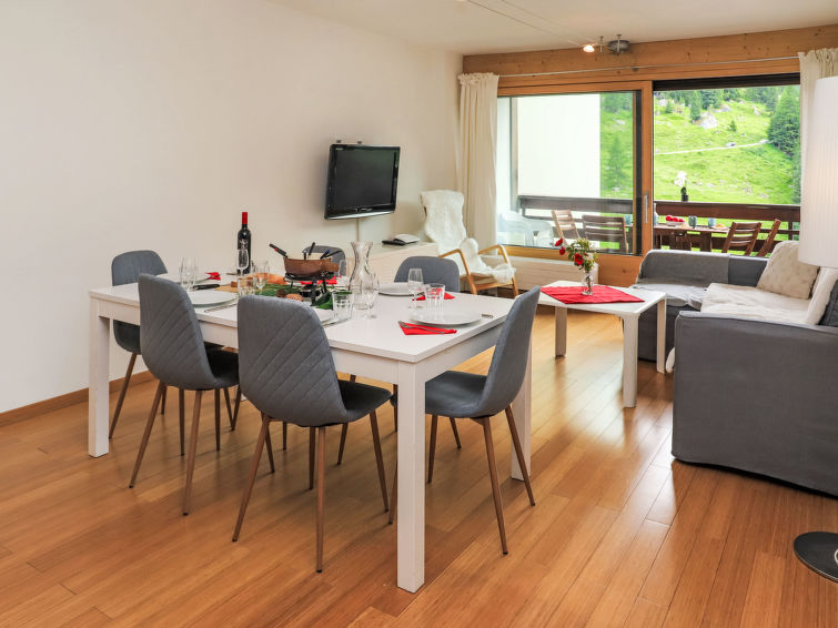 "Rosablanche D44", apt. di 4 locali 80 m2 al 4. piano. Oggetto adatto a 4 adulti + 4 bambini. Restaurato nel 2012, arredamento confortevole: soggiorno/sala da pranzo con TV (via cavo). Uscita sul balcone. Camera di passaggio piccola, senza finestra con 2 x 2 letti a castello (90 cm, lunghezza 190 cm). 1 camera con 1 letto alla francese (160 cm, lunghezza 200 cm), doccia/WC. 1 camera con 1 letto alla francese (160 cm, lunghezza 200 cm). Cucina aperta (forno, lavastoviglie, 4 piastre cottura in vetroceramica, tostapane, bollitore elettrico, forno a microonde, macchina da caffè elettrica, capsule per la macchina da caffè (Nespresso) extra, set per raclette, set per fondue (formaggio)). Vasca/WC. Pavimenti in parquet. Balcone, esposizione sud. Vista sulle montagne, sulla pista da sci e sulla località. A disposizione: asciugacapelli. Internet (wifi, gratis). Prego notare: adatto alle famiglie. Casa per non fumatori.