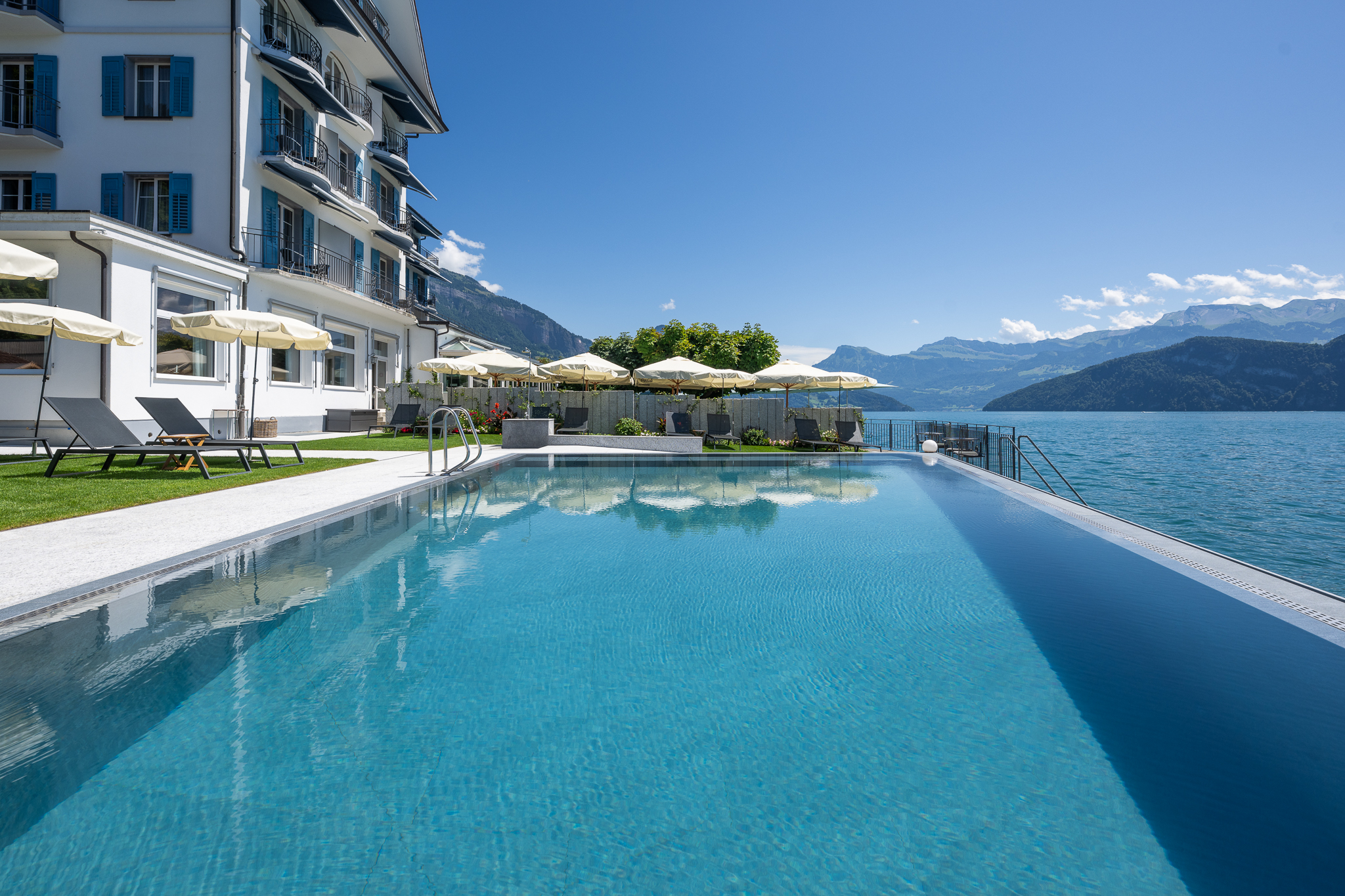 Con 32 stanze elegantemente arredate che trasmettono sia eleganza che comfort, qui troverai il rifugio perfetto. Ogni stanza è dotata di servizi di alta qualità e offre viste mozzafiato sul bellissimo Lago di Lucerna e sulle maestose montagne circostanti.