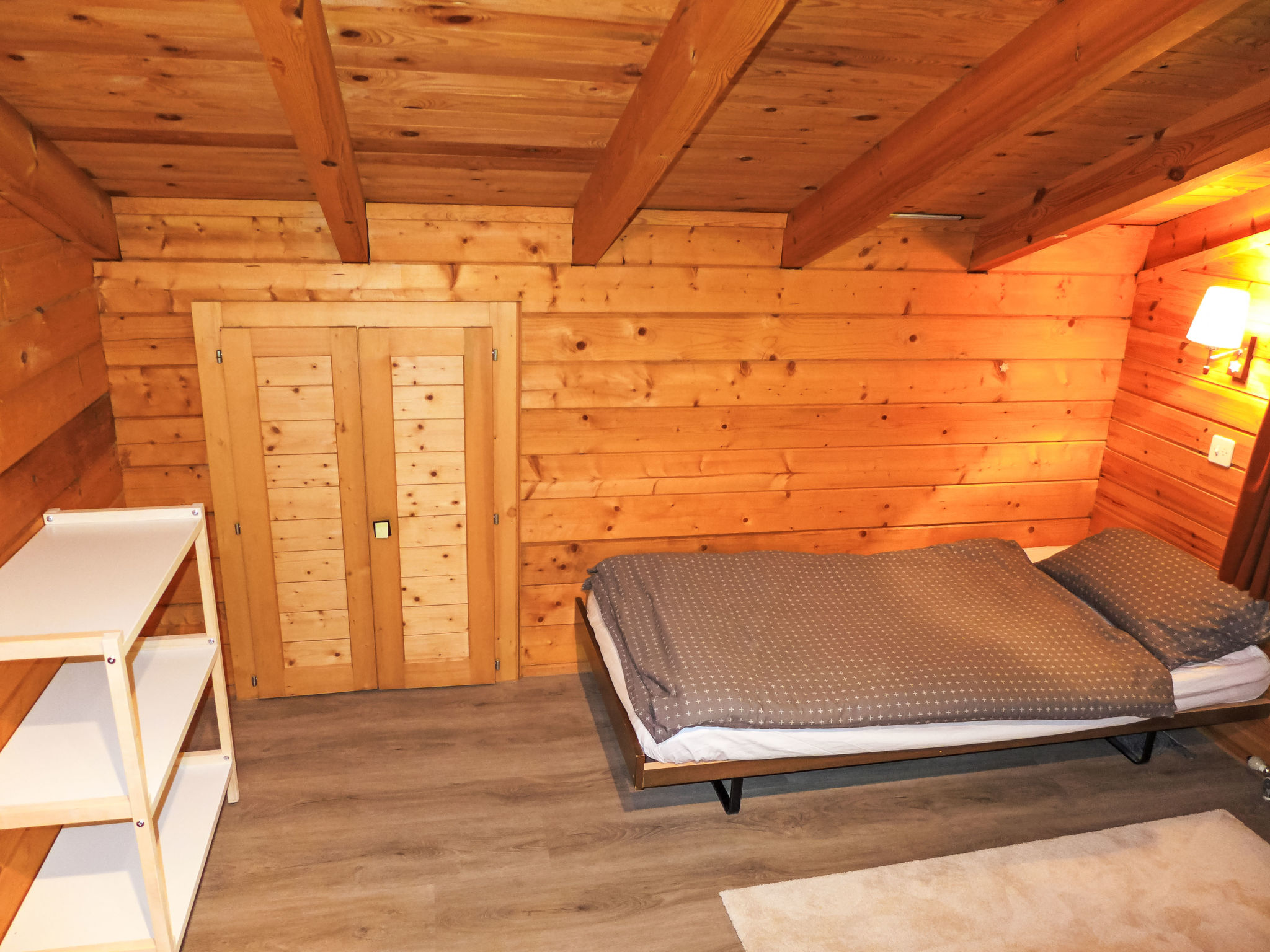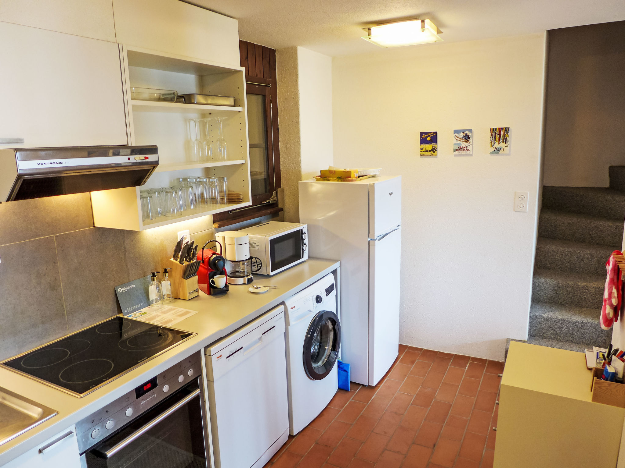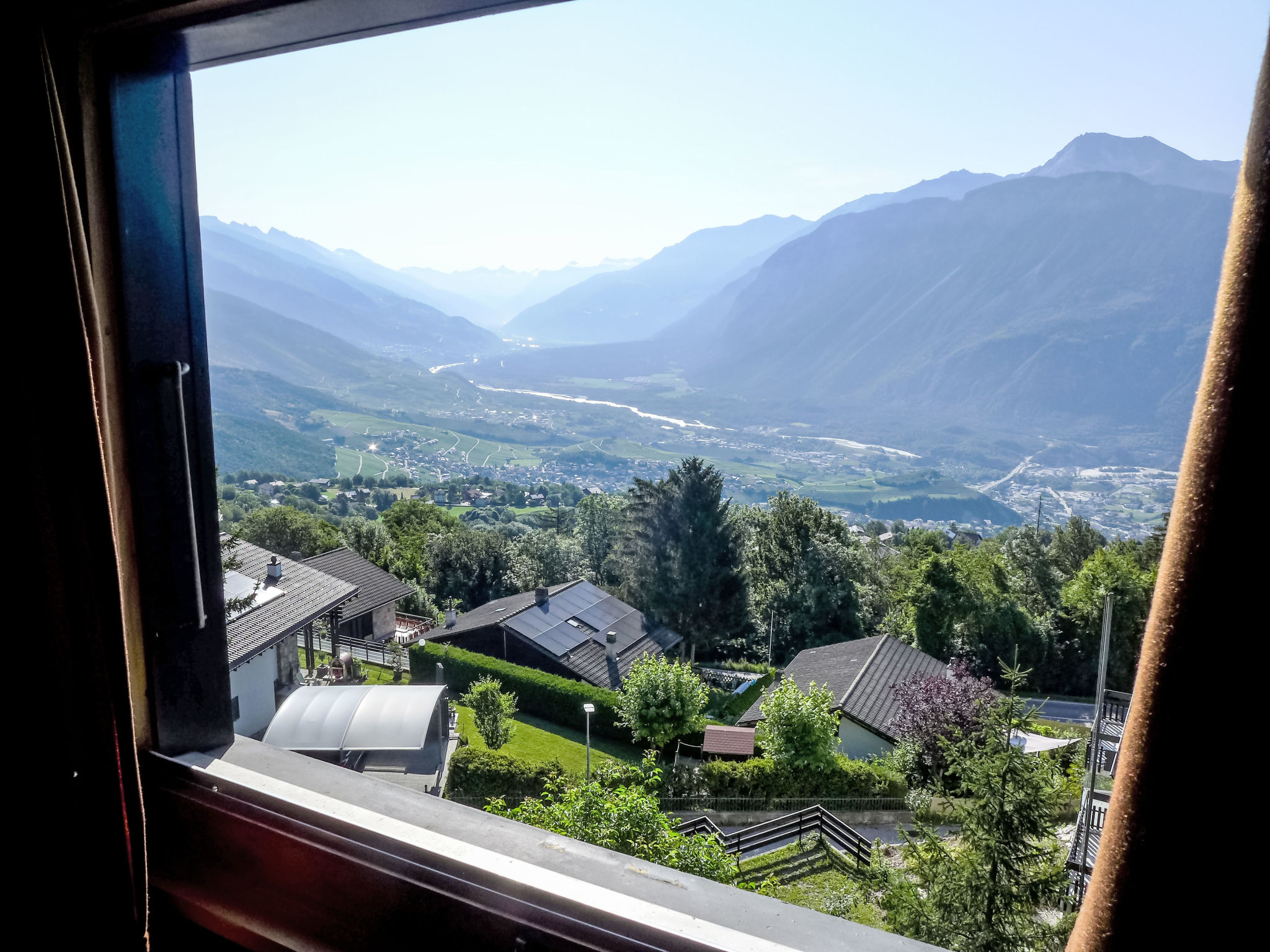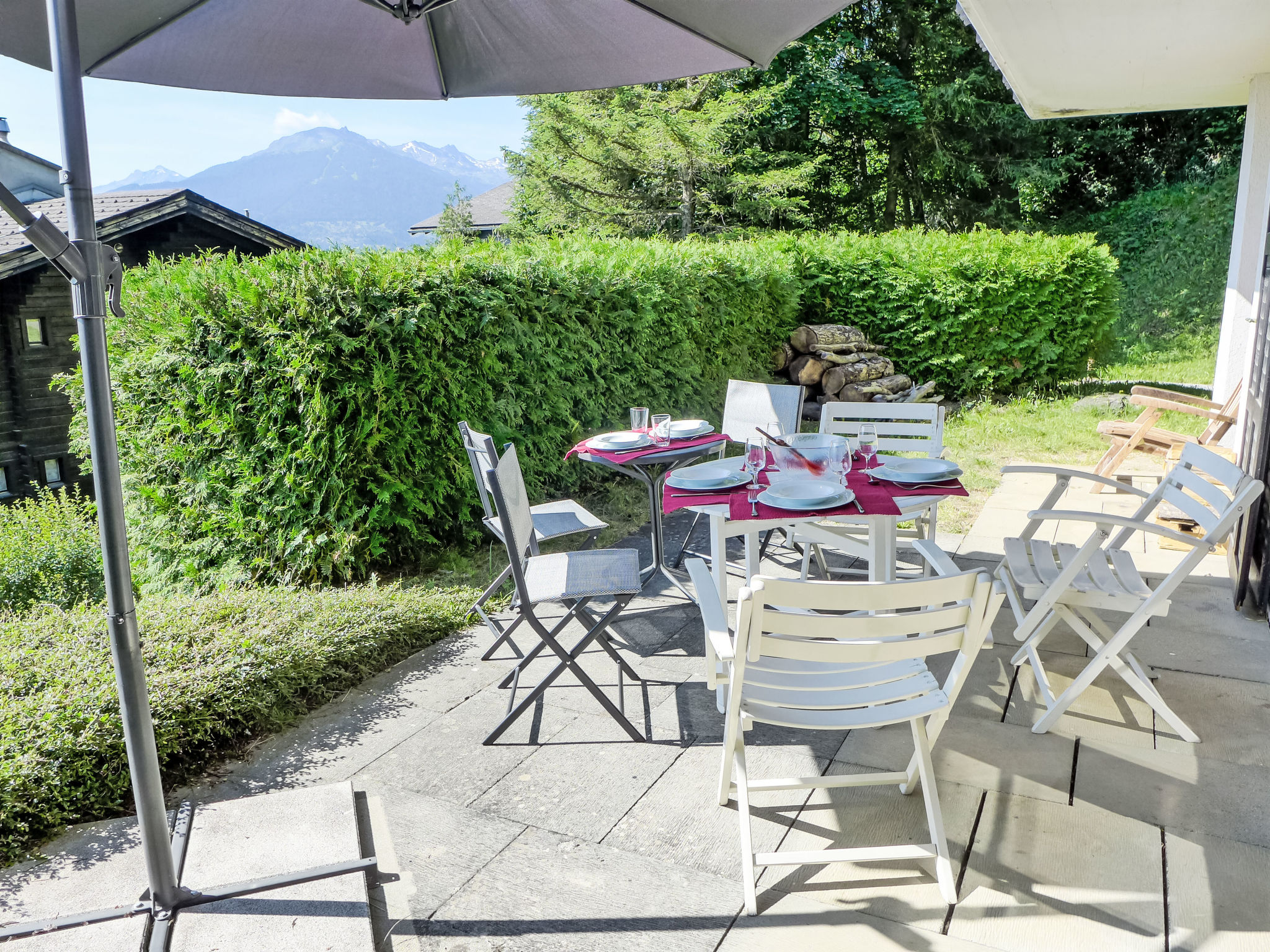 "Sans Nom", metà di una villetta bifamiliare 5 locali 120 m2 su 3 piani, esposizione sud. Oggetto adatto a 4 adulti + 2 bambini. In parte restaurata nel 2024, arredamento confortevole e gradevole: soggiorno/sala da pranzo piccolo con camino, TV (via cavo), radio e CD. Uscita sulla terrazza. Cucina aperta (forno, lavastoviglie, 4 piastre cottura in vetroceramica, tostapane, bollitore elettrico, forno a microonde, congelatore, macchina da caffè elettrica, capsule per la macchina da caffè (Nespresso) extra, set per raclette, set per fondue (chinoise, formaggio)). Piano superiore: 1 camera grande con 1 letto doppio (2 x 90 cm, lunghezza 200 cm). Uscita sul balcone. 1 camera con 1 letto (90 cm, lunghezza 190 cm). Vasca/WC, WC separato. 2. piano superiore: 1 camera mansardata con 2 letti (90 cm, lunghezza 200 cm). 1 camera per bambini mansardata con 1 letto (90 cm, lunghezza 190 cm). Doccia/WC. Balcone 15 m2, esposizione sud e esposizione est, terrazza 20 m2, esposizione sud. Mobili da terrazza, mobili da balcone, barbecue (portatile), sedie a sdraio (1). Bella vista sulle montagne, sulla valle e sul bosco. A disposizione: lavatrice, ferro da stiro, seggiolone, lettino per bimbi fino 2 anni, asciugacapelli. Internet (wifi, gratis). Garage (1 Auto), altezza 195 cm, larghezza 220 cm. Prego notare: casa per non fumatori. 1 animale/cane di piccola taglia consentito.