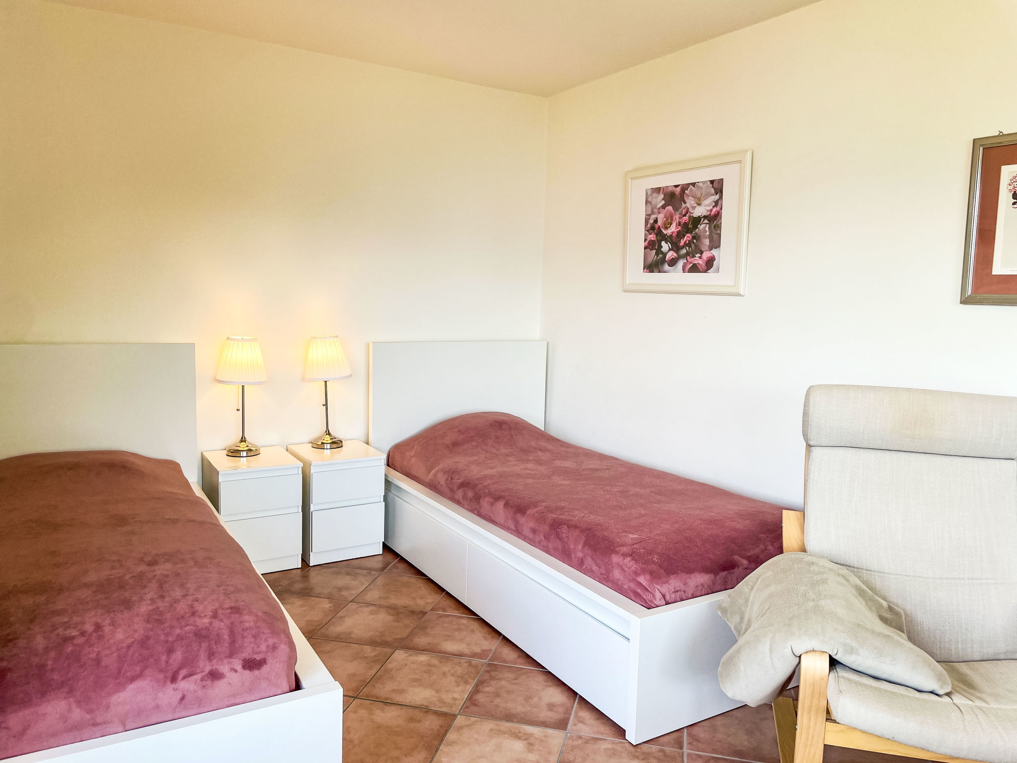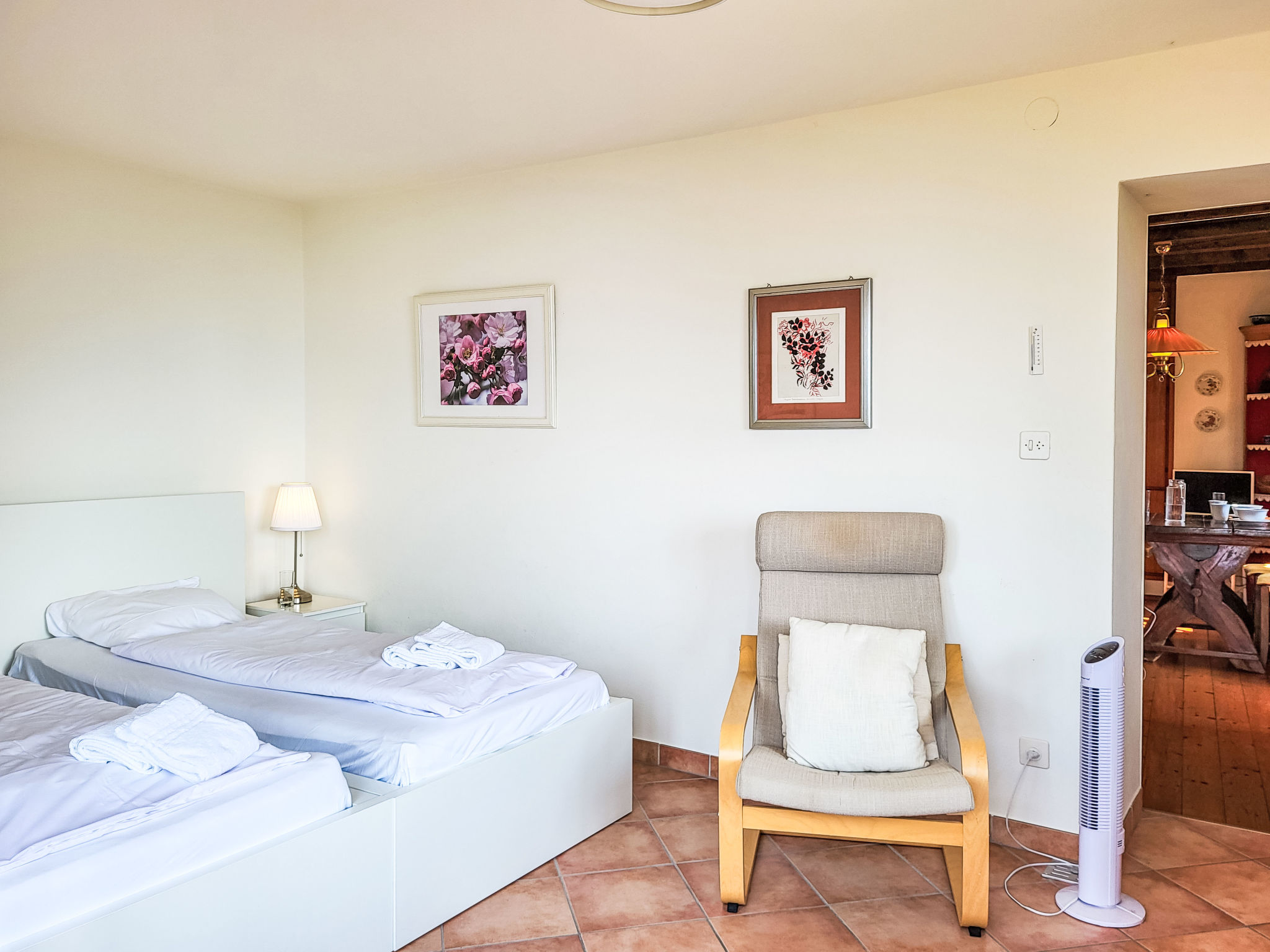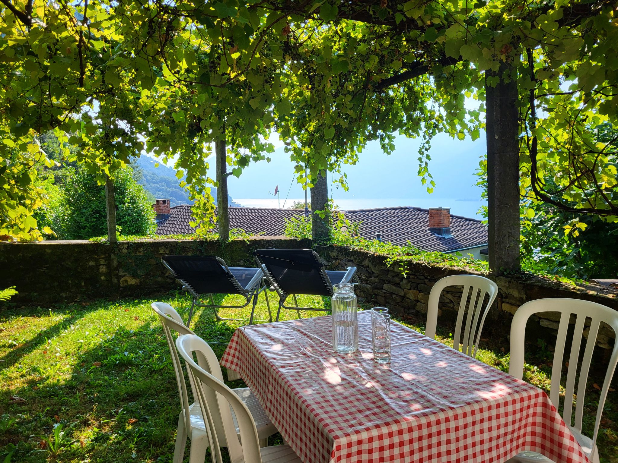 Vairano 17 km da Locarno: Casa singola "La Gioconda", 392 m s.l.m., piacevole, confortevole su 2 piani, costruita nel 1965, ristrutturata nel 2022, circondata da alberi e prati. In periferia, posizione tranquilla in una zona residenziale, a 500 m dal bosco, a 700 m dal lago, immerso nel verde, esposizione nord-ovest. Per uso privato: grande, bello giardino 100 m2 (recintato) con piante e alberi, parcheggio pubblico 100 m sulla strada. Negozio alimentare 1 km, ristorante 800 m, fermata bus "Vairano Paese (Linie 330,352)" 230 m, stazione ferroviaria "Cadenazzo Stazione S20" 12 km, spiaggia sabbiosa "Mini-Lido San Nazzaro" 800 m, spiaggia erbosa "Mini-Lido San Nazzaro" 800 m, piscina termale "Termali & Salini, Locarno", lago balneabile "Lago Maggiore" 800 m. Attrazioni nelle vicinanze: Ascona - Locarno, Naturschutzgebiet Bolle di Magadino, Falconeria, Kamelienpark, Piazza Grande, Botanischer Garten Gambarogno. Laghi famosi: Lago Maggiore, Lago di Lugano. Sentieri escursionistici: Monte Gambarogno. Il proprietario non accetta gruppi. Il proprietario non accetta gruppi di giovani.