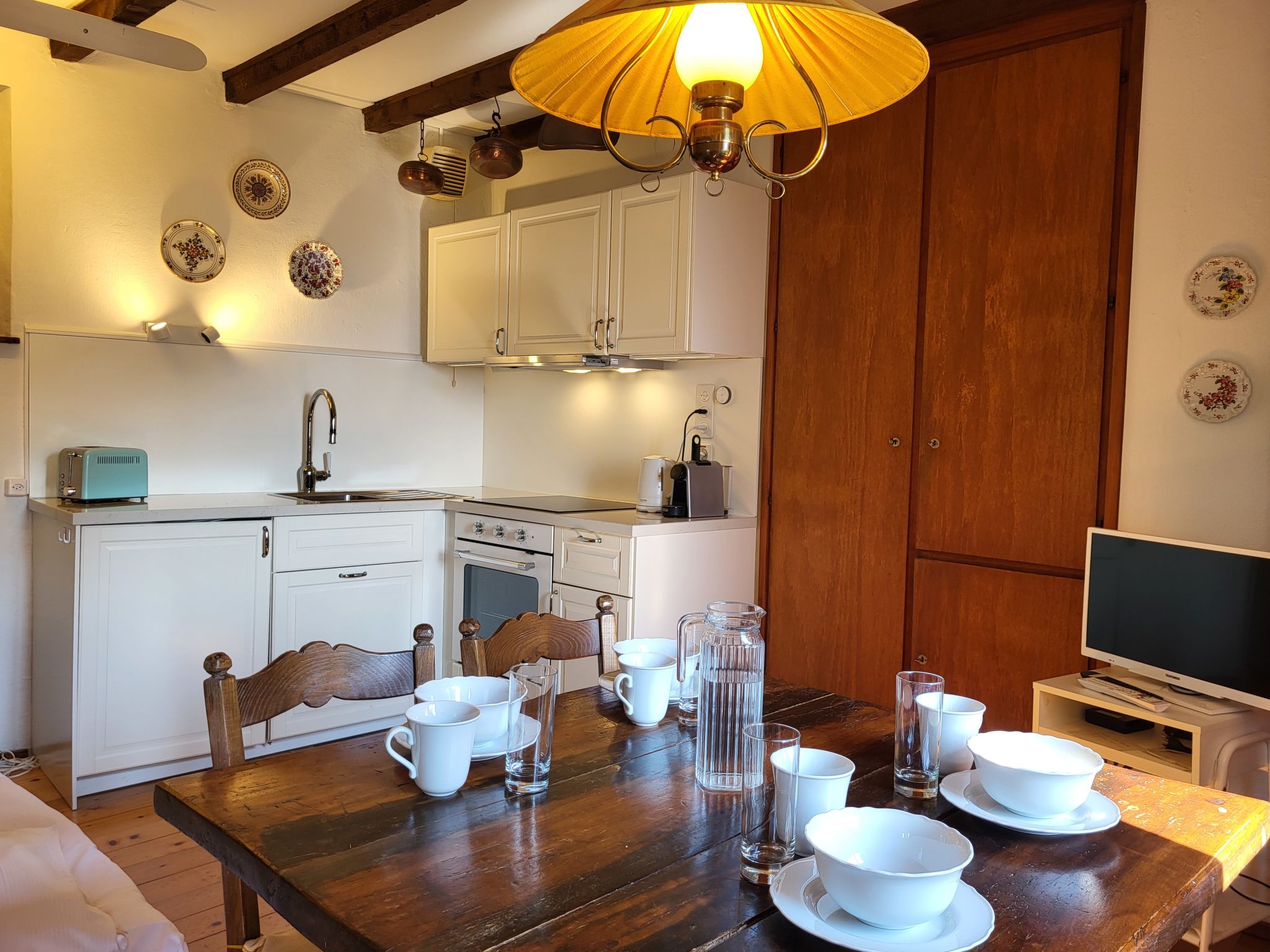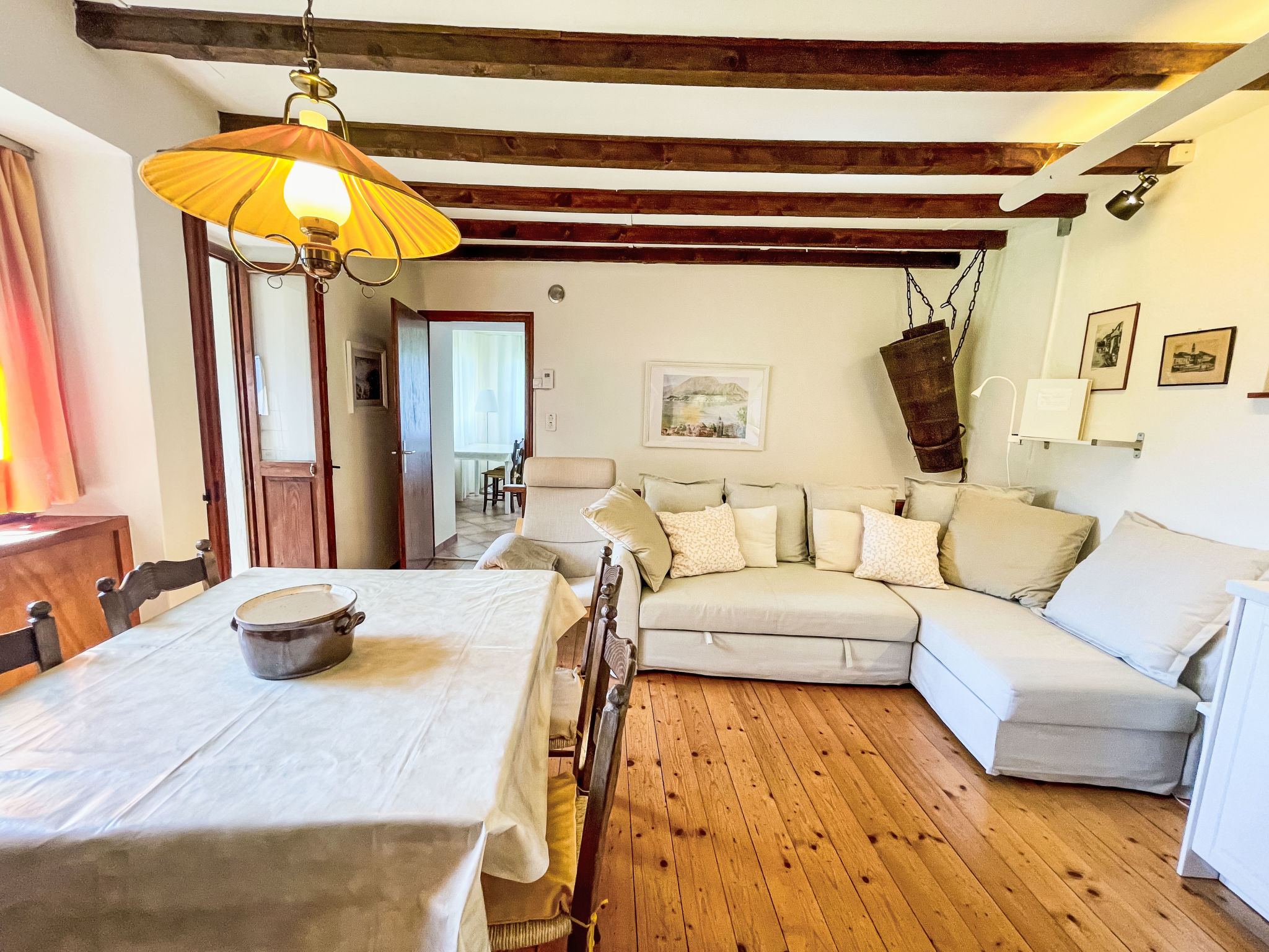 "La Gioconda", casa 3 locali 85 m2 su 2 piani, esposizione nord-ovest. Oggetto adatto a 4 adulti + 1 bambino. Arredamento gradevole e accogliente: camera di passaggio con 1 divano letto (140 cm, lunghezza 200 cm). Doccia/WC. Piano superiore: soggiorno/sala da pranzo aperto con 1 divano letto (140 cm, lunghezza 200 cm), tavolo da pranzo, tv con canali internazionali e schermo piatto. 1 camera matrimoniale con 2 letti (90 cm, lunghezza 200 cm). Uscita sul balcone. Cucina aperta (forno, 4 piastre ad induzione, tostapane, bollitore elettrico, macchina da caffè elettrica, capsule per la macchina da caffè (Nespresso) extra). WC separato. Riscaldamento a gasolio, boiler (150 litri). Massimo 1 animale/cane consentito. NL-00005206