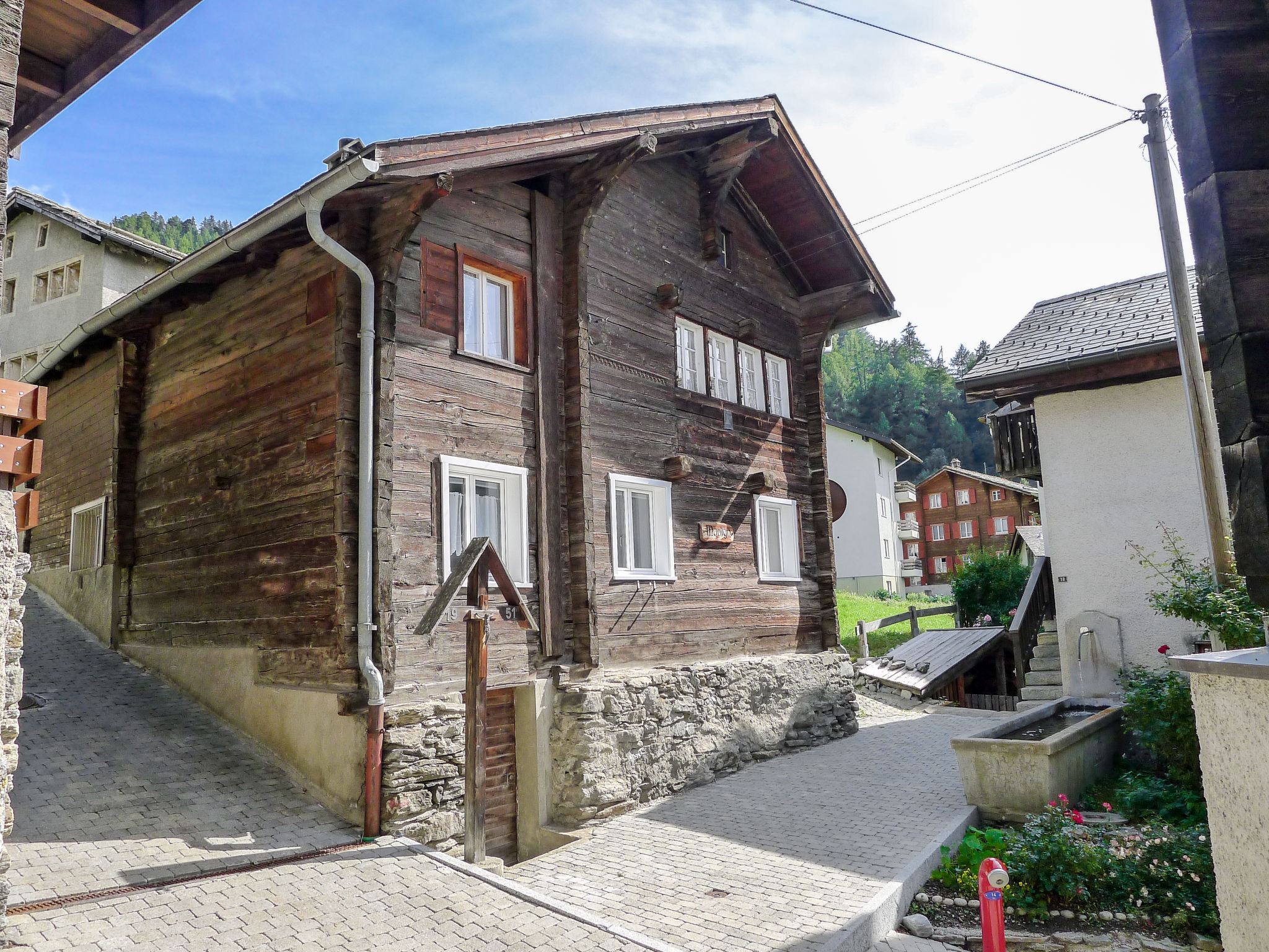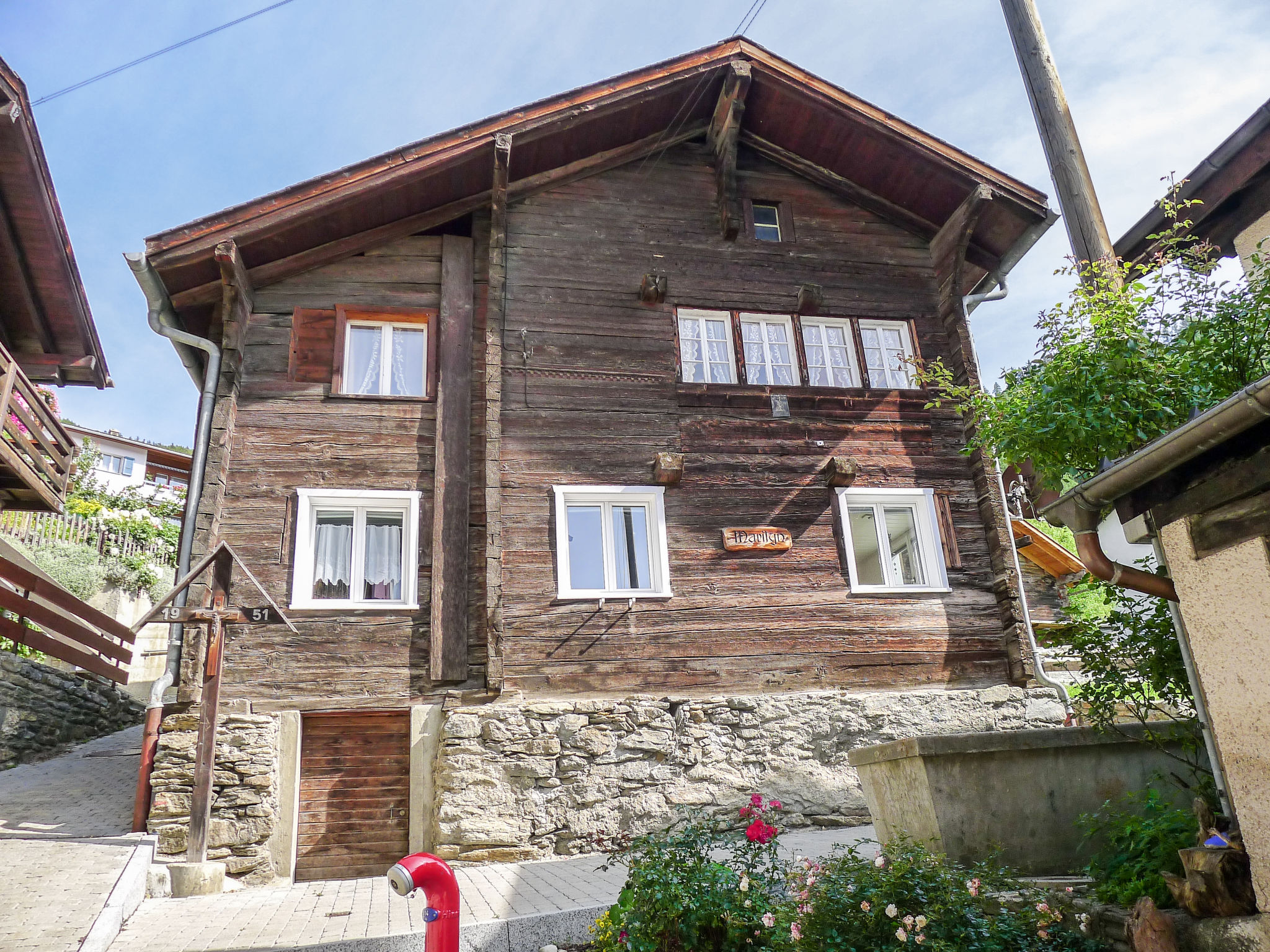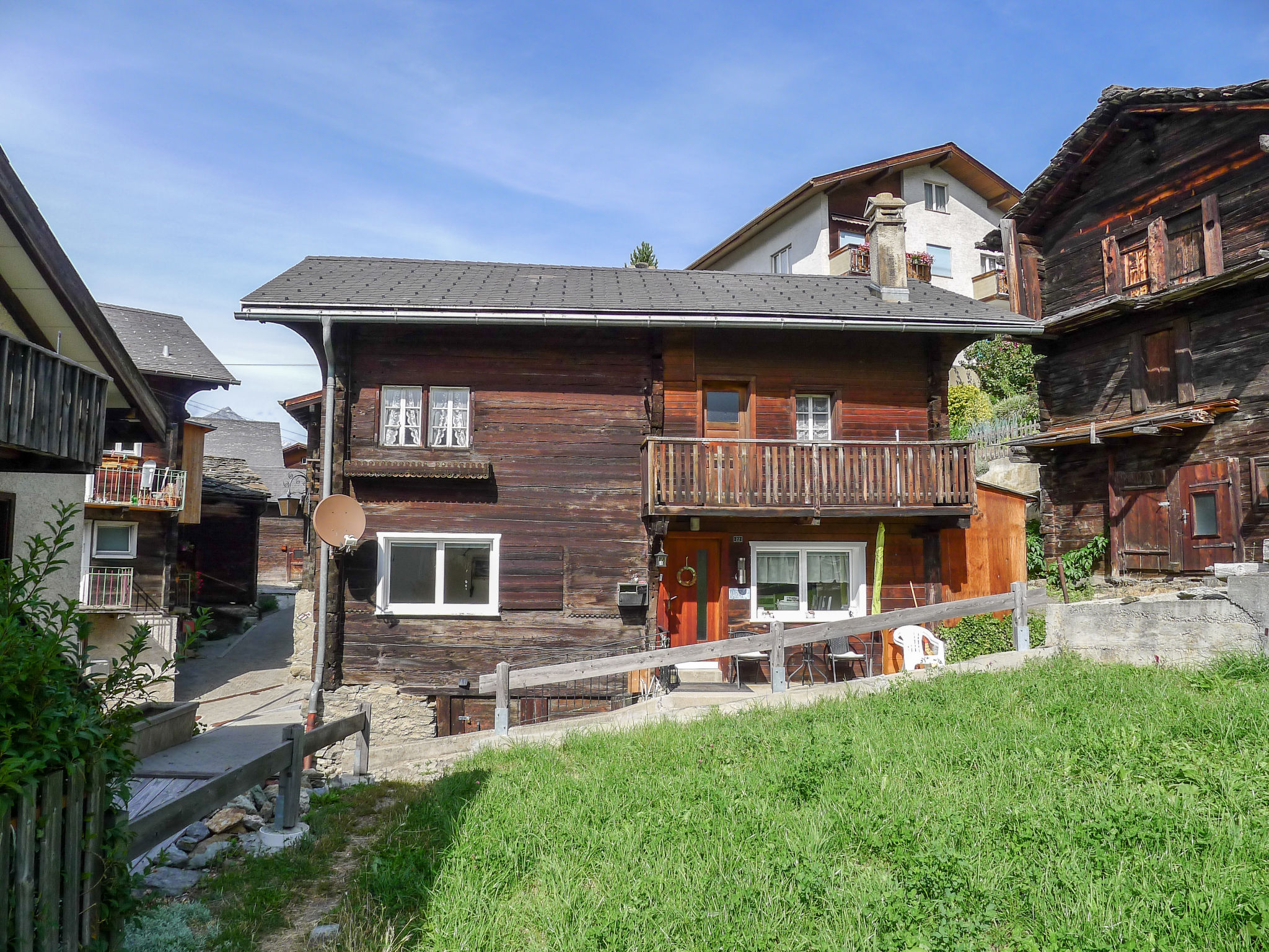 Visperterminen 9 km da Visp: Chalet "Marilyn", 1'330 m s.l.m., accogliente, rustico su 2 piani. Nella località, posizione tranquilla, soleggiata, a 200 m dall'area sciistica. Nella casa: riscaldamento centralizzato. Accesso fino 50 m da alla casa (strada di montagna). 50 m sentiero pedonale fino alla casa. Garage pubblico a 200 m, parcheggio pubblico 100 m extra. Negozio alimentare 300 m, shopping center 10 km, ristorante 200 m, fermata bus 200 m, stazione ferroviaria "Visp" 10 km, piscina 10 km, piscina coperta 10 km. Sciovia, seggiovia, impianti di risalita, piste da sci, scuola di sci, pista per slitte, pattinaggio, parco giochi 200 m. Rinomate località sciistiche: Zermatt 45 km, Saas Fee 40 km.