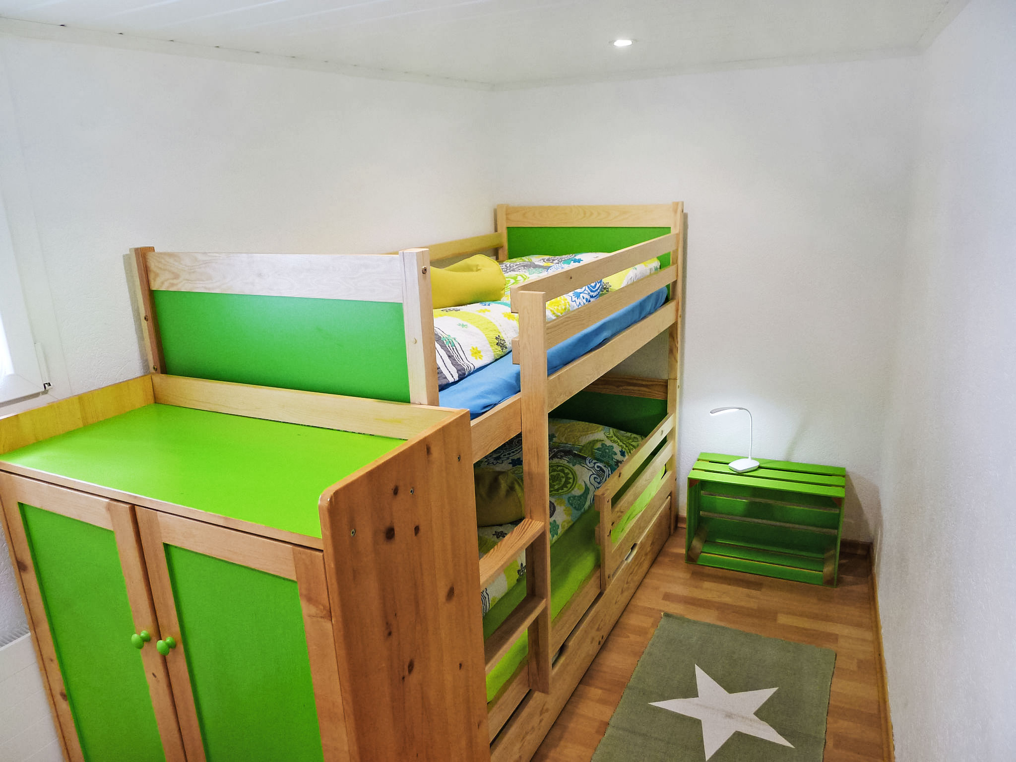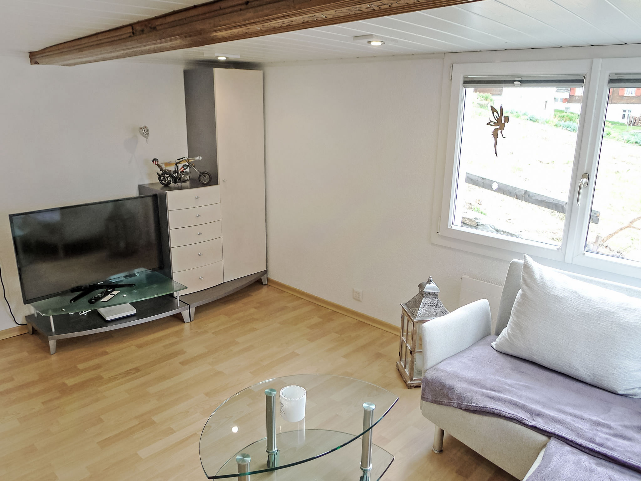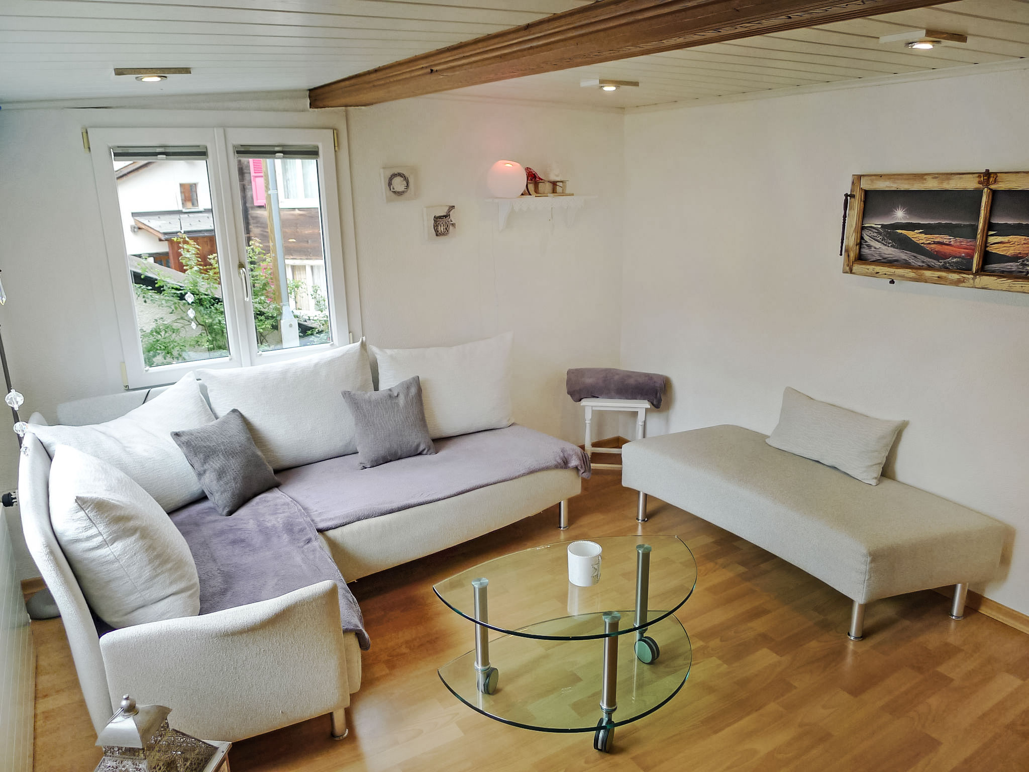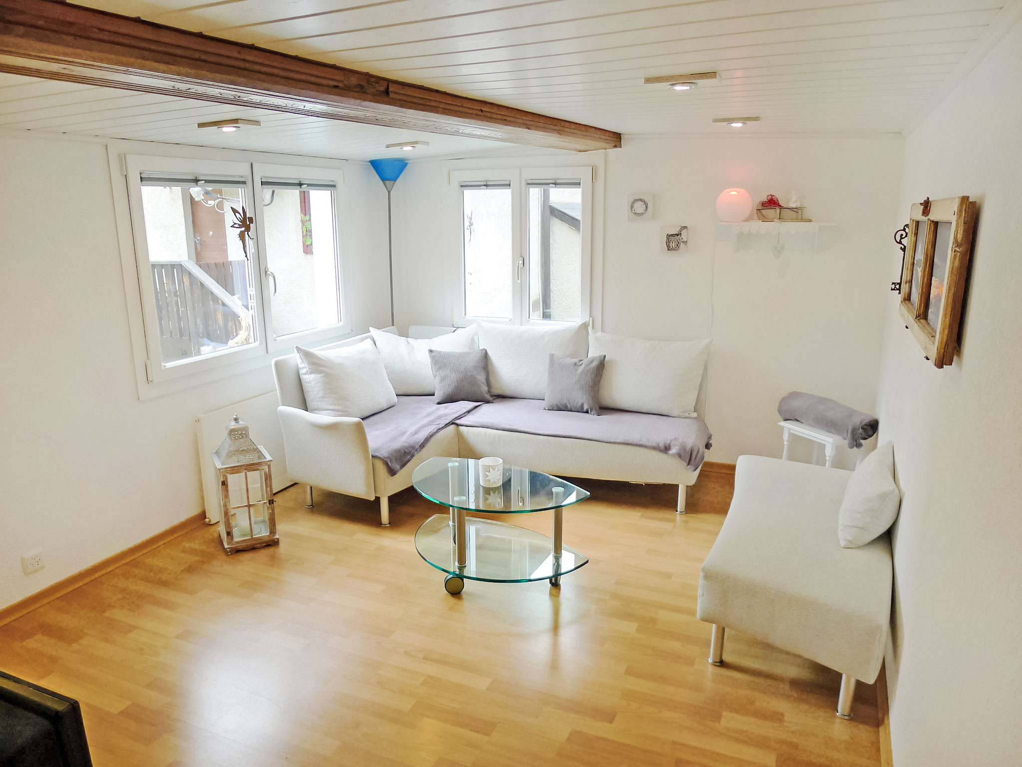 Apt. di 4 locali 50 m2, al pianterreno. Arredamento confortevole e accogliente: soggiorno con TV (via cavo) (schermo piatto). 1 camera matrimoniale piccola. 1 camera piccola con 1 x 2 letti a castello. 1 camera piccola con 1 letto ad armadio. Grande cucina (forno, lavastoviglie, 4 piastre cottura in vetroceramica, macchina da caffè elettrica, set per raclette, set per fondue (formaggio)) con tavolo da pranzo. Doccia/WC. Piccolo patio. Mobili da terrazza. Parziale vista sulle montagne, sul paesaggio e sulla località. A disposizione: Internet (wifi, gratis). Prego notare: appartamento per non fumatori. Massimo 1 animale/cane consentito.