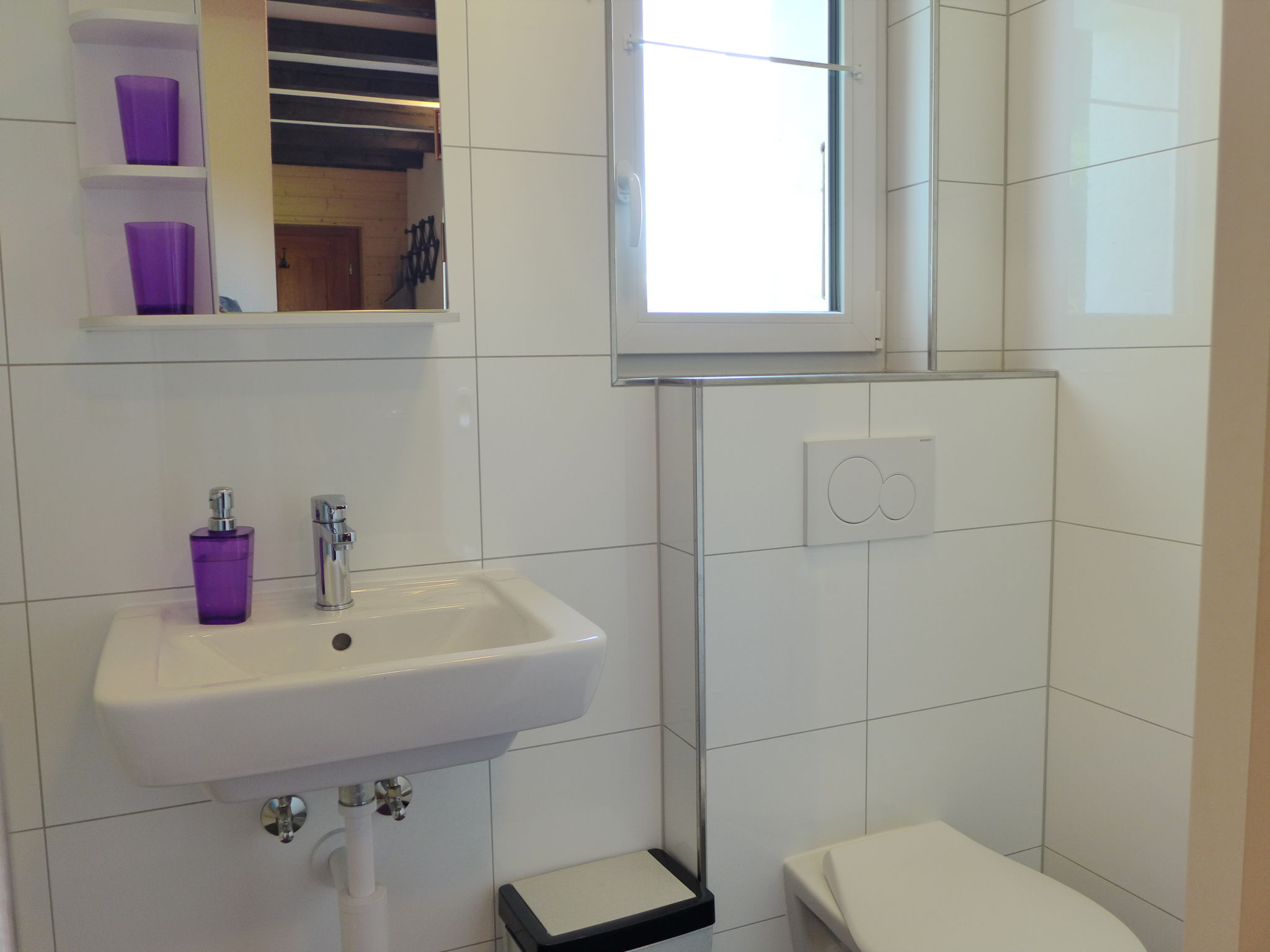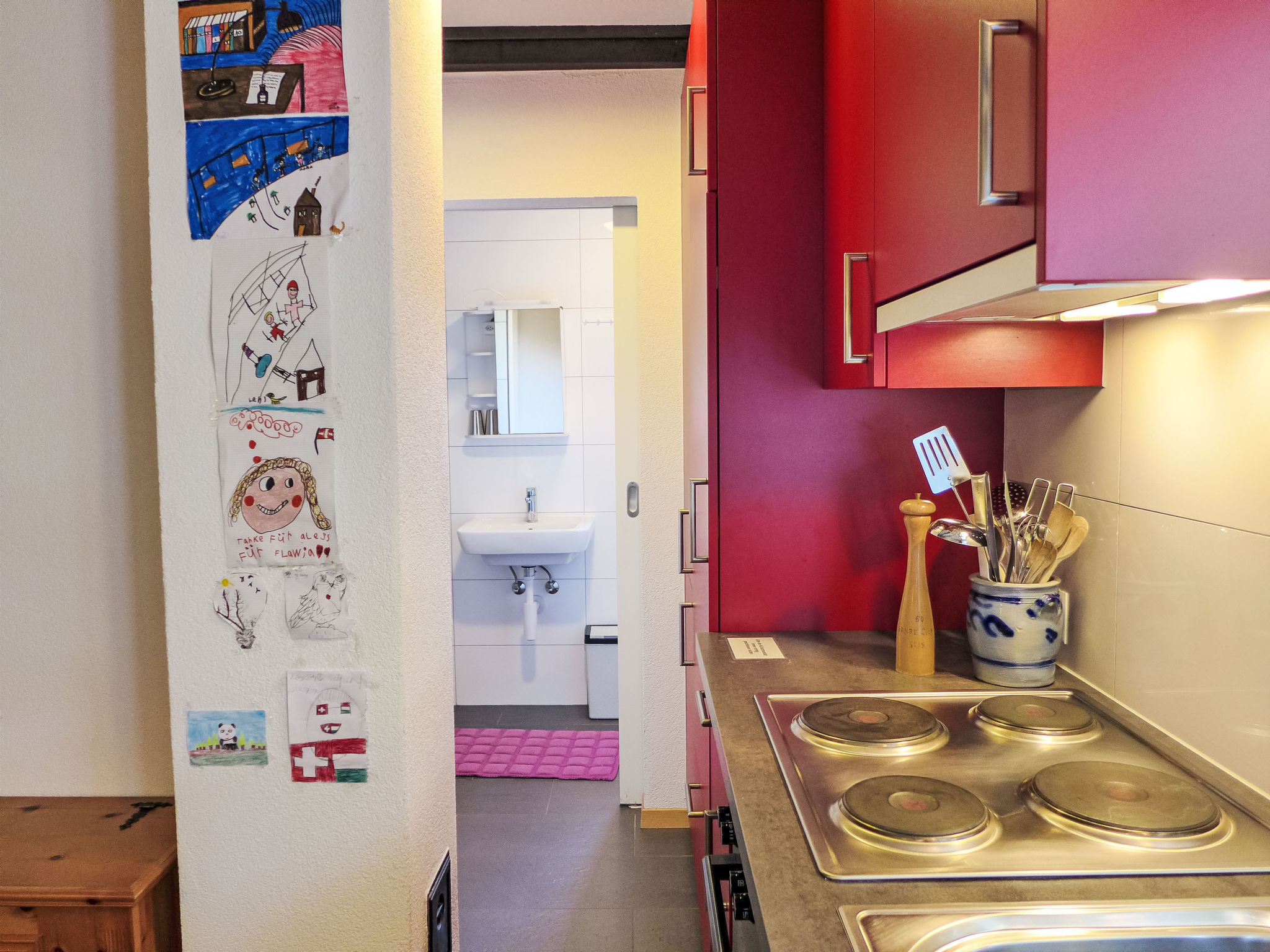 Apt. di 3 locali 45 m2 su 2 piani. Arredamento confortevole e accogliente: grande cucina abitabile (4 punti cottura, forno, lavastoviglie, tostapane, bollitore elettrico, macchina da caffè elettrica, set per raclette, set per fondue (formaggio)) con angolo pranzo e radio. Uscita sul giardino. Doccia/WC. Riscaldamento a pavimento. Piano superiore: soggiorno/camera grande con 1 letto doppio, tv digitale, schermo piatto e DVD. Uscita sul balcone. 1 camera per bambini 6 m2 con 1 x 2 letti a castello (90 cm, lunghezza 200 cm). Patio. Mobili da terrazza, barbecue, sedie a sdraio. Splendida vista sulle montagne, sulla valle e sul paesaggio. A disposizione: lettino per bimbi fino 2 anni (extra). Internet (wifi, gratis). Parcheggio a 100 m. Prego notare: appartamento per non fumatori.