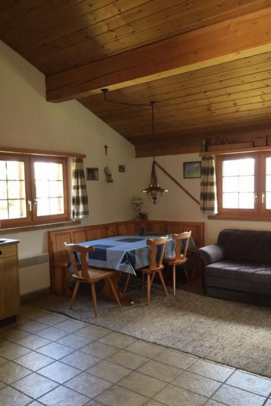 L'interno del Maiensäss è dotato di due accoglienti camere da letto che offrono spazio sufficiente per un massimo di 4 persone (2 letti singoli + 1 letto matrimoniale). L'accogliente cucina con l'invitante panca ad angolo, il tavolo in legno e il divano a 2 posti invita a stare insieme. Con fornelli, frigorifero con scomparto freezer, macchina da caffè Nespresso, set per fonduta, forno per raclette e una vasta gamma di stoviglie e posate, tutti i comfort sono a disposizione per trascorrere piacevoli momenti. Il romantico caminetto rende le serate più accoglienti.