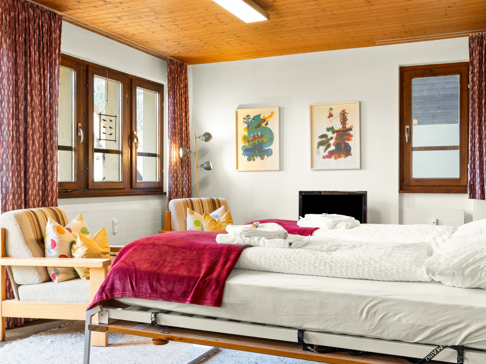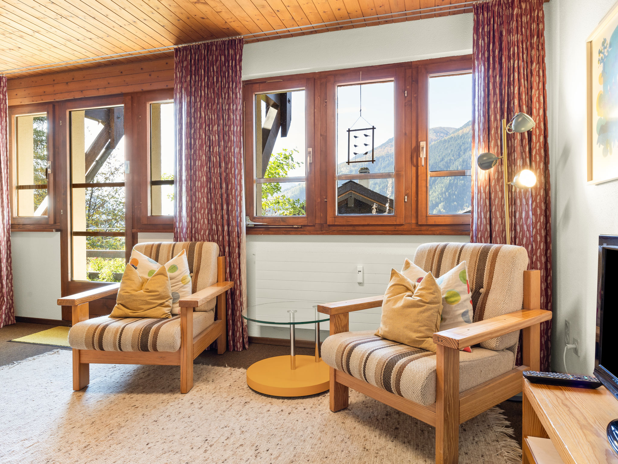 Villaggio turistico "Aragon", 1'200 m s.l.m., accogliente, rustico. 21 case nel resort. In periferia, a 500 m dal centro di Ernen, posizione tranquilla, soleggiata sul pendio, a 4 km dall'area sciistica. In comune: tennis tavolo, barbecue, camino, spazio giochi per bambini. Nella casa: deposito biciclette, deposito sci, riscaldamento centralizzato, lavatrice, asciugatrice (in comune, extra). Accesso fino della proprietà (strada di montagna). In inverno per favore portare le catene da neve, in inverno consigliato 4x4. Autorimessa. Negozio 500 m, fermata bus 100 m. Campo da golf (18 buche) 25 km, tennis 4 km, tennis coperto 4 km, centro sportivo 4 km, telecabina 4 km, impianti di risalita 4 km, noleggio sci 4 km, fermata ski bus 100 m, scuola di sci 4 km, pista di fondo 4 km. Rinomate località sciistiche: Aletsch Arena 4 km, Bellwald 12 km. Sentieri escursionistici: Landschaftspark Binntal 10 km. Il nuovo ponte sospeso collega le due aree escursionistiche di Ernen e Bellwald (al Gommer Höhenweg) e il collegamento alla pista ciclabile nazionale numero 1 (percorso del Rodano dal lago glaciale al lago di Ginevra). Il ponte tra Ernen e Mühlebach fornisce un collegamento diretto con la Matterhorn Gotthard Bahn.