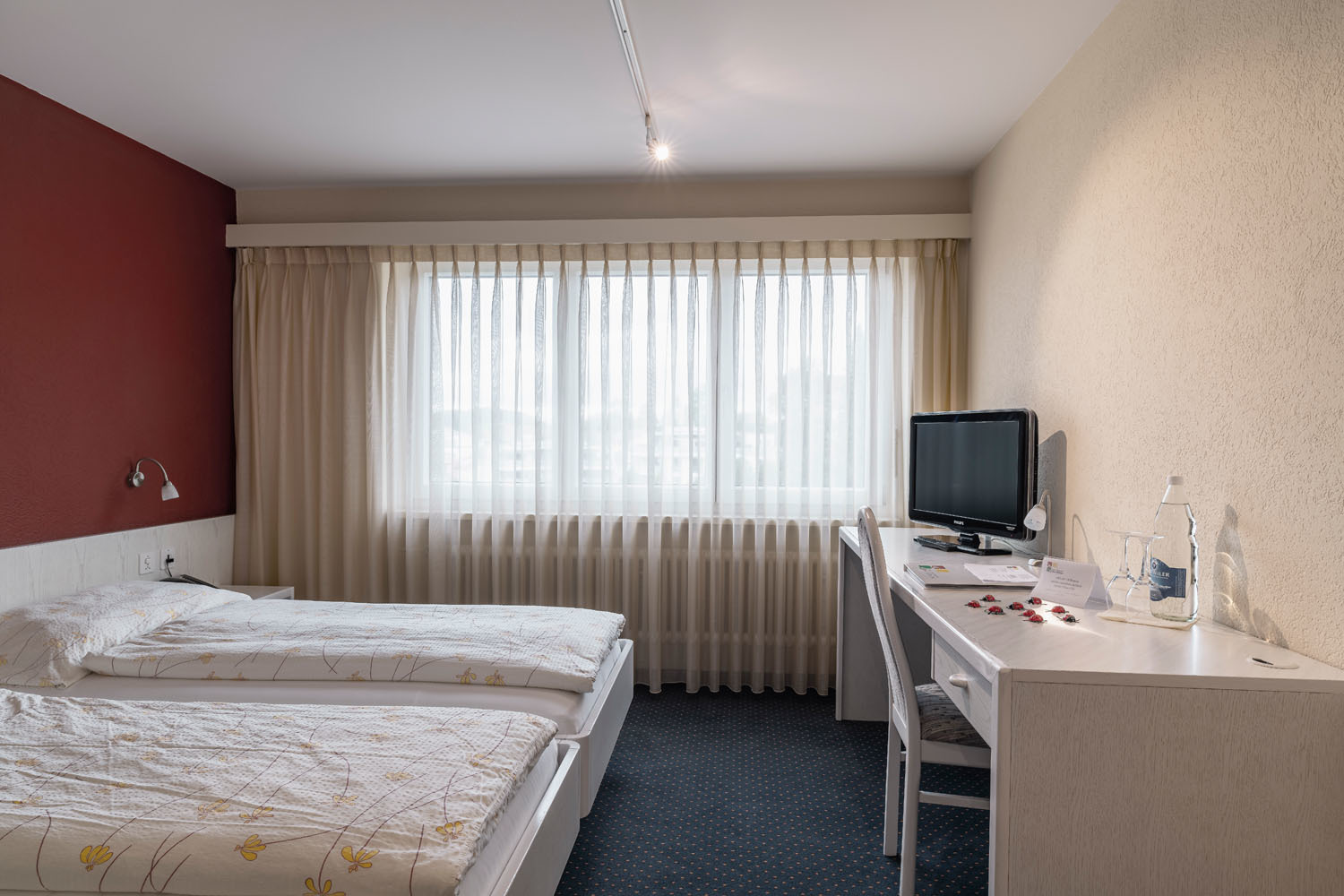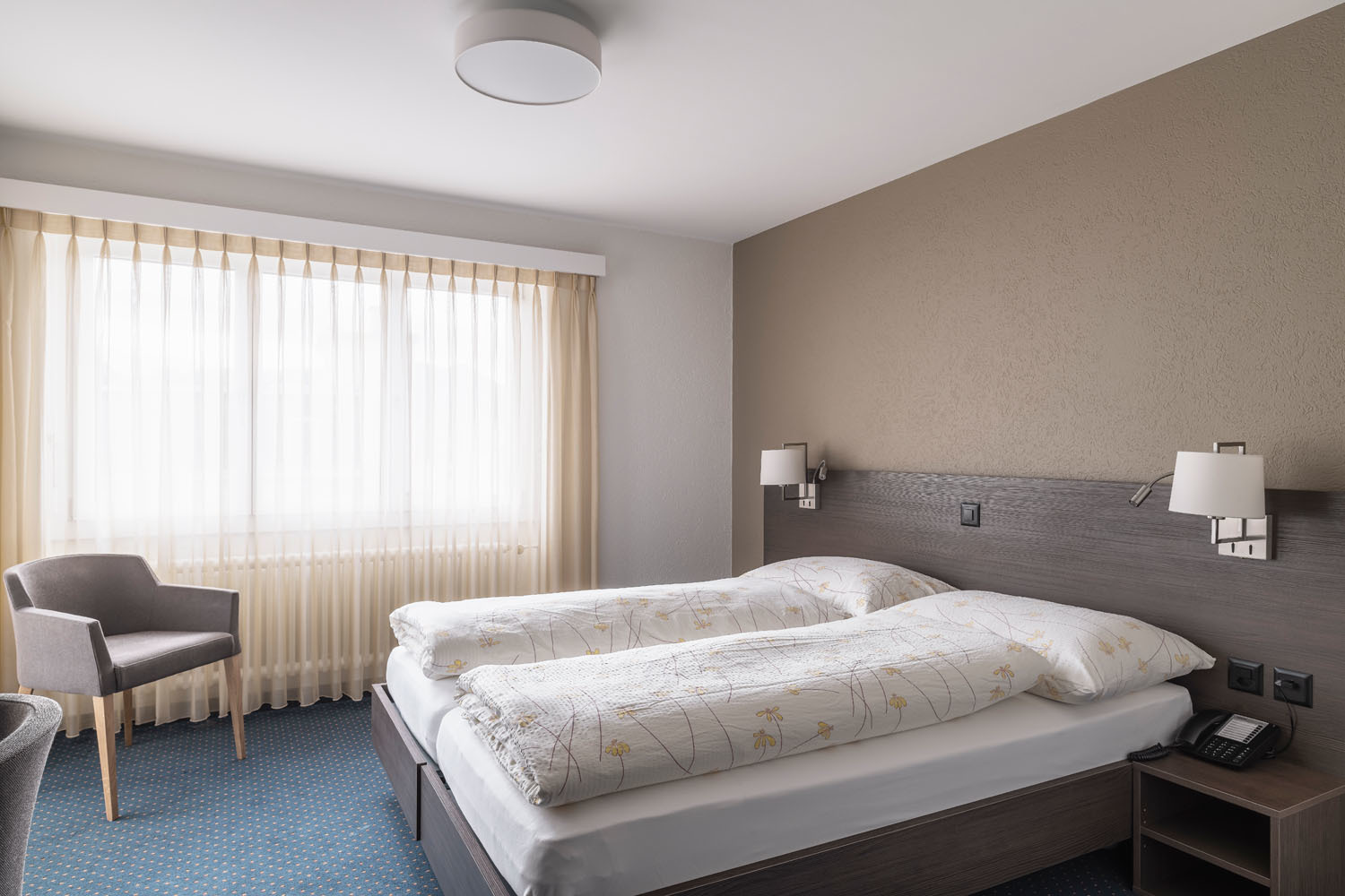 L’Hotel Drei Könige colpisce con le sue camere modernamente arredate e un’area sauna con vista sui tetti di Einsiedeln.