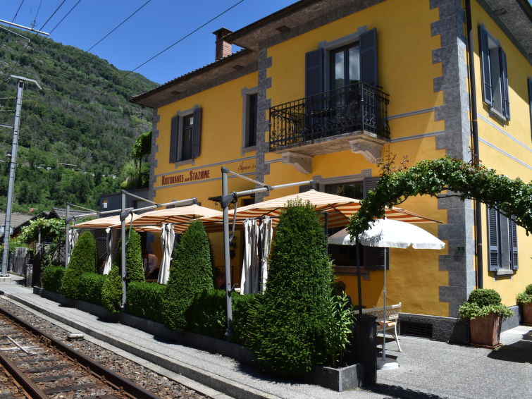 Intragna 10 km da Locarno: Condominio "Capriccio", 340 m s.l.m., moderno, confortevole su 2 piani. 3 appartamenti nella proprietà. Nella località Intragna, nel quartiere Centovalli, posizione tranquilla, soleggiata, in una strada senza uscita. In comune: bellissimo giardino per rilassarsi, piscina ad angolo (2 x 10 m, disponibilità stagionale: 20.Mag. - 20.Ott.) con scaletta. Patio, pergola, terrazza, mobili da giardino. Nella struttura: reception, ristorante, sala per colazione, riscaldamento centralizzato. Colazione disponibile su richiesta (extra). Accesso 30 m di strada fino alla casa. Parcheggio nella proprietà. Ristorante 10 m, panetteria 500 m, noleggio biciclette 10 m, fermata bus "Intragna, Stazione" 30 m, stazione ferroviaria "Centrovalli Expres FART Intragna" 50 m. Sentieri per passeggiate vicino alla casa 5 m. Attrazioni nelle vicinanze: Ascona, Locarno, Ronco sopra Ascona, Isole di Brissago, Falconeria, Locarno, Madonna del Sasso, Orselina, Mercato Cannobio IT, Mercato Luino IT. Laghi famosi: Lago Maggiore, Lago di Lugano, Lago di Como. Sentieri escursionistici: Centovalli, Vallemaggia, Valle Verzasca, Cardada, Monte Tamaro- Splash &SPA. Prego notare: dotazioni per bimbi. Ulteriori alloggi prenotabili. La casa CH6655.55 è situata sullo stesso terreno.