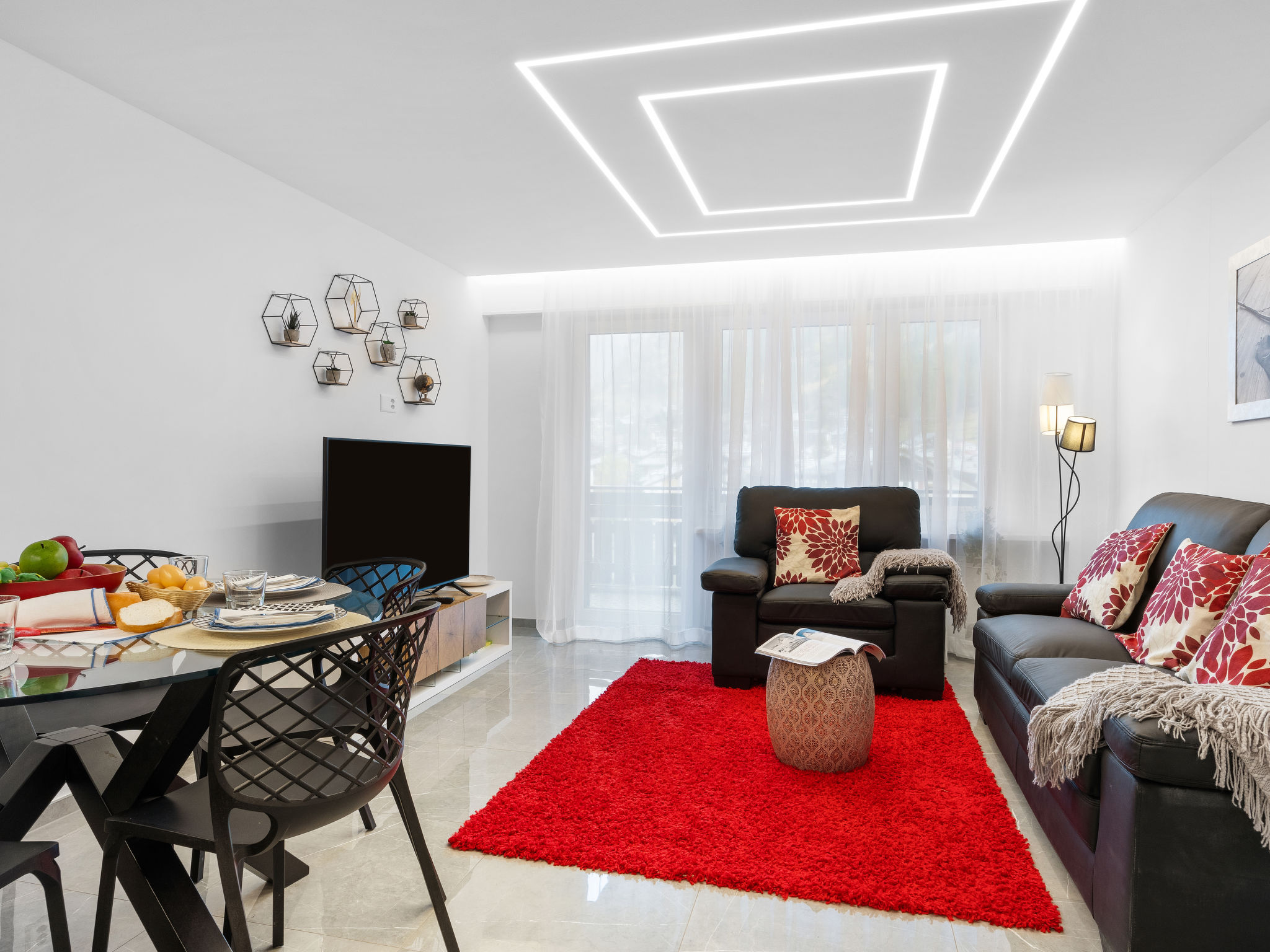 "Primavista", apt. di 3 locali 90 m2 al 4. piano. Luminoso, completamente restaurato nel 2024, arredamento gradevole e elegante: soggiorno con TV. Uscita sul balcone, esposizione sud. 1 camera matrimoniale con 1 letto doppio (1 x 160 cm, lunghezza 200 cm). 1 camera con 2 letti (90 cm, lunghezza 200 cm). Camera di passaggio con 2 letti (90 cm, lunghezza 200 cm). Cucina aperta (forno, lavastoviglie, 4 piastre cottura in vetroceramica, tostapane, bollitore elettrico, congelatore, macchina da caffè elettrica). Vasca/WC, doccia/WC. Riscaldamento. Grande balcone, esposizione sud. Mobili da balcone. Splendida vista sul cervino. A disposizione: Internet (wifi). Prego notare: appartamento per non fumatori.