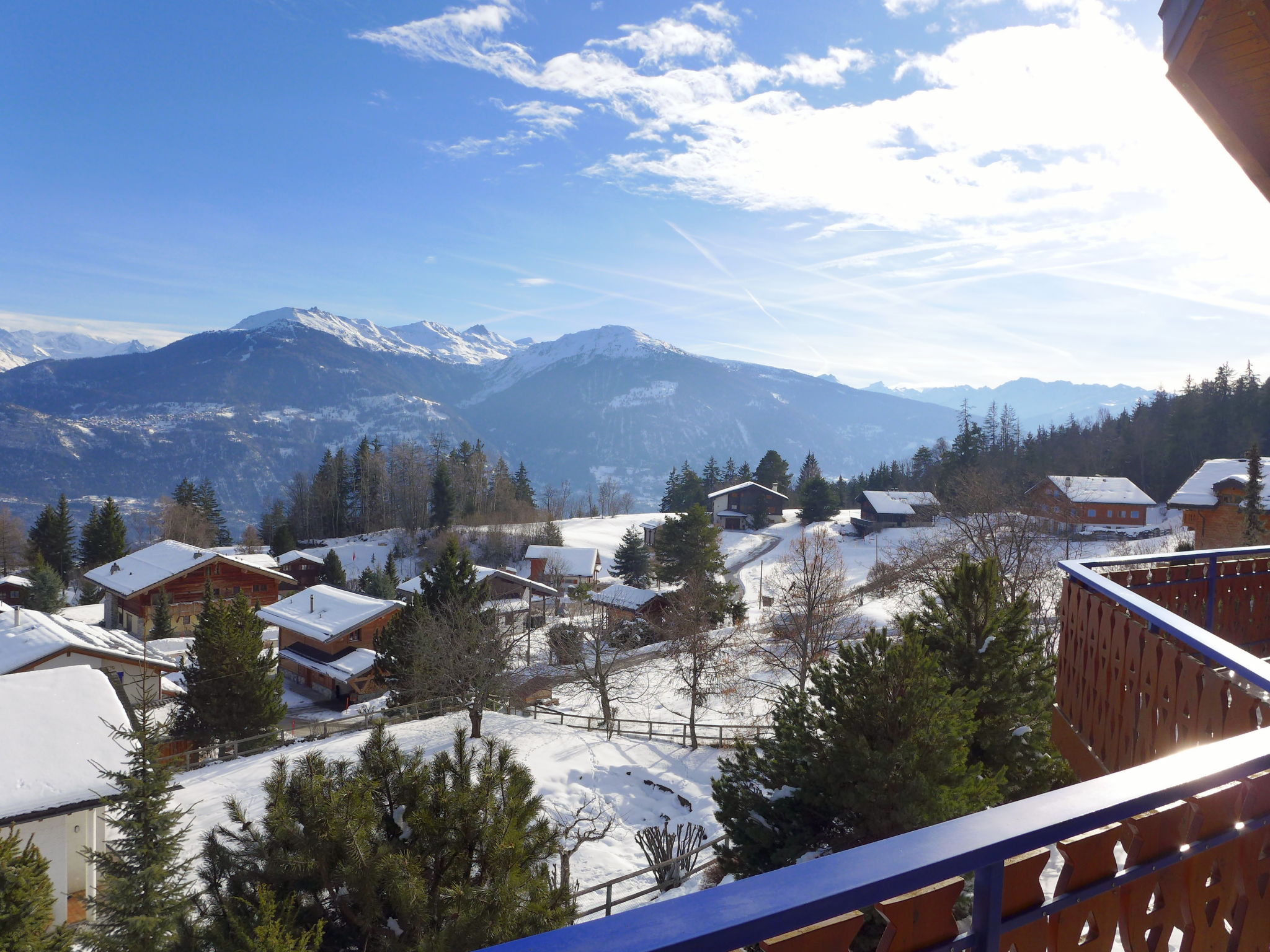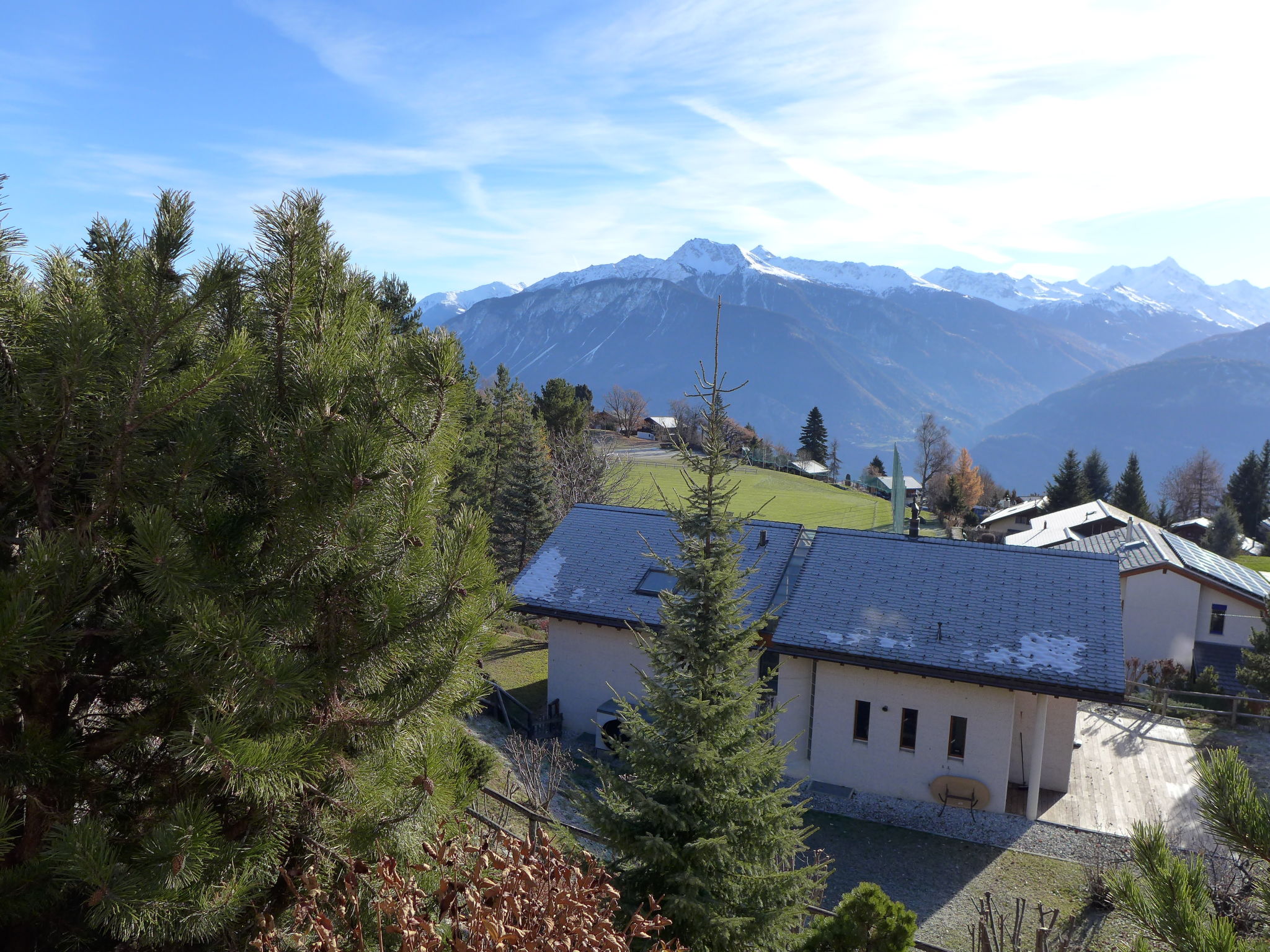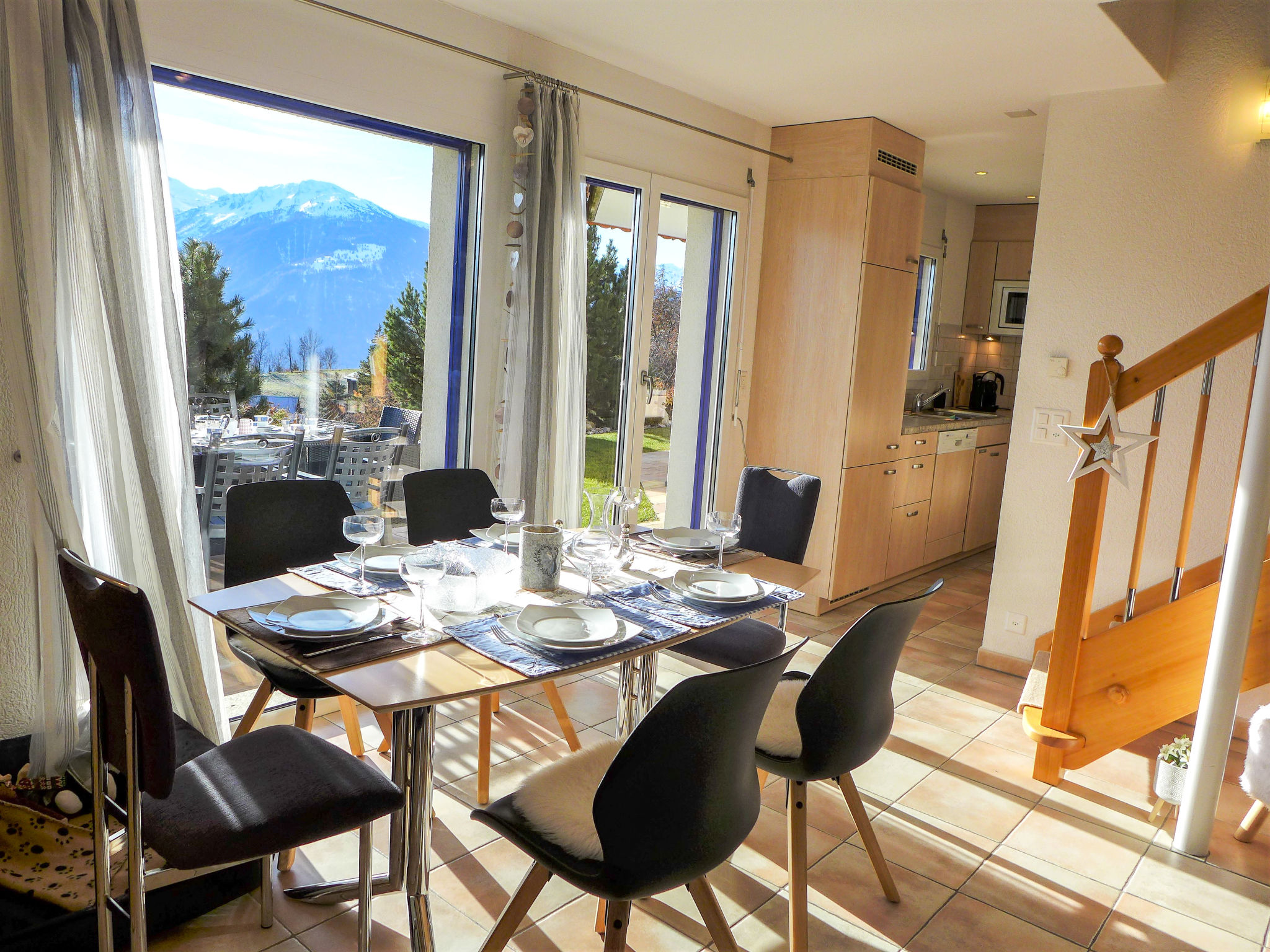 "Maison N°35", casa a schiera 4 locali 75 m2 su 2 piani. Oggetto adatto a 4 adulti + 2 bambini. Spazioso e luminoso, arredamento confortevole e gradevole: soggiorno/sala da pranzo aperto con TV (via cavo), schermo piatto, radio e impianto stereo. Uscita sulla terrazza. Cucina (forno, lavastoviglie, 4 piastre cottura in vetroceramica, tostapane, bollitore elettrico, forno a microonde, congelatore, macchina da caffè elettrica, capsule per la macchina da caffè (Nespresso) extra, set per raclette, set per fondue (chinoise, formaggio)). WC separato. Piano superiore: 1 camera altezza del soffitto 300 - 400 cm con 1 letto alla francese (180 cm, lunghezza 200 cm), TV. Uscita sul balcone. 1 camera piccola con 1 letto estraibile (2 pers. 2 x 90 cm, lunghezza 190 cm). 1 camera con 1 letto estraibile (2 pers. 2 x 90 cm, lunghezza 190 cm). Uscita sul balcone. Doccia/bidet/WC. Grande balcone, esposizione sud, grande terrazza 10 m2, esposizione sud. Mobili da terrazza, barbecue elettrico (portatile), sedie a sdraio (2), ripostiglio. Magnifica vista panoramica sulle montagne e sulla valle. A disposizione: lavatrice, asciugatrice, asciugacapelli. Internet (wifi, gratis). Parcheggio (1 Auto), garage (1 Auto), altezza 200 cm, larghezza 220 cm. Prego notare: adatto alle famiglie. Casa per non fumatori.