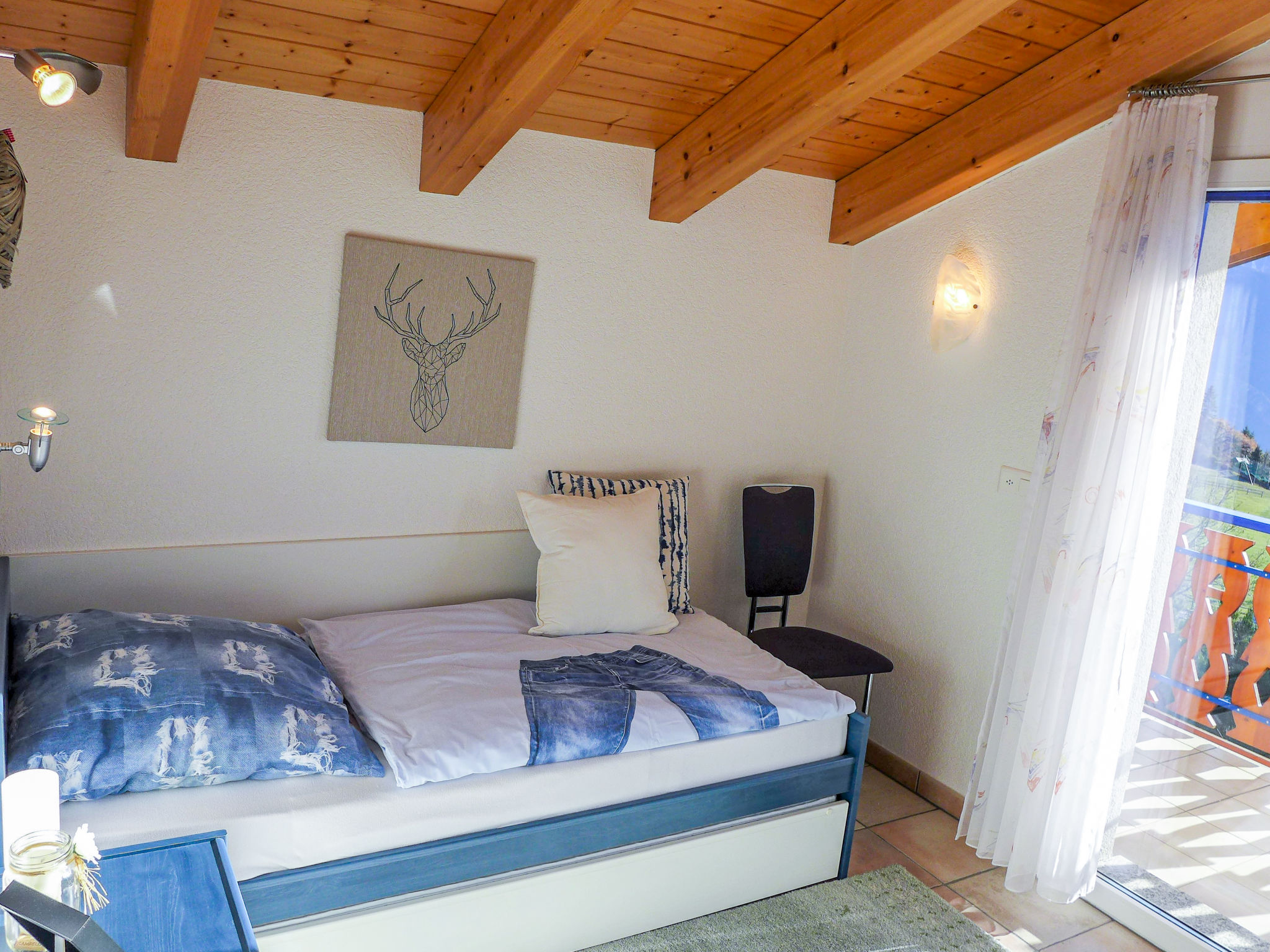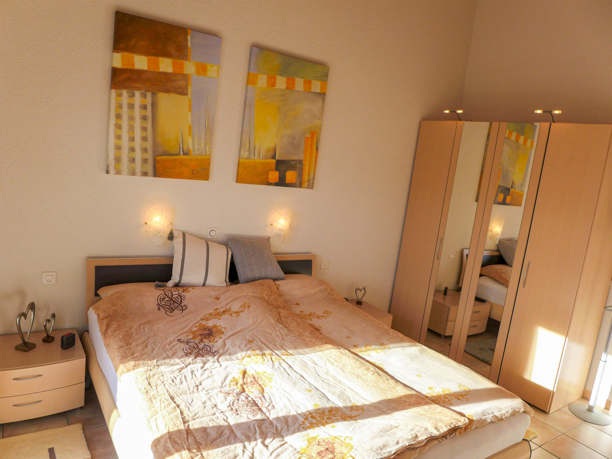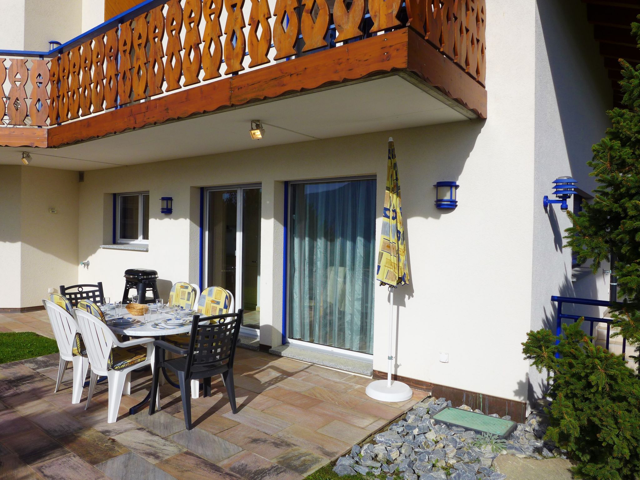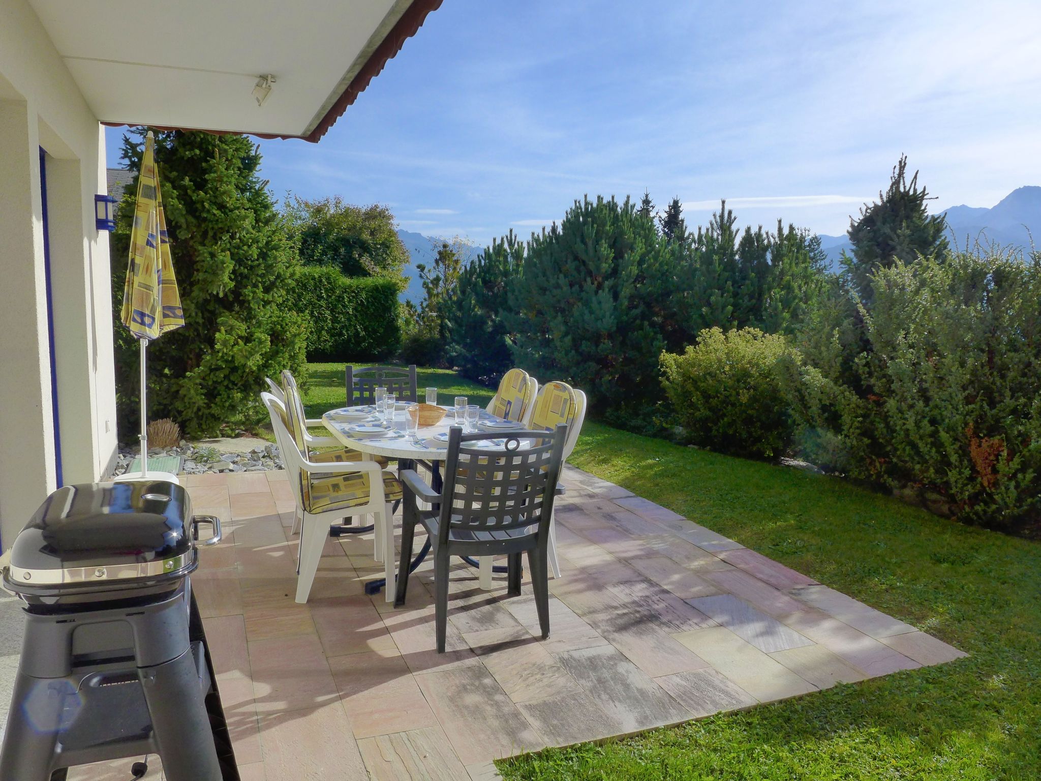 "Maison N°35", casa a schiera 4 locali 75 m2 su 2 piani. Oggetto adatto a 4 adulti + 2 bambini. Spazioso e luminoso, arredamento confortevole e gradevole: soggiorno/sala da pranzo aperto con TV (via cavo), schermo piatto, radio e impianto stereo. Uscita sulla terrazza. Cucina (forno, lavastoviglie, 4 piastre cottura in vetroceramica, tostapane, bollitore elettrico, forno a microonde, congelatore, macchina da caffè elettrica, capsule per la macchina da caffè (Nespresso) extra, set per raclette, set per fondue (chinoise, formaggio)). WC separato. Piano superiore: 1 camera altezza del soffitto 300 - 400 cm con 1 letto alla francese (180 cm, lunghezza 200 cm), TV. Uscita sul balcone. 1 camera piccola con 1 letto estraibile (2 pers. 2 x 90 cm, lunghezza 190 cm). 1 camera con 1 letto estraibile (2 pers. 2 x 90 cm, lunghezza 190 cm). Uscita sul balcone. Doccia/bidet/WC. Grande balcone, esposizione sud, grande terrazza 10 m2, esposizione sud. Mobili da terrazza, barbecue elettrico (portatile), sedie a sdraio (2), ripostiglio. Magnifica vista panoramica sulle montagne e sulla valle. A disposizione: lavatrice, asciugatrice, asciugacapelli. Internet (wifi, gratis). Parcheggio (1 Auto), garage (1 Auto), altezza 200 cm, larghezza 220 cm. Prego notare: adatto alle famiglie. Casa per non fumatori.