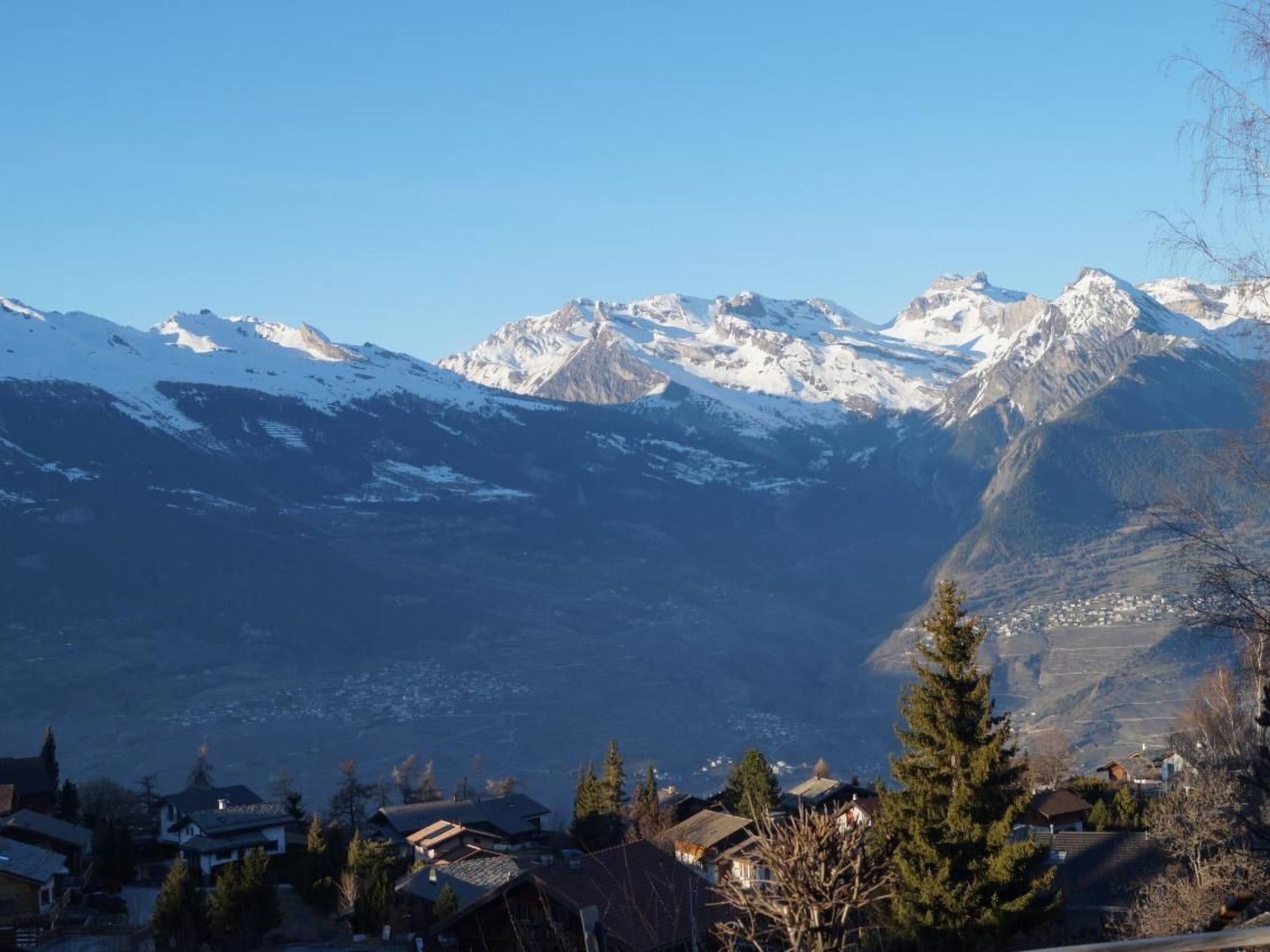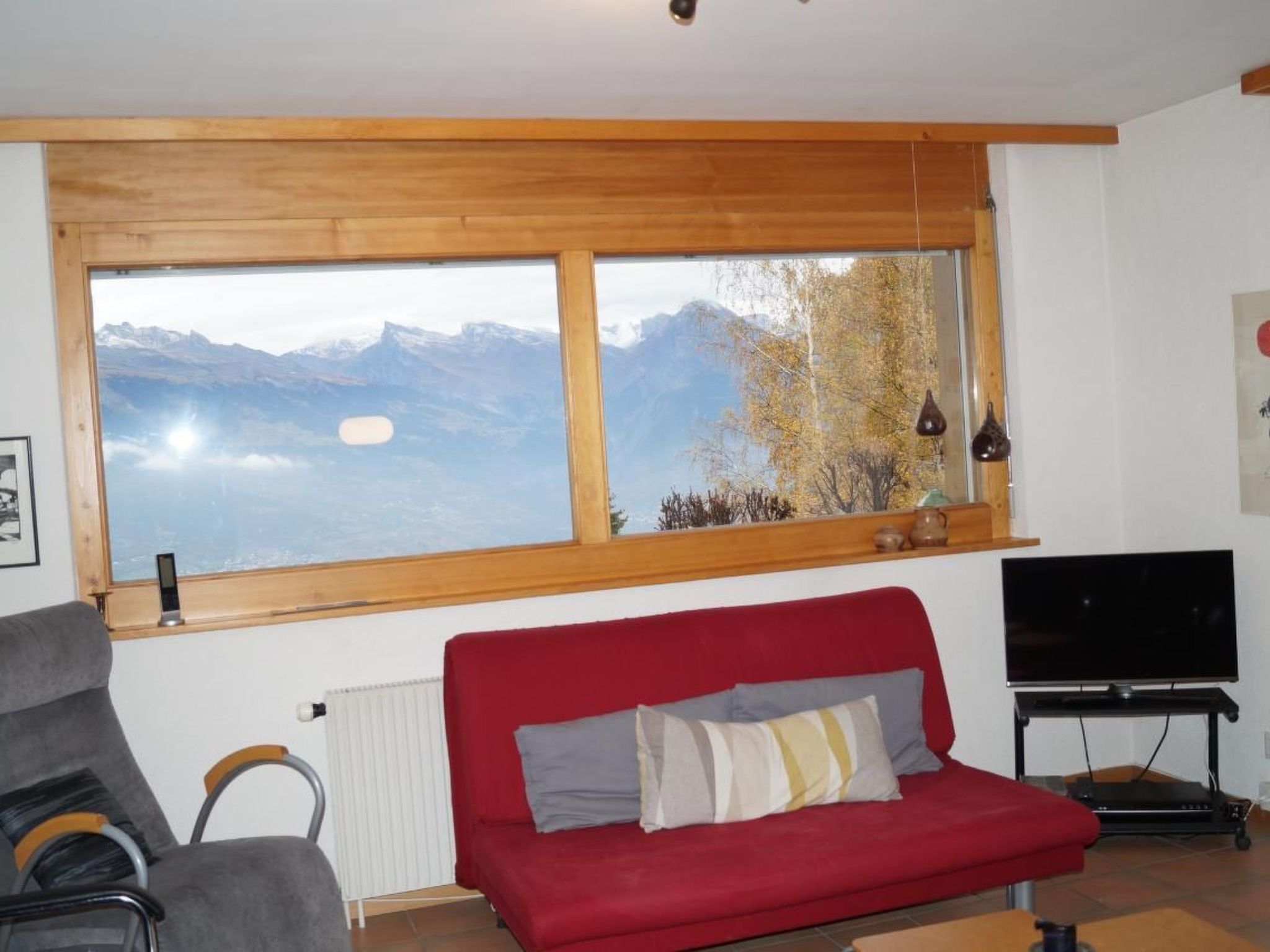 Discover our charming flat, ideal for families and friends who want to experience the beauty of the Valais Alps together. With spacious sleeping accommodation for up to 7 people, including a bedroom with two beds, another with three beds (including a bunk bed) and a fold-out sofa bed for two in the living area, our holiday flat offers comfort and cosiness for your stay.Inside you will find a fully equipped kitchen with oven, hob, fridge, coffee machine and dishwasher - perfect for cooking up a hearty meal together after a day in the mountains. There is also a raclette oven and a fondue caquelon at your disposal. The open-plan living area is equipped with an extendable dining table, a sofa bed, additional seating, a TV and a radio - ideal for spending cosy evenings together.The charming outdoor area of the flat offers a sunny balcony with a breathtaking view of the northern side of the Valais Alps. An adjoining lawn on the east side, with barbecue and seating, invites you to relax in the fresh mountain air. For active guests, four mountain bikes with helmets are available in the garage for excursions in the surrounding area.Our flat is in the perfect location to take advantage of the region's wide range of activities. The centre with its shops, cafés and restaurants is just a five-minute walk away. Sports enthusiasts will get their money's worth at the nearby sports centre, which offers ice skating, tennis and swimming, among other things. The route to the village and the proximity to one of the largest ski areas in Switzerland, "4 Vallées", as well as a wide range of leisure activities such as hiking, wellness and a children's playground, guarantee an unforgettable experience.Don't miss this opportunity to enjoy the perfect holiday destination for nature lovers, sports enthusiasts and relaxation seekers alike. With its impressive location, comprehensive facilities and proximity to numerous leisure activities, our holiday flat is the ideal starting point for discovering the diversity of the Valais Alps. Book your stay with us and experience unforgettable days full of adventure and relaxation.