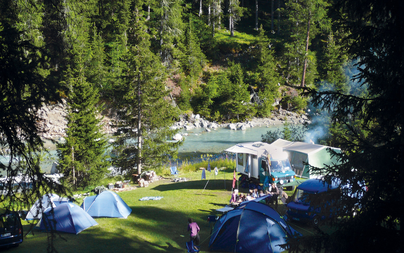 Chi è alla ricerca di un contatto autentico con la natura, al Camping Chapella è nel posto giusto. Il campeggio si trova a 1660 metri di altitudine, immerso in un paesaggio selvaggio e incontaminato direttamente sul fiume Inn, a pochi passi dal Parco Nazionale Svizzero.