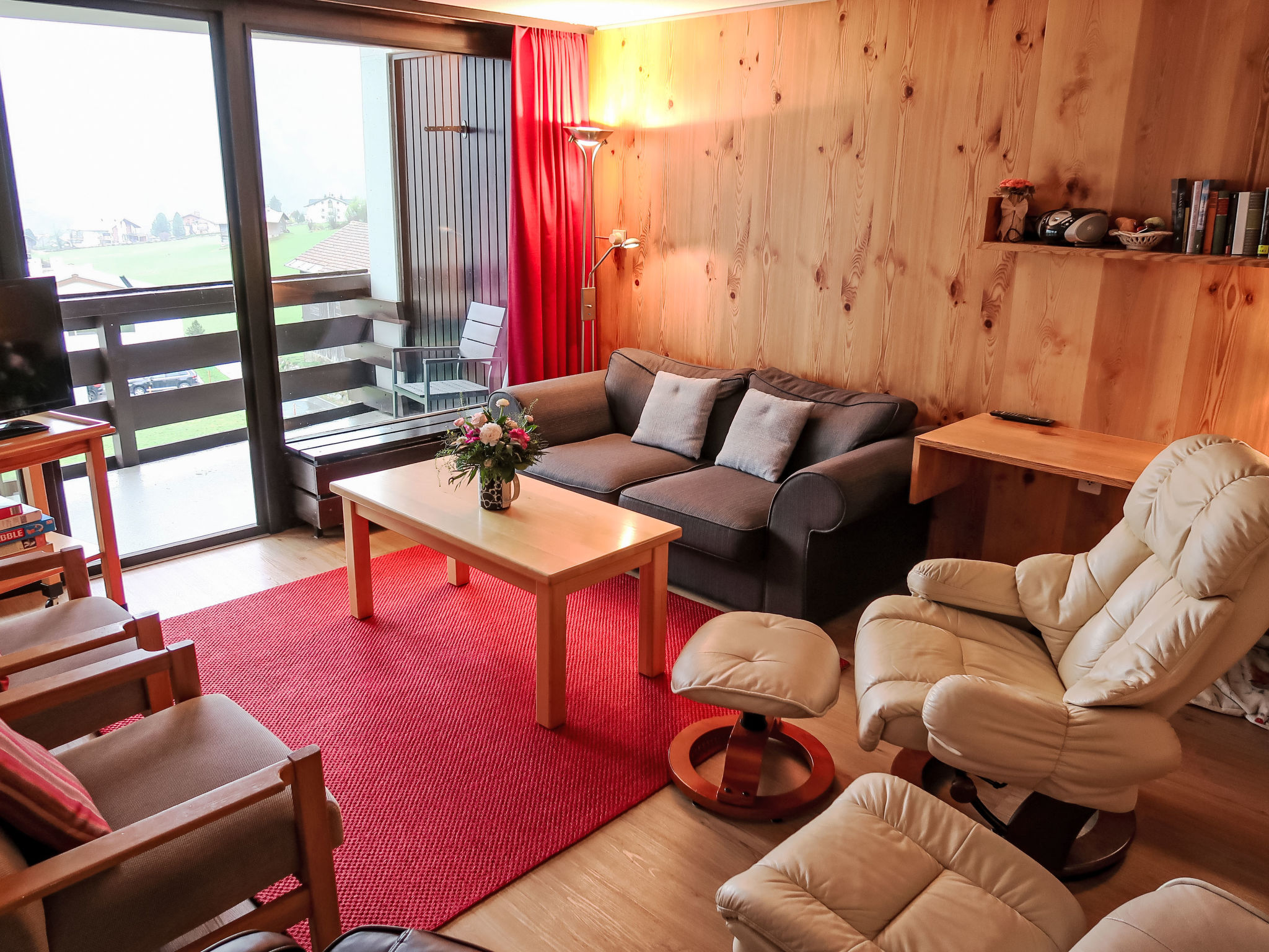 "Apt B 048", apt. di 2 locali 90 m2 al 4. piano. Arredamento accogliente: soggiorno/sala da pranzo con 2 letti ad armadio e TV (satellite) (schermo piatto). Uscita sul balcone. Angolo notte con tenda con 1 letto e 1 x 2 letti a castello. 1 camera con 2 letti. Cucina (forno, lavastoviglie, 4 piastre cottura in vetroceramica, forno a microonde, macchina da caffè elettrica). Doccia/WC. Balcone, esposizione sud. Mobili da balcone. Bella vista sulle montagne e sul paesaggio. A disposizione: lettino per bimbi. Internet (wifi, gratis). Prego notare: appartamento per non fumatori. Uno o più posti letto adibiti a zona notte si trovano in area aperta o di passaggio (come soppalco, corridoio, alcova e simili).