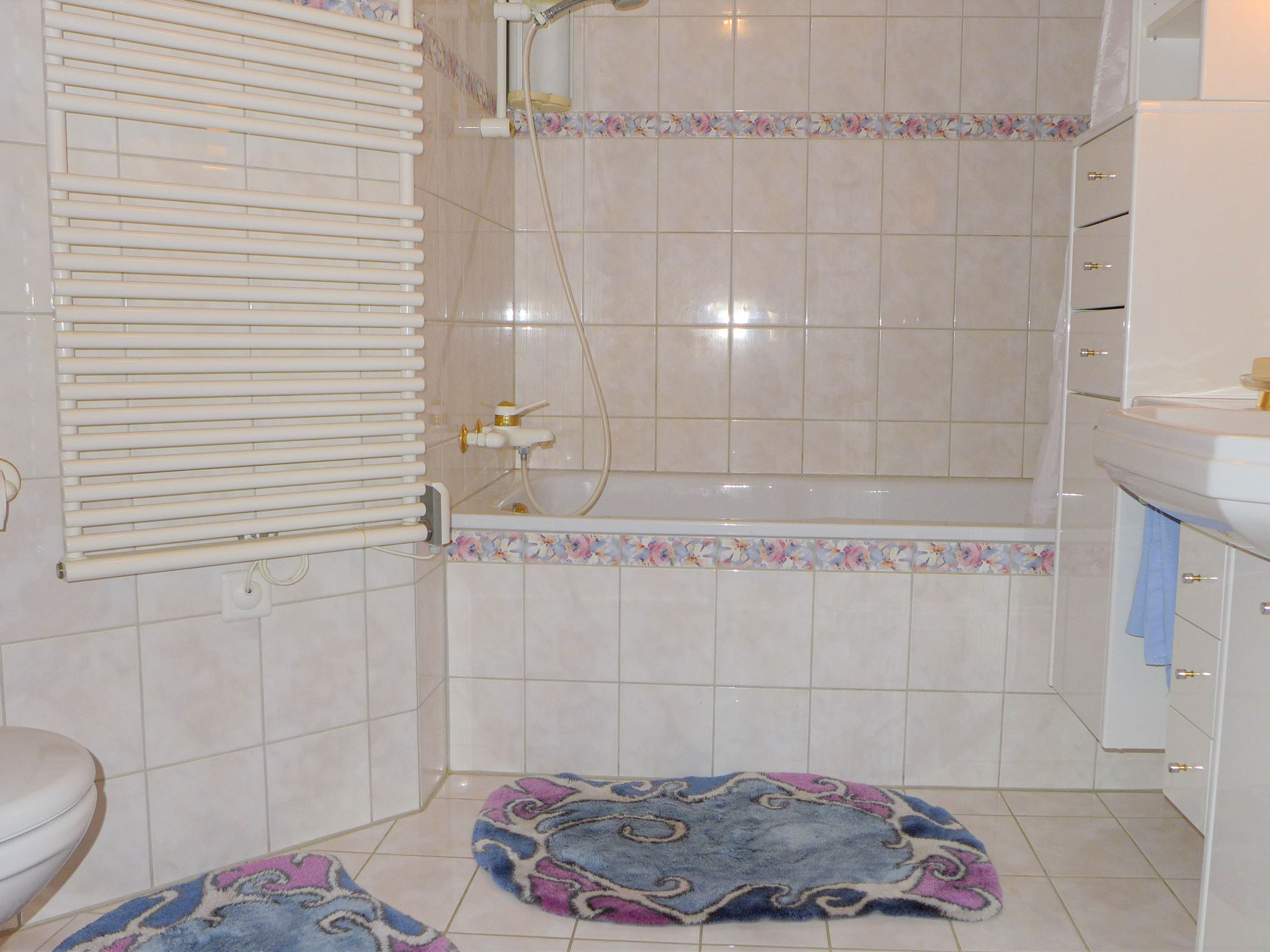 Apt. di 4 locali 126 m2 al 2. piano, esposizione sud. Luminoso, restaurato nel 2021, arredamento confortevole e gradevole: soggiorno con stufa svedese e TV. Uscita sul balcone, esposizione sud. 1 camera matrimoniale con 1 letto doppio (2 x 90 cm, lunghezza 200 cm), vasca/WC, TV e CD. Uscita sul balcone, esposizione est. 1 camera matrimoniale con 1 letto doppio (1 x 160 cm, lunghezza 200 cm). 1 camera con 1 letto doppio (2 x 90 cm, lunghezza 200 cm). Cucina aperta (forno, lavastoviglie, 4 piastre ad induzione, bollitore elettrico, forno a microonde, congelatore, macchina da caffè elettrica). Doccia/WC. Riscaldamento. Pavimenti in pietra. Balcone, esposizione sud, piccolo balcone, esposizione est. Mobili da balcone. Splendida vista sul Cervino. A disposizione: Internet (wifi, gratis). Prego notare: appartamento per non fumatori.