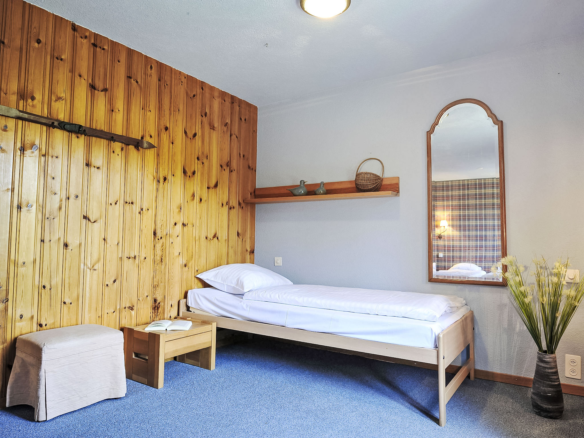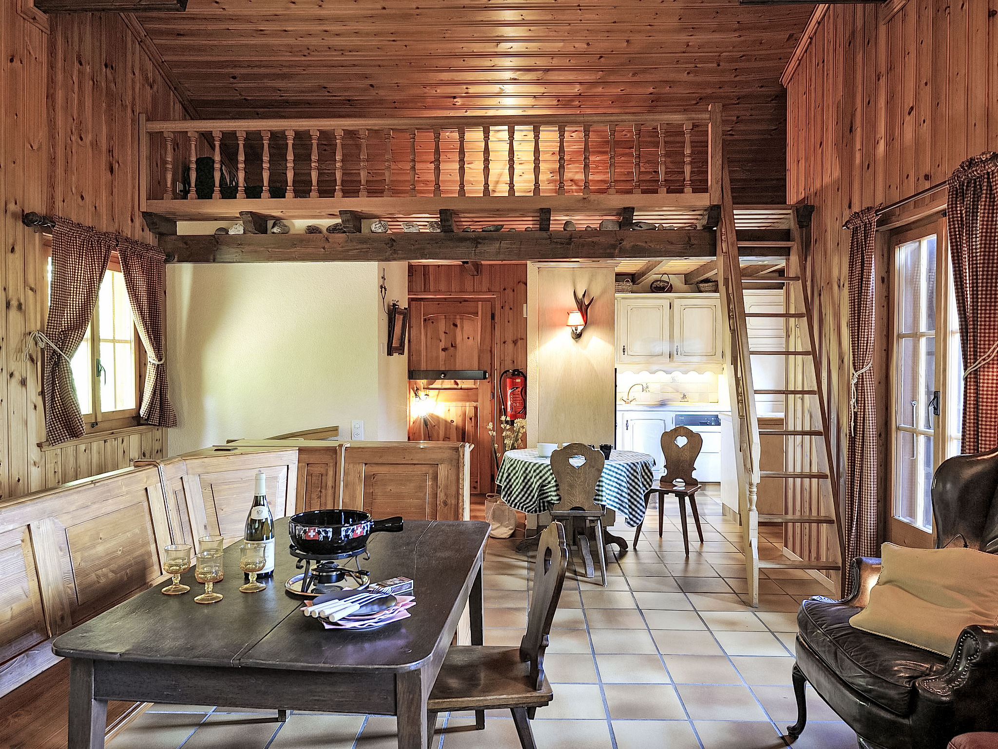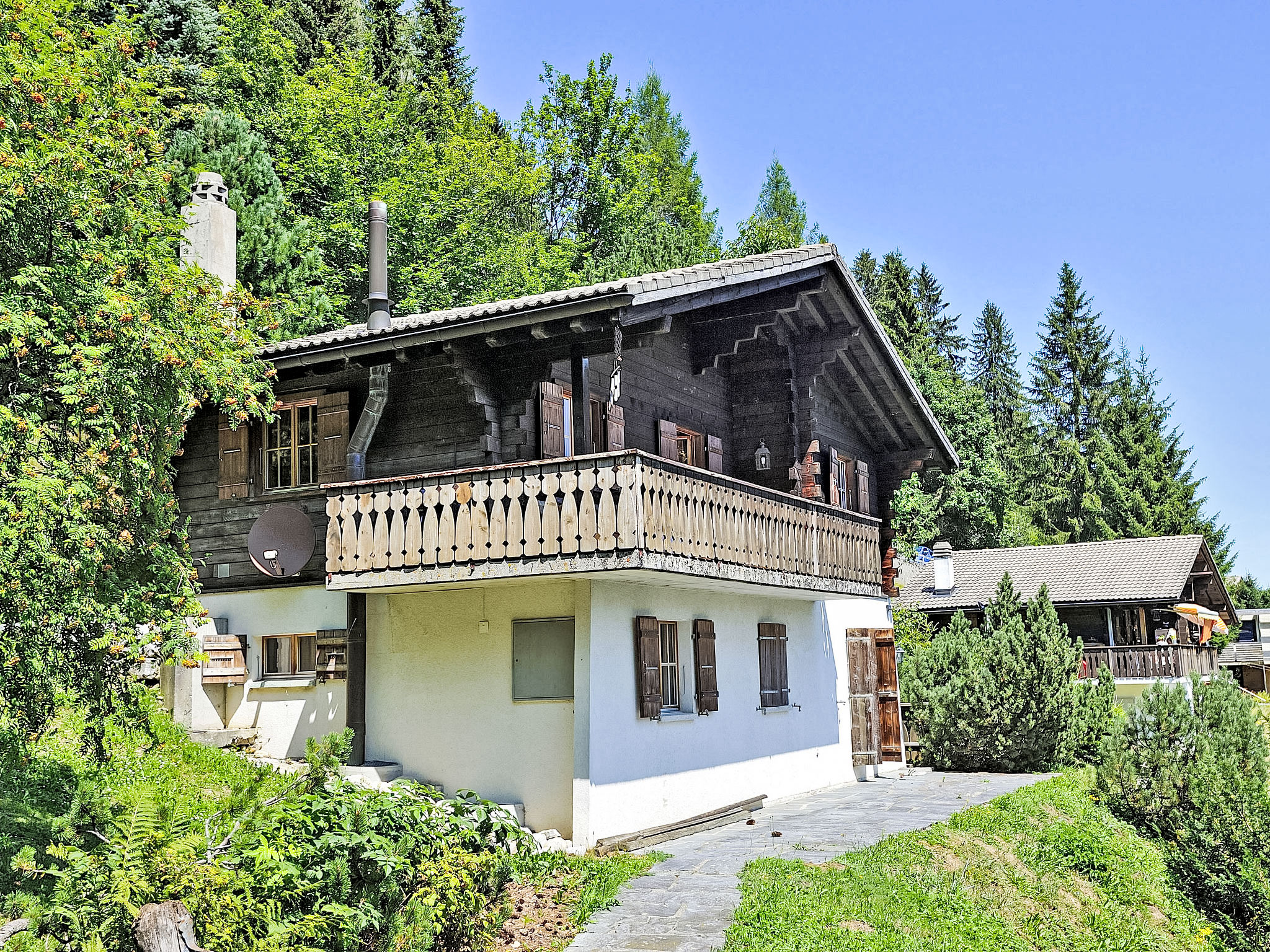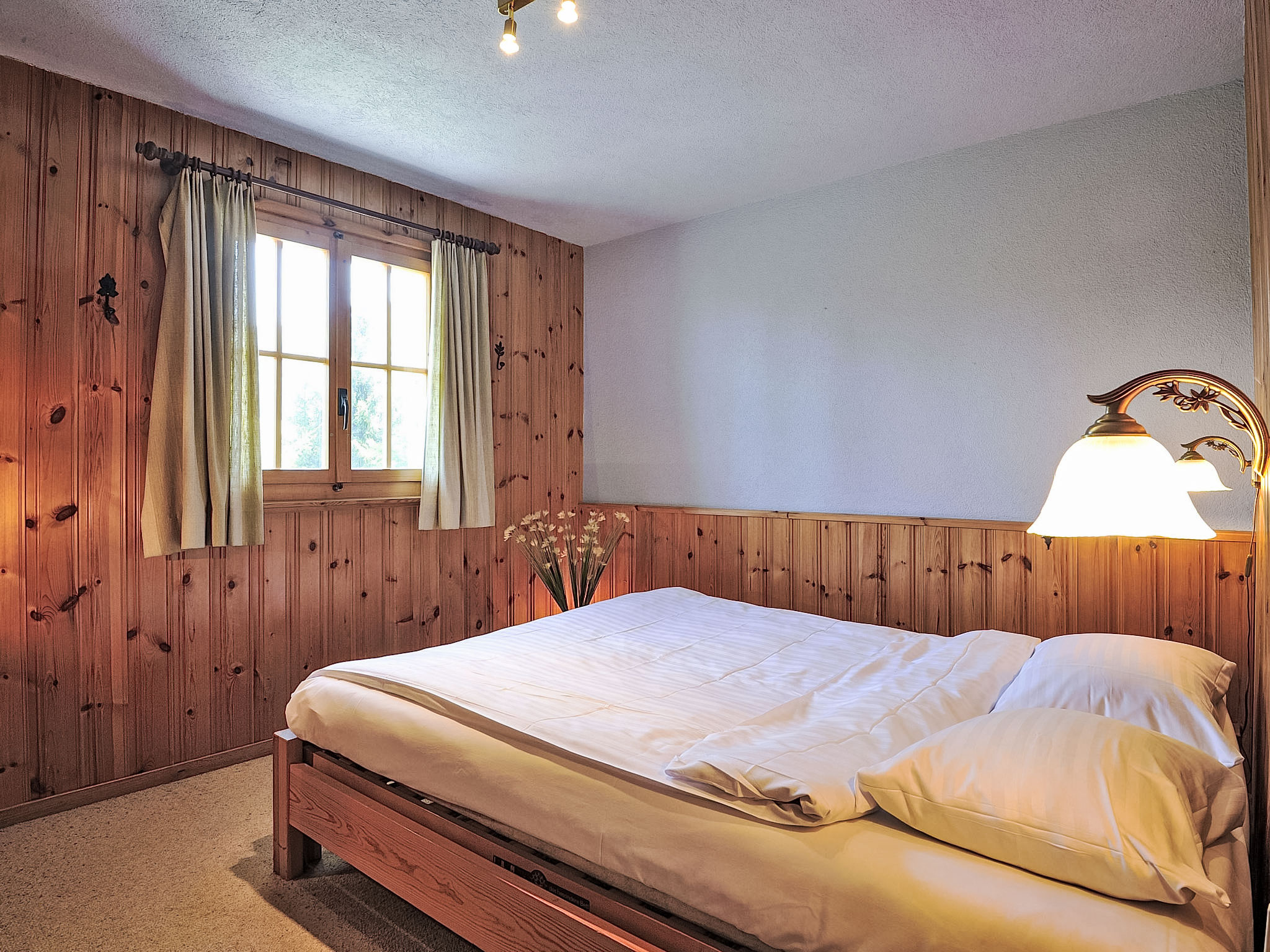 "Chalet le Chamois", chalet 4 locali 110 m2 su 3 piani. Arredamento confortevole e accogliente: soggiorno/sala da pranzo con TV (satellite) e stufa a kerosene. Uscita sulla terrazza. Cucina aperta (forno, lavastoviglie, 4 piastre cottura in vetroceramica, forno a microonde, set per fondue (formaggio)). WC separato. Piano inferiore: 1 camera con 1 letto alla francese (150 cm, lunghezza 190 cm). 1 camera con 3 letti (90 cm, lunghezza 190 cm). Uscita sul giardino. 1 camera con 1 letto (90 cm, lunghezza 180 cm). Vasca/doccia/WC. Grande terrazza, grande giardino. Mobili da terrazza, barbecue. Magnifica vista panoramica sulle montagne e sul paesaggio. A disposizione: Internet (wifi, gratis). Prego notare: appartamento per non fumatori. Massimo 2 animali/cani consentiti.