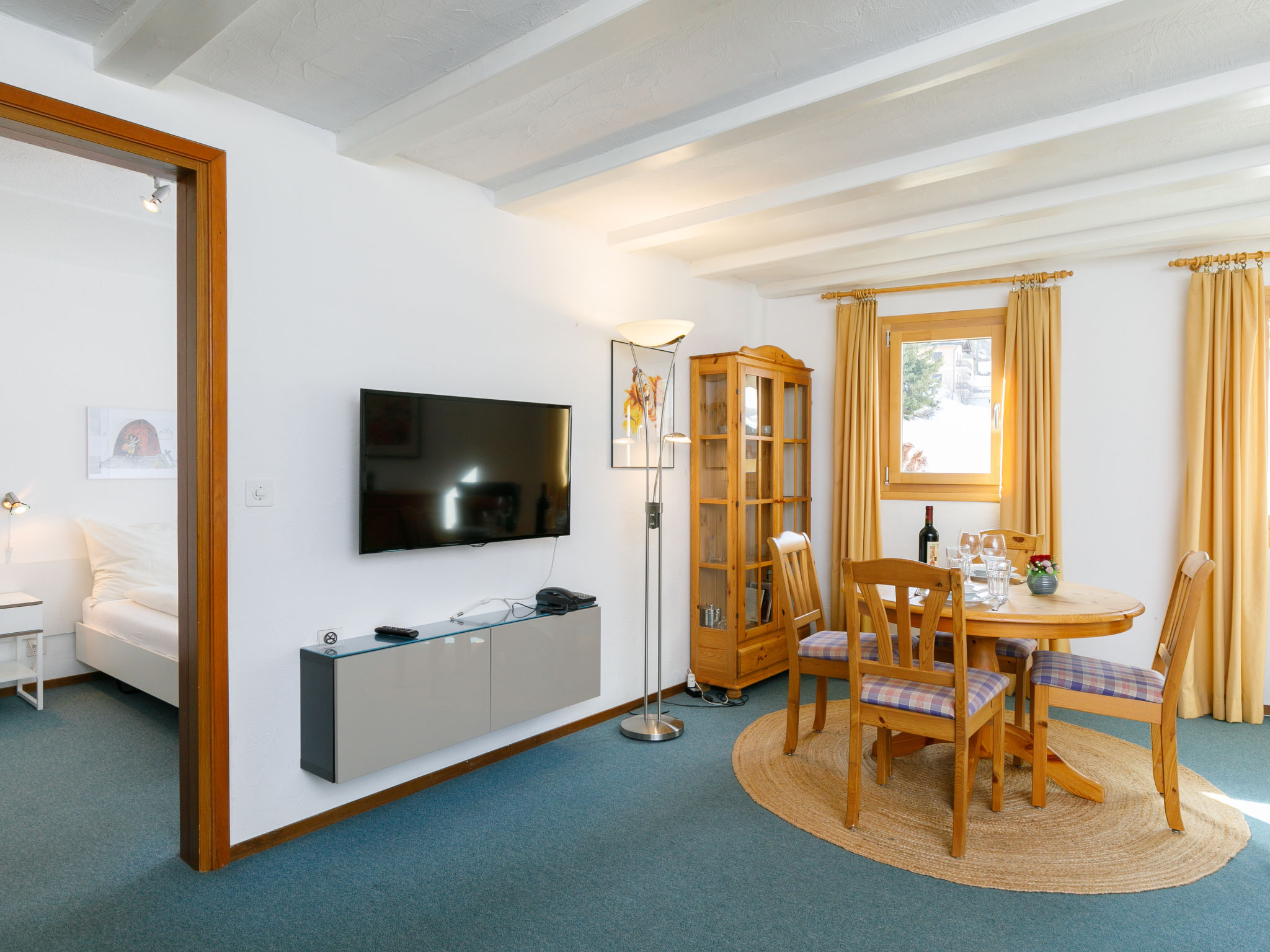 "Residenza Chesa Margun 45-3", apt. di 2 locali 57 m2, esposizione sud. Arredamento accogliente: soggiorno/sala da pranzo con TV e radio. 1 camera con 2 letti. Cucina (forno, lavastoviglie, capsule per la macchina da caffè (Nespresso) extra). Vasca/WC. Bella vista sulle montagne e sul paesaggio.