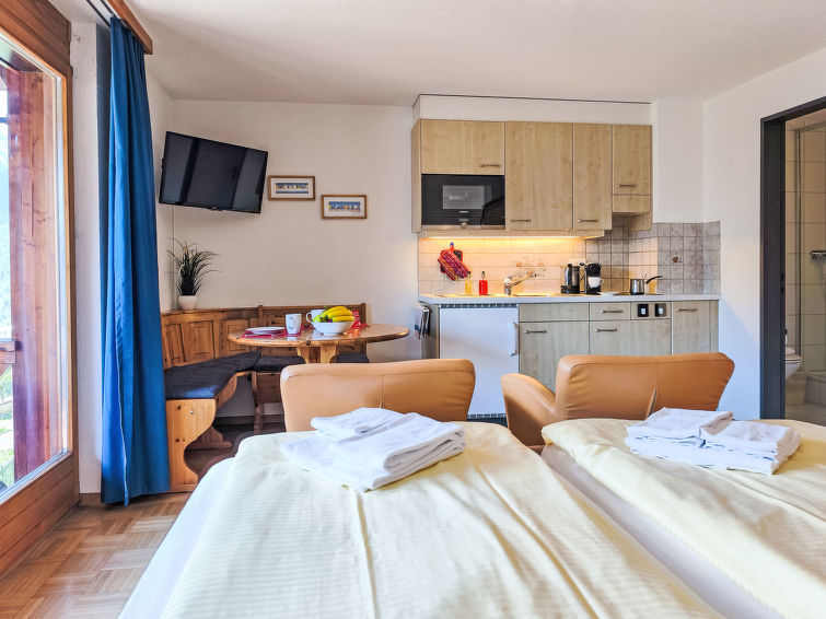 "Rose Studio Y" monolocale 20 m2 al 2. piano. Arredamento gradevole: soggiorno/sala da pranzo con 1 letto doppio e TV (via cavo) (schermo piatto). Uscita sul balcone. Angolo cottura (2 piastre cottura in vetroceramica, tostapane, bollitore elettrico, macchina da caffè elettrica, capsule per la macchina da caffè (Nespresso) extra, microonde combinato). Doccia/WC. Riscaldamento a pavimento. Balcone, esposizione sud-ovest. Mobili da terrazza. Splendida vista panoramica sulle montagne e sulla valle. A disposizione: asciugacapelli. Internet (wifi, gratis). Massimo 1 animale/cane consentito.