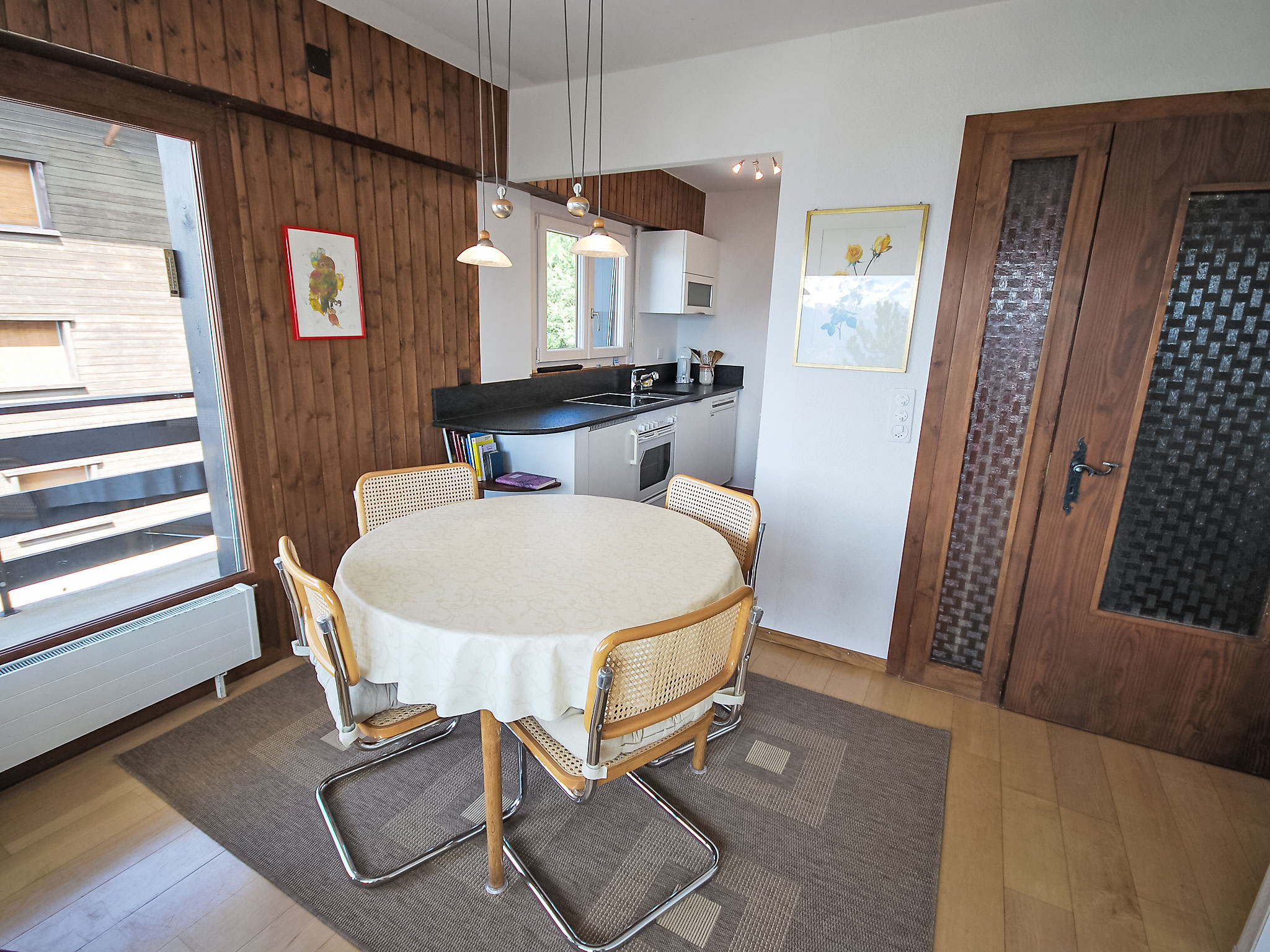 "App. 20A Ramuge", apt. di 2 locali 45 m2 al 2. piano. Oggetto adatto a 2 adulti + 2 bambini. Arredamento gradevole: soggiorno/sala da pranzo con camino e TV (via cavo). Uscita sul balcone. 1 camera con 2 letti (90 cm, lunghezza 200 cm). Ingresso con 1 x 2 letti a castello (80 cm, lunghezza 180 cm). Cucina (forno, lavastoviglie, 4 piastre cottura in vetroceramica, macchina da caffè elettrica, capsule per la macchina da caffè (Nespresso) extra, set per raclette, set per fondue (chinoise)). Vasca/WC. Riscaldamento a gasolio. Balcone, esposizione est e esposizione nord. Mobili da balcone. Bella vista sulle montagne e sulla valle. A disposizione: asciugacapelli. Internet (wifi, gratis). Parcheggio (extra) a 400 m. Prego notare: appartamento per non fumatori. Uno o più posti letto adibiti a zona notte si trovano in area aperta o di passaggio (come soppalco, corridoio, alcova e simili).