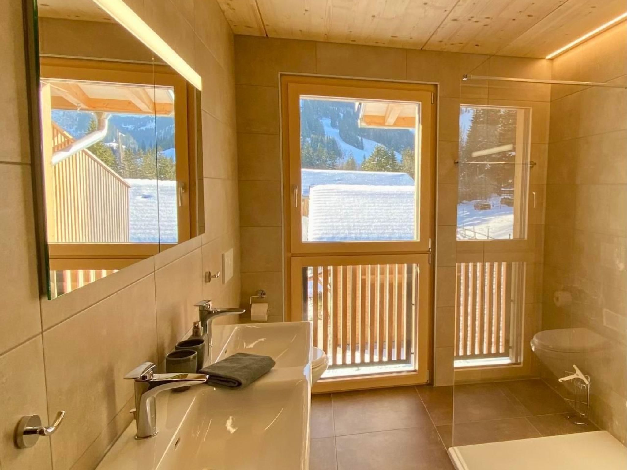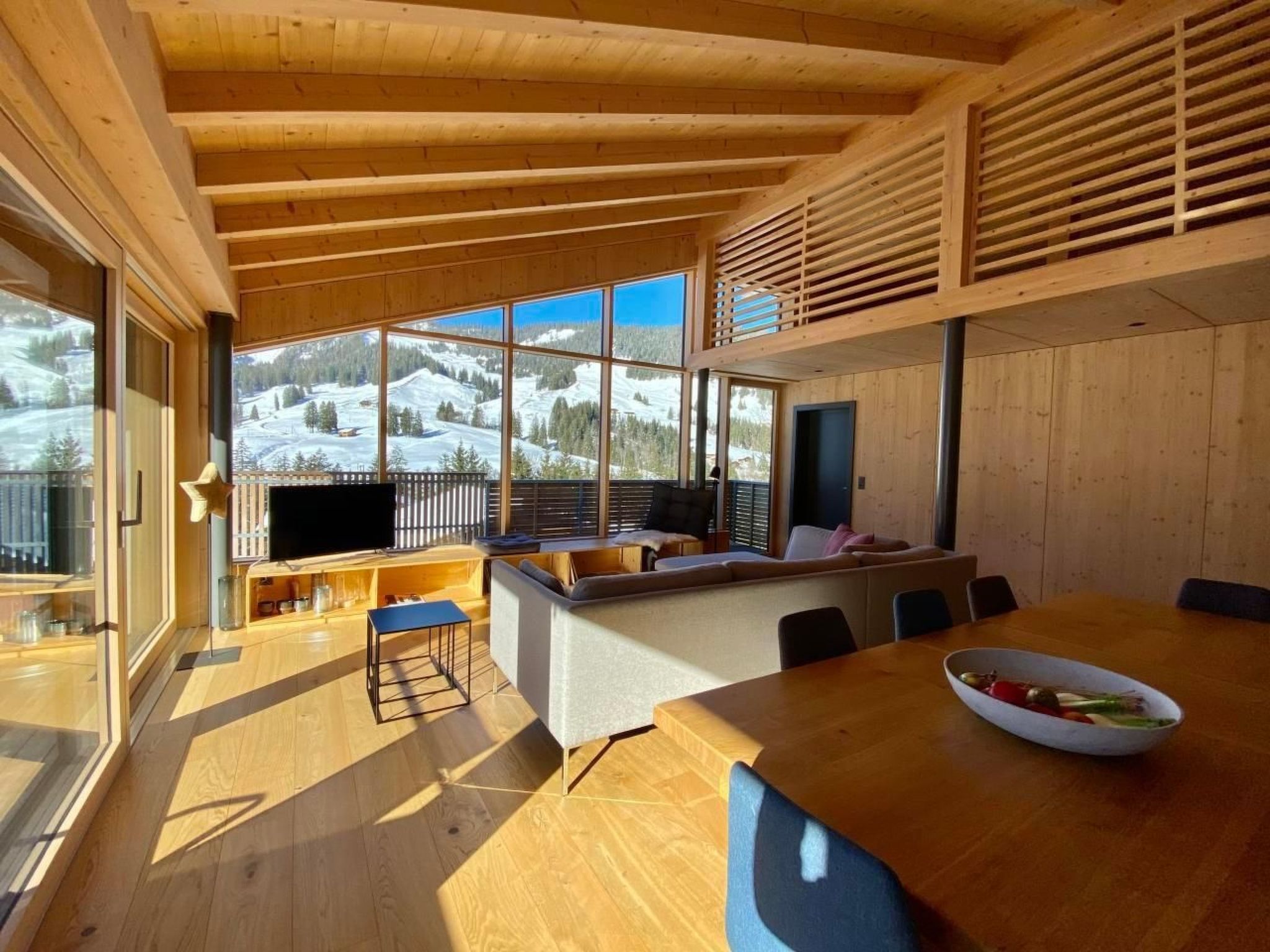 Do you fancy pure nature, mountains and the lake?Schwarzsee is an insider tip for nature lovers, peace seekers and sports enthusiasts and is simply a paradise for couples and families alike.And best of all: we have the dream flat to go with it! So: sit back and enjoy...The flats:The two modern and quietly located flats Horizon 4 Panorama and Horizon 5 were built barrier-free and with a lift in 2020. All rooms - except the bathrooms - have oak parquet flooring.Horizon 4 is located on the top floor and has a large panoramic window with a view of the mountains, landscape and lake.The flat has 3.5 rooms and a gallery, accessible by stairs.Bedroom 1: 1 double bed 180x200.Bedroom 2: 2 single beds 90x200 (can be joined together).Gallery: 1 double bed 180x200, additional mattresses available.There is space for a baby cot in the rooms.The flat has 2 bathrooms, each with shower/WC and hairdryer. The larger bathroom has a double washbasin, rain shower and washing machine.In the living room: large sofa, reading bench, TV.Dining area: large wooden table, extendable to 3 metres, 8 chairs.The open-plan kitchen with cooking island is modern and fully equipped.The large terrace with views of the mountains and lake is equipped with deckchairs, table and electric barbecue.Barrier-free, lift to all floors.Ski and bike room.One covered and one open car park.Free internet.Location:The house is in a central and quiet location, slightly elevated above the village. To the lake and the mountain railway 3 minutes on foot, to the bus stop 4 minutes, to the shop 2 minutes. Nearby: Restaurants, post office, tourist office, sports shop, health food shop.Summer activities:Hiking, biking, paragliding, water sports, fishing, tennis, minigolf, scooter, toboggan run, via ferrata, children's playgrounds, adventure trails.Winter activities:Skiing (also at night), ski tours, snowshoe trails, tobogganing, ice skating, cross-country ski trail, children's ski lift, ski lessons, ice palace. Often ice skating on the lake in winter.Equipment/rental:Skis, ice skates, snowshoes, sledges, SUP, canoes, boats, bikes, e-bikes. Ski lessons, tandem flights and tours can be booked.Nearby:Gantrisch Nature Park 15 minutes.Fribourg 30 minutes, Bern 50 minutes, Geneva 2 hours.