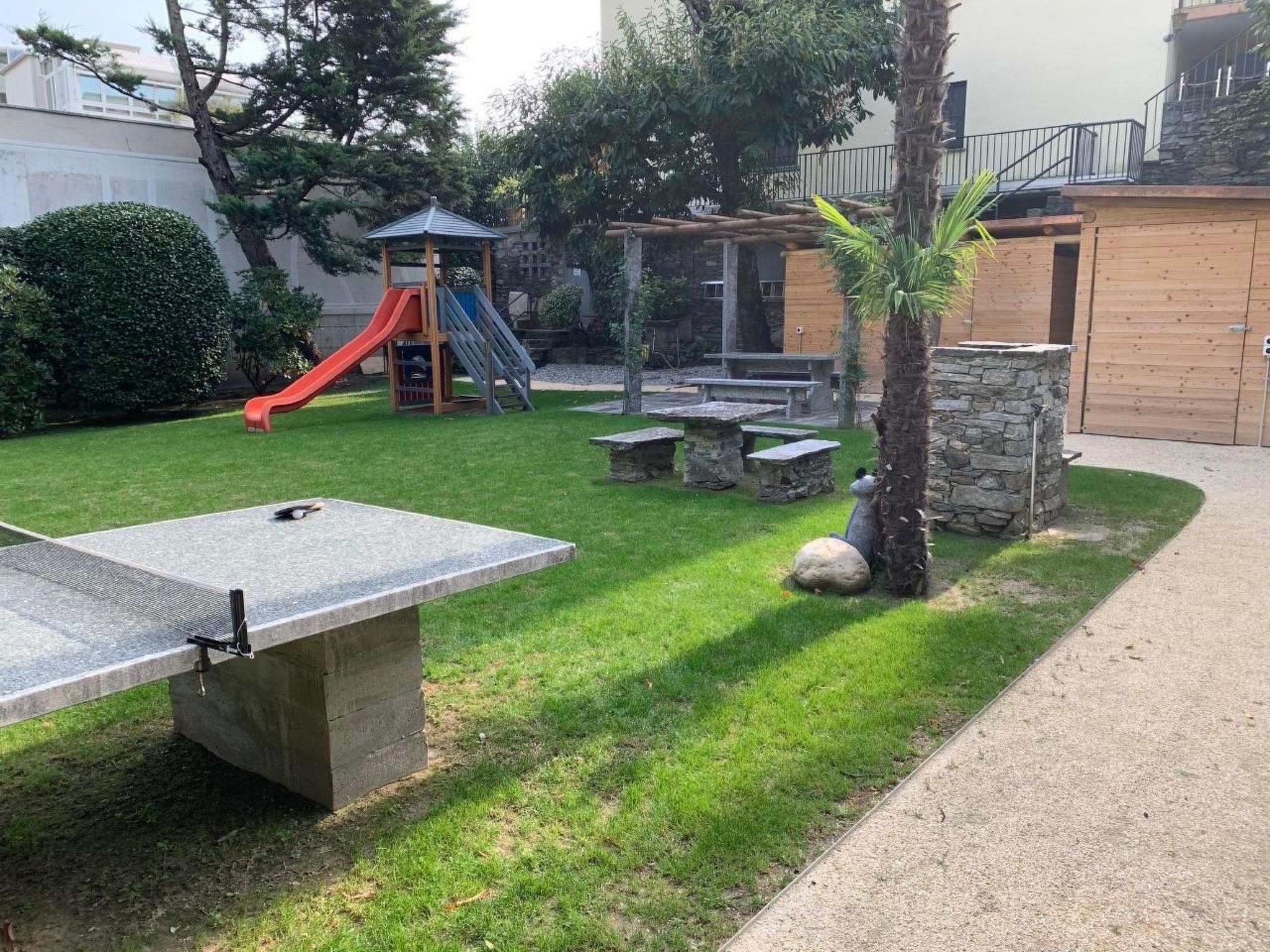 Welcome to the holiday flats at Casa Rocca Bella! The house has four cosy holiday flats (one and three rooms). Casa Rocca Bella is situated in Ticino (Switzerland) on the southern slope of Monte Verità, about 70m above the centre of Ascona in a quiet location. The house can be reached from the town centre in 10 minutes on foot via a stepped footpath. Access via the road is only permitted for residents and holiday guests. Access to the house and flats via stairs.Garden flat: Cosy one-room flat with seating area (15 m2) on the east side and view of the garden. Table and deckchairs are available on the seating area. Living/bedroom with three full-size foldaway beds, a sofa, armchair and dining table. Separate kitchen, bathroom with WC, washbasin and shower. Newly designed garden in spring 2023, behind the house a large garden (800 m2), surrounded by trees and palm trees with granite table, granite bench under a pergola and barbecue area invites you to linger. This garden with table tennis table, climbing tower with slide, swing and sandpit is also an ideal playground for children. In spring 2023, we redesigned the garden (raising the terrain, reseeding the lawn, pergola). The garden is now accessible via a footpath directly from the public car park. Bicycles, trailers and pushchairs can be parked in the garden in a wooden garage with a charging socket.In January/February 2020 we completely renovated flat D (garden flat) (new kitchen with dishwasher, living room incl. furnishings, bathroom). All 3 beds are designed as fully-fledged cupboard beds.Other living room equipment (living room 1): Writing desk, children's travel bed, various utensils for small children, such as high chair etc. are availableOther kitchen equipment (kitchen1): Dishwasher, fondue dishes, 6- and 2-burner raclette oven available in the housePublic car park: A public car park of the municipality is located approx. 50 m after Casa Rocca Bella, uphill on the right. This car park is subject to a charge (to be paid directly on site at the municipal police, parking zone Asco 7).Service charges separate, to be paid directly to the landlady:Final cleaning: 110.00Laundry package per person: 33.00Pet per night: 5.00 optionalTourist tax per night and person: 3.25Ascona and surroundings: Ticino with its Mediterranean charm is the sunshine parlour of Switzerland. Ascona is wonderful for relaxing, swimming in Lake Maggiore (sandy beach) and hiking in the surrounding mountains and valleys. The area offers various cultural events, such as the film festival and music festival "Moon & Stars" in Locarno or the jazz festival and music festival weeks in Ascona. Whether for children, young or older adults - Ascona and the surrounding area has something for everyone!Sports facilities in the area: minigolf, ice skating, golf course, climbing, mountain biking, paragliding, cycling tours, skiing (alpine), surfing, sailing. NL-4174