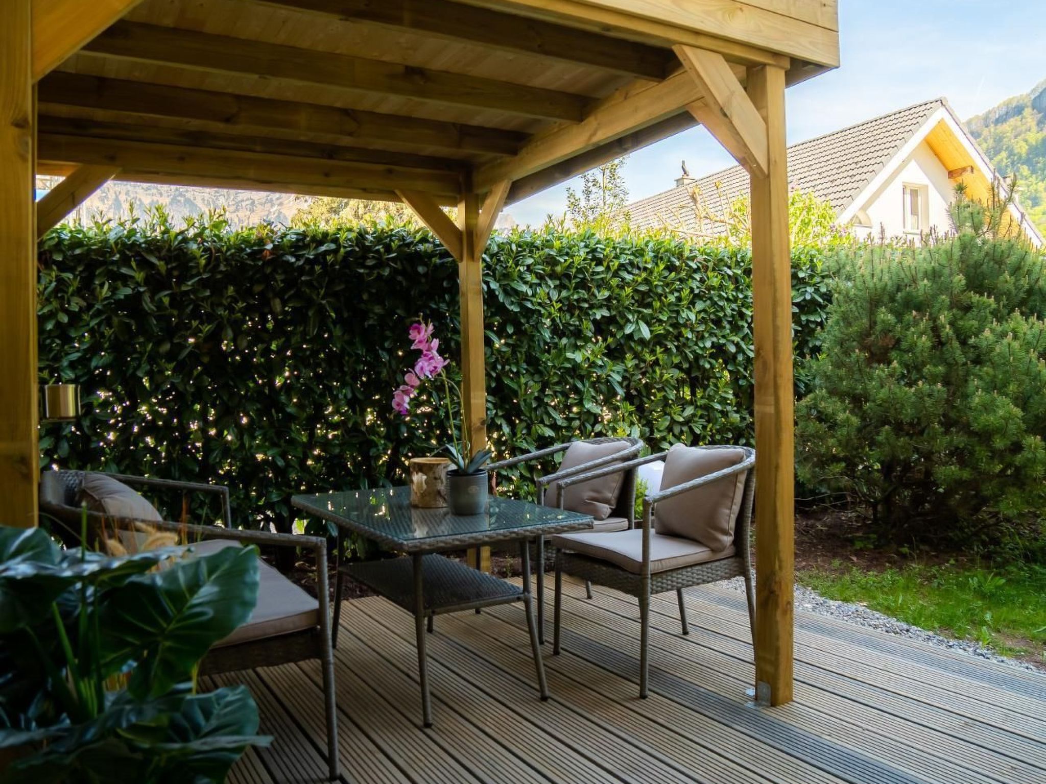 Massimo 2 animali/cani consentiti. Your perfect Swiss holiday by the Walensee & Flumserberg Would you like to stay at the most gorgeous place ever for you and your family during your holiday? Stop searching and come here relax in our beautiful Doodle’s Chalet right at the stunning Walensee in Switzerland! And not just the Walensee, you will also have an amazing view of the Churfirsten and Flumserberg. ===================================================================== Welcome to Beautiful Chalet Churfirsten, a stunning accommodation perfectly suited for small groups and small families alike. Nestled amidst the breathtaking Swiss Alps, our chalet offers an ideal retreat to experience the charm of Flumserberg, Walensee, and Churfirsten while immersing yourself in the local culture. Our chalet is designed to bring families and friends together in harmony with the surrounding natural beauty of the Alps. With different kinds of spacious bedrooms, we comfortably accommodate a minimum of 6 guests. Each of our main bedrooms features a balcony terrace boasting breathtaking views of the Walensee and Churfirsten. With two fully equipped large bathrooms and an additional small bathroom, our chalet caters to the needs of larger groups. Guests can also indulge in the luxury of an extra shower within our sauna area, providing convenience and relaxation. Unwind in our spacious living room, complete with a cozy lounge area and a fully equipped open kitchen. Step outside to our shared garden, featuring an open kitchen equipped with a BBQ, grill plate, and combination oven/microwave, perfect for enjoying sunset dinners amidst the mountains. Our swimming pool and sauna area provide the perfect setting to unwind and savor refreshing drinks with friends or family. Multiple lounging areas in the garden and a large garden table offer ample space for outdoor dining and relaxation. For your convenience, store your winter and summer sports gear in our shared garage. If you're arriving by car, simply let us know, and we'll reserve a parking space for you. Experience the ultimate mountain getaway at Beautiful Chalet Churfirsten.Nearby sports facilities: Fishing, Basketball, Mountain climbing, Football area, Golf course, Hunting facilities, Canoeing, Climbing, Mountainbiking, Paragliding, Bike tours, Rafting, Horse stalls (guests), Riding possibilities, Toboggen, Rowing, Skiing (alpin), Cross-country skiing, Sport center, Squash, Surfing, Diving, Tennis, Water skiing, Sailing.