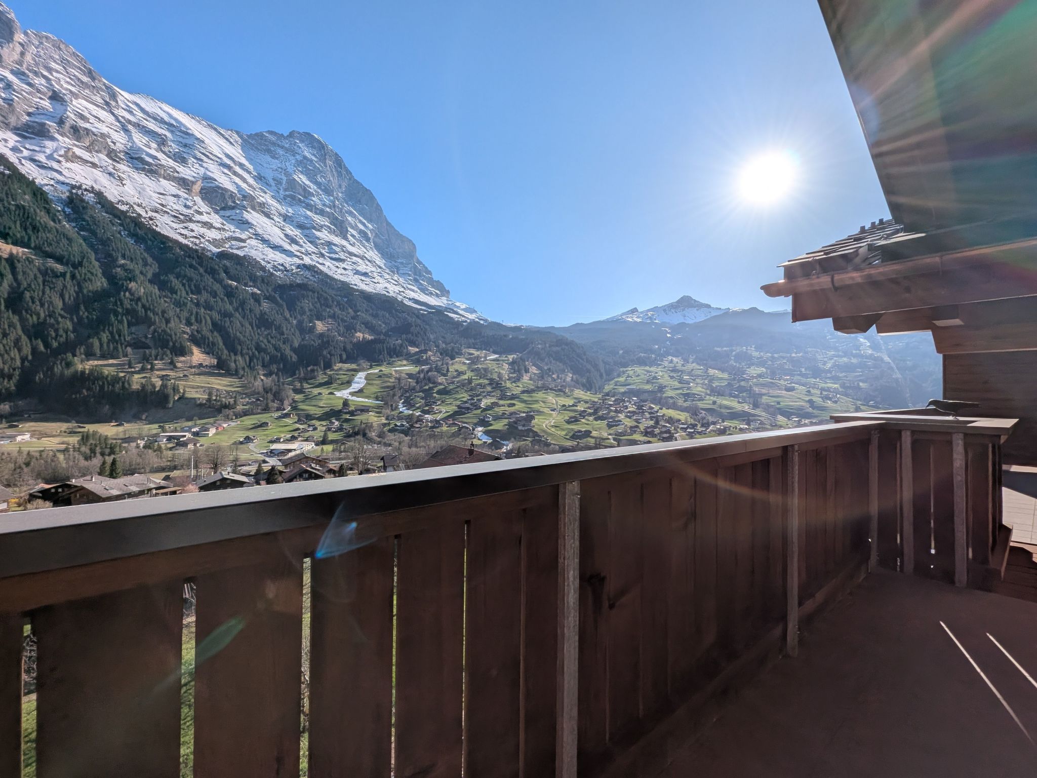 Discover the perfect base for your Alpine adventures - our charming penthouse flat in picturesque Grindelwald. This 3 1/2-room flat with 96 m² of living space is ideal for up to 4 people and impresses with its 21 m² south-facing balcony, which offers a breathtaking view of the surrounding mountains. Situated on the 3rd floor of a new building, it combines a central location with the peace and beauty of nature.Inside, you will find an open-plan kitchen that flows into a spacious living and dining area. The kitchen is equipped with everything you need to prepare delicious meals, including 4 hotplates, an oven, a microwave, a coffee machine (filter and Nespresso), a fridge with freezer compartment, a dishwasher, a fondue set and a raclette oven. The tastefully furnished living room, which offers a comfortable set of upholstered furniture and a TV, provides cosy hours. Both bedrooms are also equipped with double beds measuring 180 x 200 cm, a large wardrobe and a desk. The space is complemented by two bathrooms, each with a shower/WC or bath/WC, with tiled floors, while the kitchen, living/dining area and bedrooms have high-quality parquet flooring.The outdoor area boasts a spacious south-facing balcony with excellent views of the surrounding mountains. You can easily reach the flat via the lift from the car park, where a reserved garage parking space is available for you (headroom 2m20cm). For winter sports enthusiasts, a ski room is available for shared use.The flat enjoys a sunny and central location in Grindelwald, a village situated at an altitude of around 1000 metres at the foot of the Eiger. The village centre, Grindelwald train station, bus stops and shopping facilities are just a few minutes' walk away. The region is characterised by a varied alpine landscape, surrounded by the imposing mountain backdrop of the Eiger, Wetterhorn, Mönch and Jungfrau. A wide range of excursions and sports activities such as mountaineering, ice skating, golfing, climbing, mountain biking and skiing are available in the immediate vicinity.Make our exclusive attic flat the centrepiece of your next holiday in Grindelwald. Here you will find everything your heart desires: comfortable and stylish accommodation, the opportunity to reach both the centre and nature in just a few minutes, and all of this embedded in one of the most breathtaking mountain backdrops in Switzerland. Your dream holiday is waiting for you!