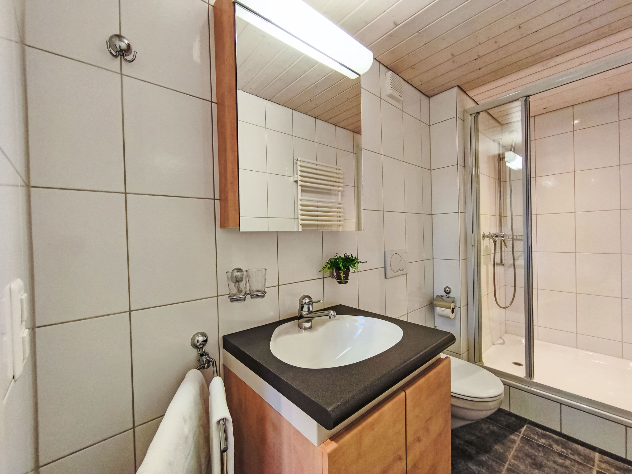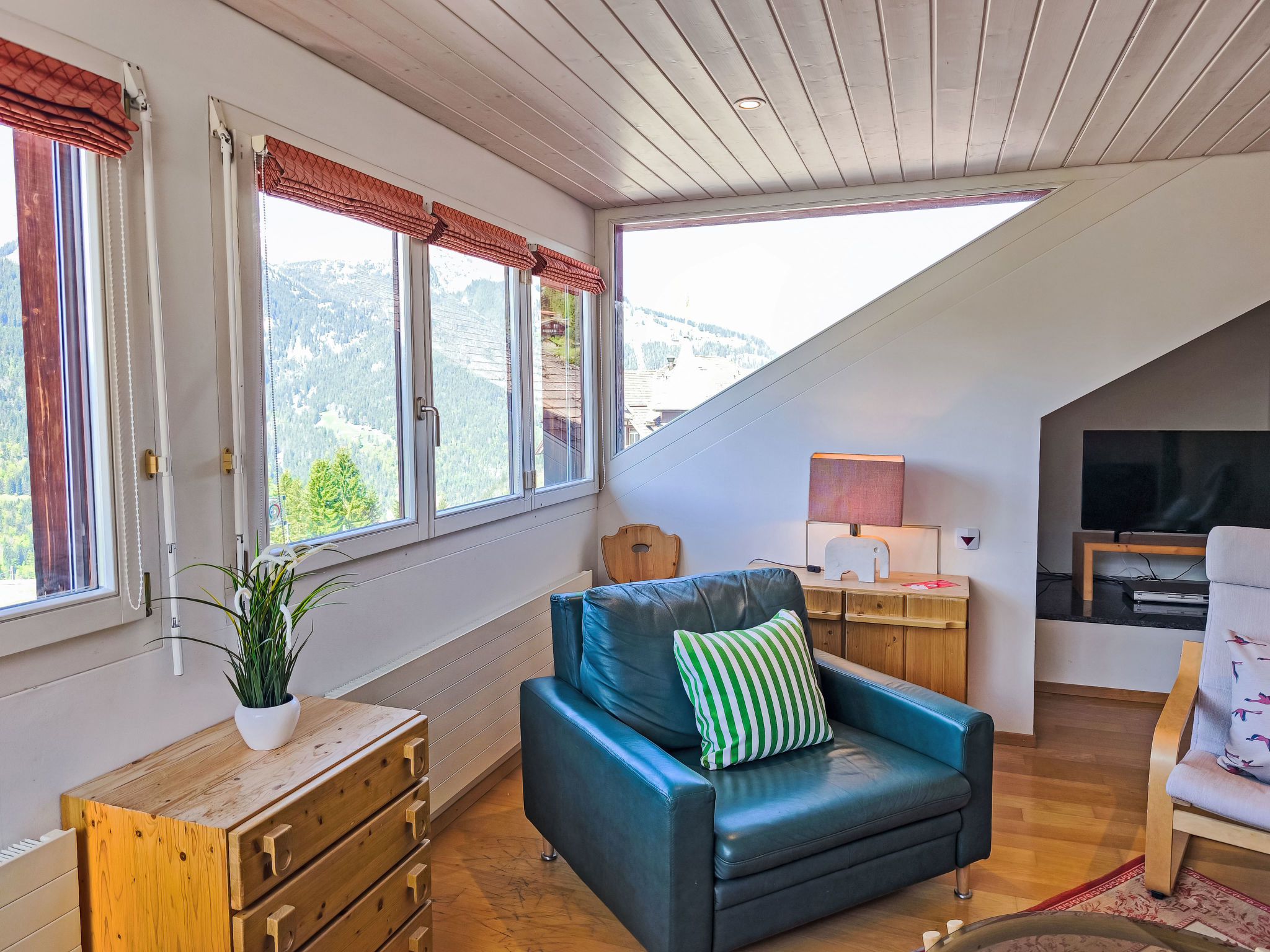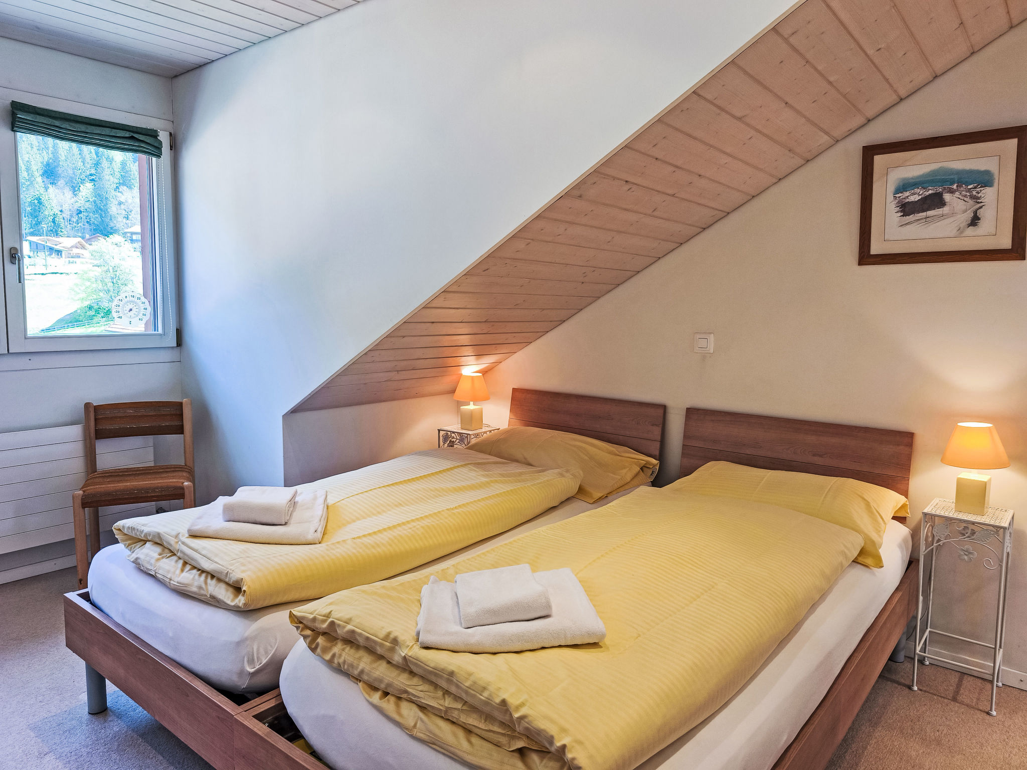 "Eiger Residence Top Floor Apt P", apt. di 3 locali 95 m2, al piano sottotetto. Spazioso e luminoso, in parte mansardato, arredamento confortevole e moderno: soggiorno/sala da pranzo aperto con finestra panoramica con TV (via cavo). 1 camera con 3 letti (90 cm, lunghezza 200 cm). 1 camera con 2 letti (90 cm, lunghezza 200 cm). Grande cucina aperta (forno, lavastoviglie, 4 piastre cottura in vetroceramica, bollitore elettrico, forno a microonde, congelatore, macchina da caffè elettrica, capsule per la macchina da caffè (Nespresso) extra, set per raclette, set per fondue (chinoise)). Vasca/WC, doccia/WC. Magnifica vista panoramica sulle montagne, sulla valle e Jungfrau. A disposizione: lavatrice, asciugatrice, ferro da stiro, asciugacapelli. Internet (wifi, gratis). Prego notare: adatto alle famiglie. Appartamento per non fumatori.