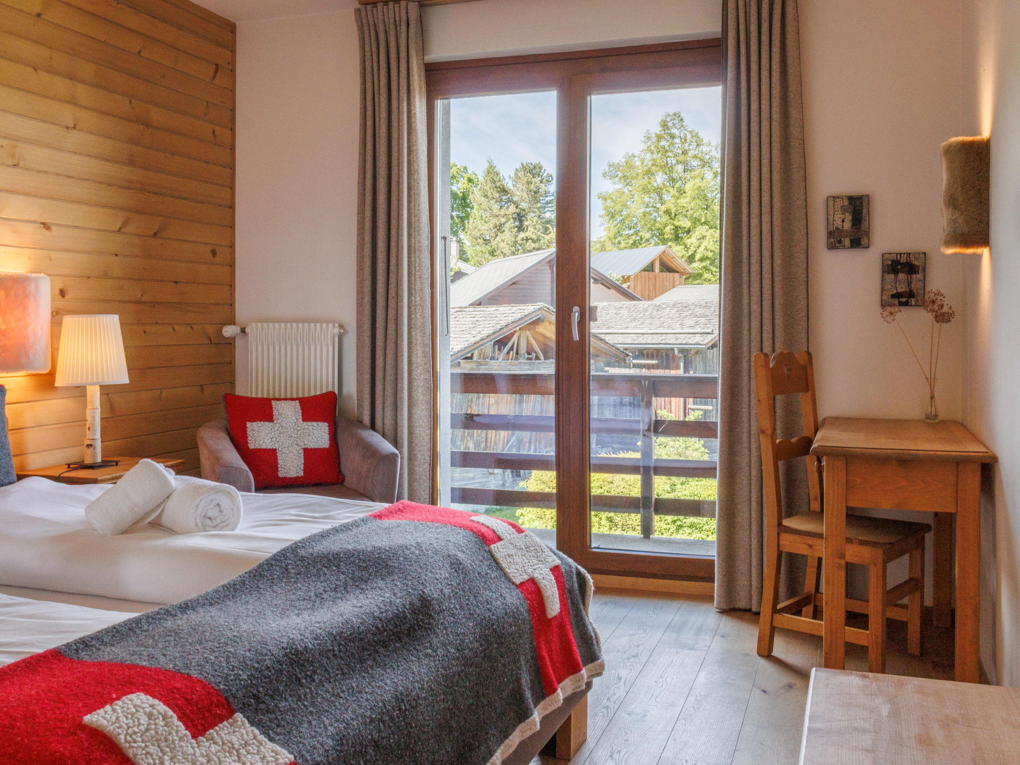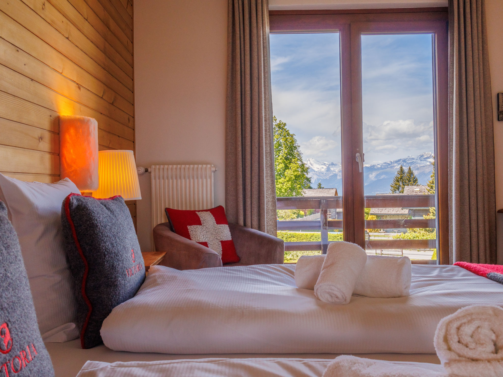 "Victoria", chalet 12 locali 850 m2 su 3 piani. Arredamento confortevole e elegante: soggiorno/sala da pranzo con camino, angolo pranzo e bancone. Uscita sulla terrazza, sulla veranda. Grande cucina (forno, lavastoviglie, tostapane, bollitore elettrico, forno a microonde, congelatore, macchina da caffè elettrica, set per fondue (chinoise, formaggio)). WC separato. Piano superiore: 5 camere, ogni camera con 2 letti (90 cm, lunghezza 200 cm), doccia/WC. Uscita sul balcone. 1 camera con 2 letti (90 cm, lunghezza 200 cm), vasca/WC. 1 camera con 1 letto (90 cm, lunghezza 20 cm), doccia/WC. Uscita sul balcone. 2. piano superiore: 3 camere, ogni camera con 2 letti (90 cm, lunghezza 200 cm), doccia/WC. Uscita sul balcone. 2 camere, ogni camera con 2 letti (90 cm, lunghezza 200 cm), doccia/WC. Uscita sul balcone. Terrazza 100 m2, grande 300 m2. Mobili da terrazza. Splendida vista sulle montagne e sulla località. A disposizione: seggiolone, lettino per bimbi fino 3 anni, asciugacapelli. Internet (wifi, gratis). Prego notare: appartamento per non fumatori.
