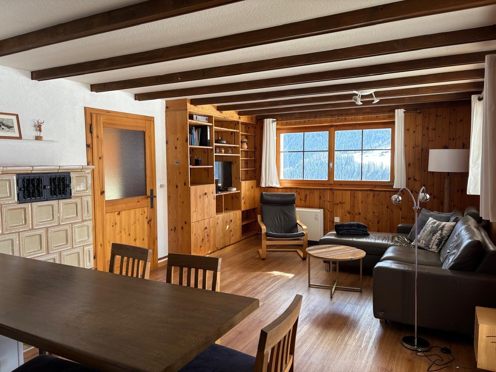 3 1/2 locali (ca. 65m2), nel seminterrato (casa collina), condominio senza ascensore, ampio terrazzo occidentale, parcheggio davanti alla casa, ad uso comune di sci; Cucina con forno, 4 fuochi in vetroceramica, frigorifero con congelatore; Bagno / WC; 1 camera con 1 letto matrimoniale (180 * 200 da letto, due materassi), 1 camera con 2 letti singoli (90 * 200); soggiorno con divani, HD digitale TV e internet ad alta velocità (Wi-Fi), la zona pranzo; biancheria da letto e da bagno, teli da cucina, piumino; sacchi della spazzatura blu; animali non ammessi; appartamento per non fumatori!