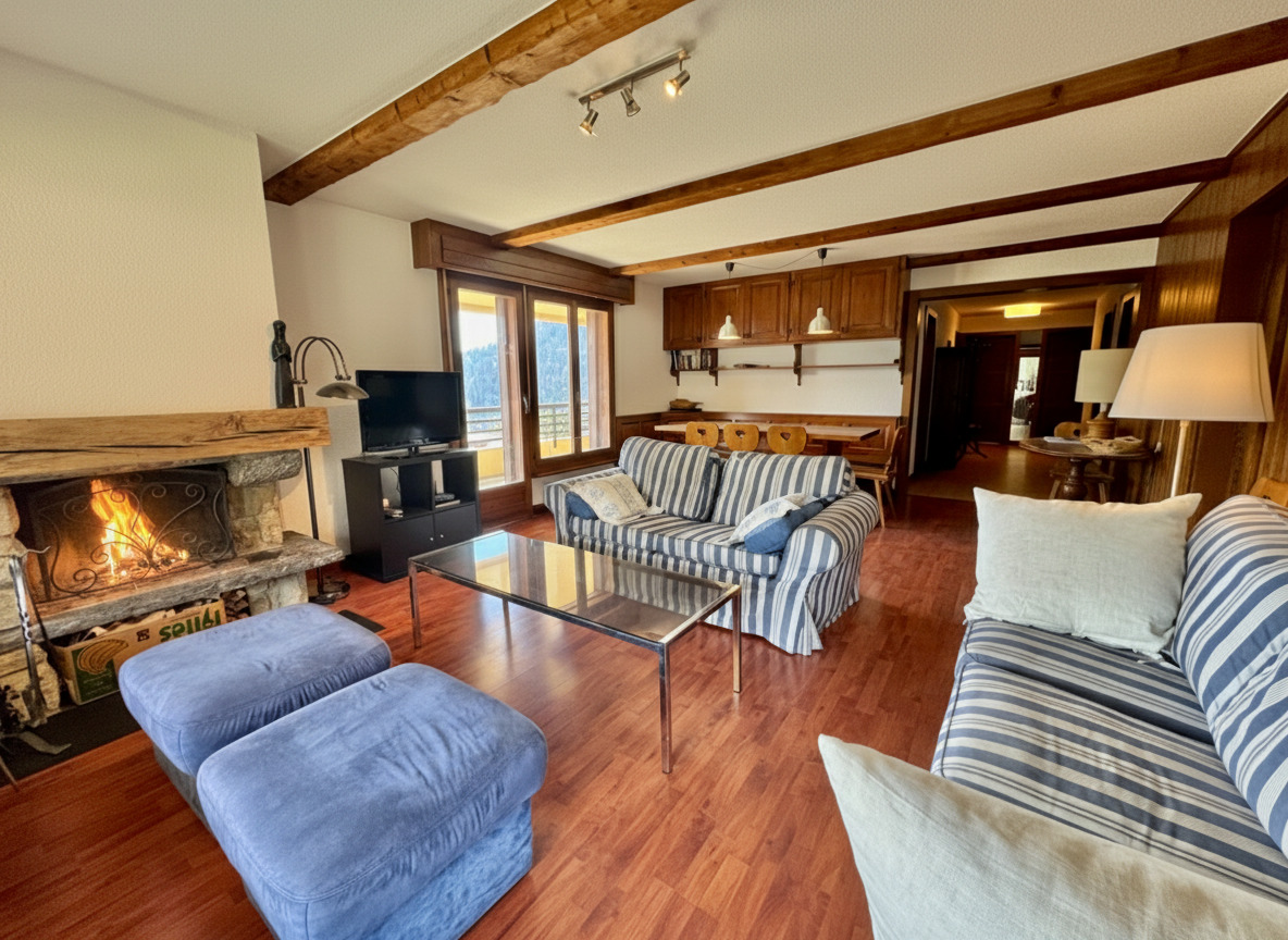 L'appartement bénéficie d'un grand balcon enveloppant avec vue sur les montagnes et est idéalement situé au-dessus du supermarché Migros et à côté de l'arrêt de bus pour Medran. Garage pour une voiture.